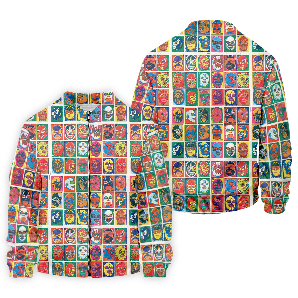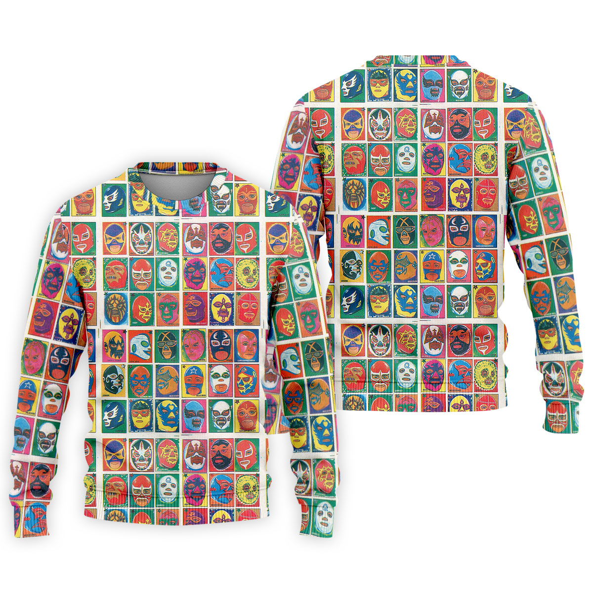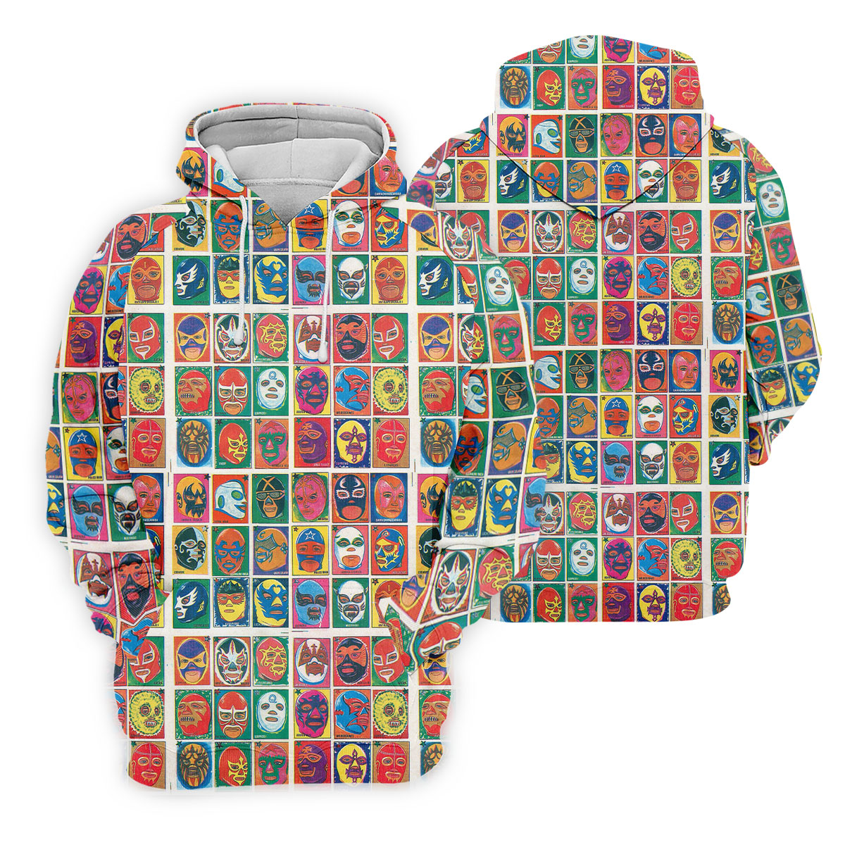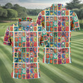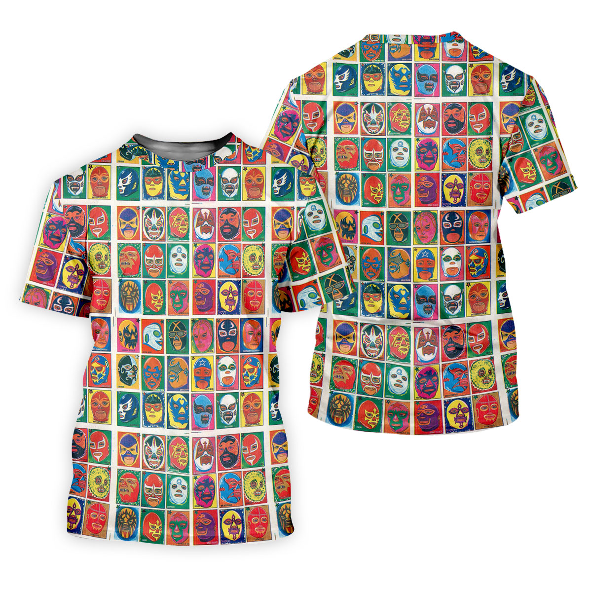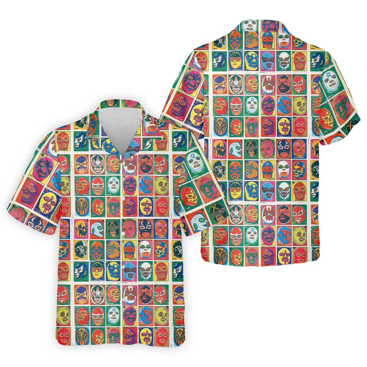 Lucha Libre Mask Grid Pattern Golf Tops For Men, Cinco De Mayo Celebration Golf Shirts For Men