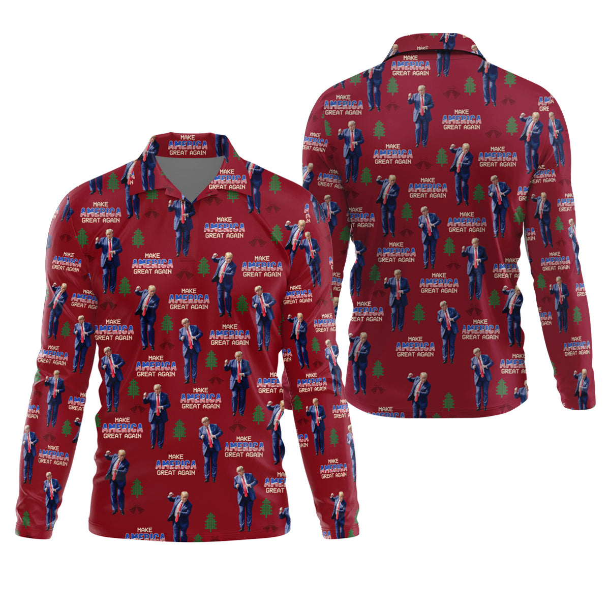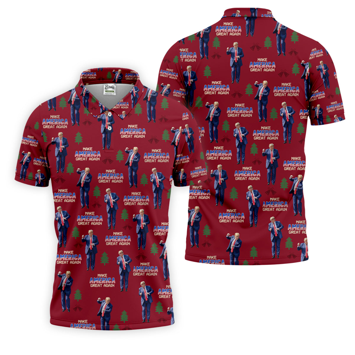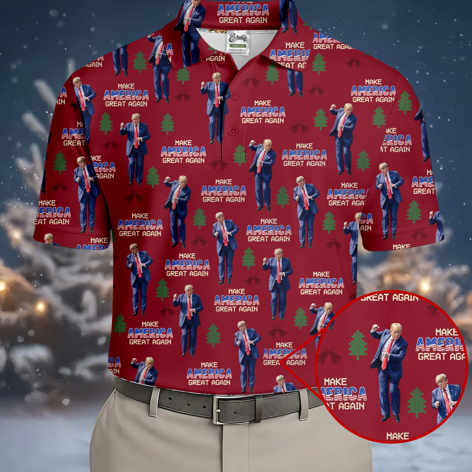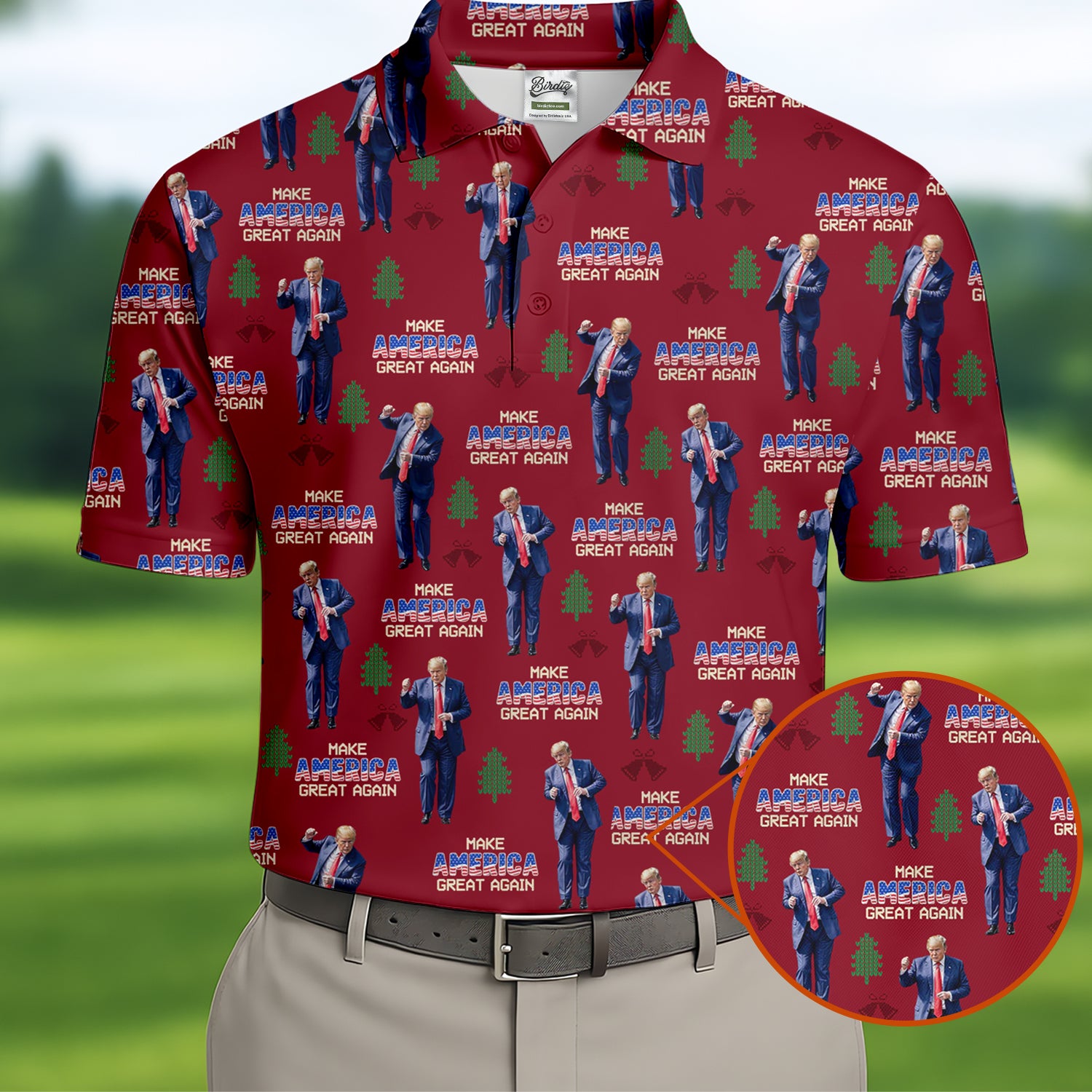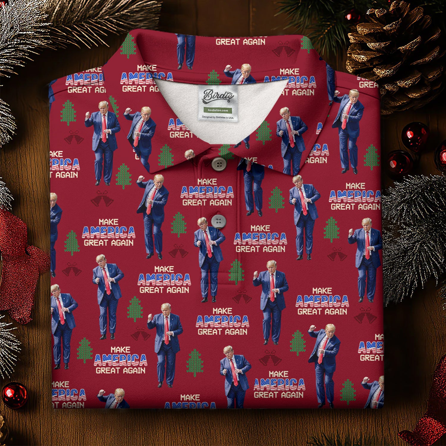 Make America Great Again Christmas Golf Trump Dancing Men's Golf Polo Shirts, Men Golf Polos, Golf Apparel