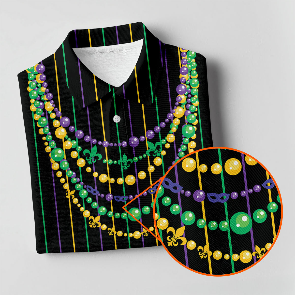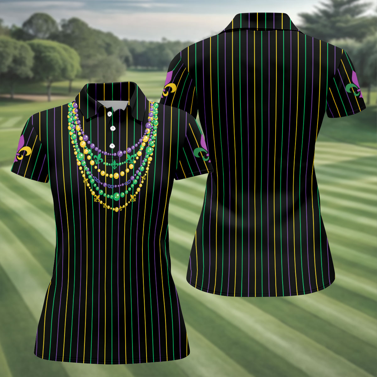 Mardi Gras Beads Necklaces Print Black Golf Shirt, Women's Golf Shirts, Ladies Golf Polos, Golf Shirt For Women