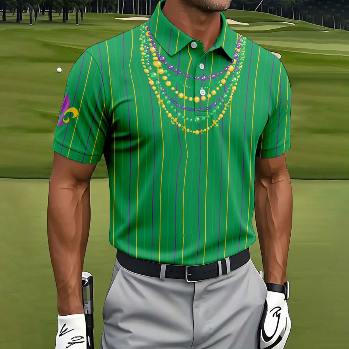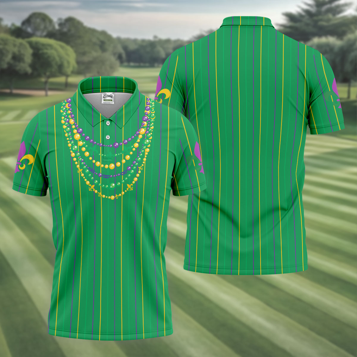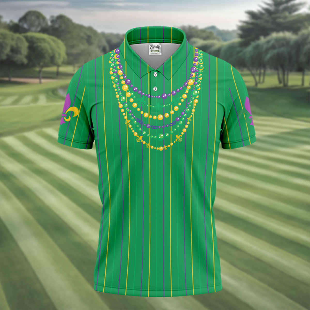 Whether you’re teeing off during Mardi Gras week, playing a themed tournament, or just looking for an excuse to bring festival vibes to the course — this shirt shows up ready to celebrate.