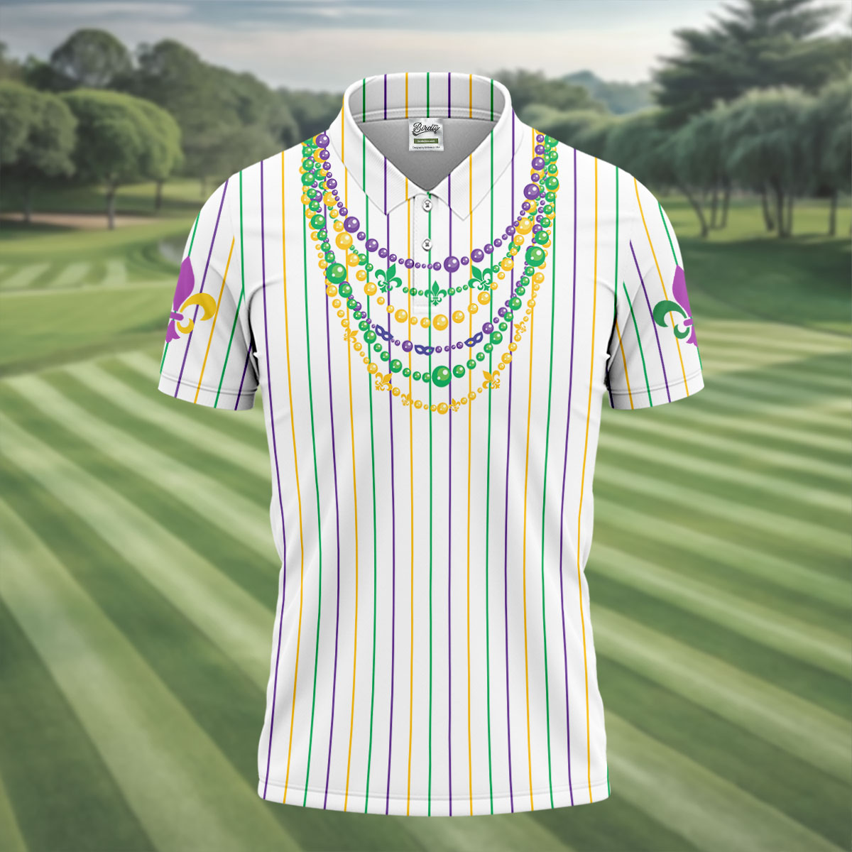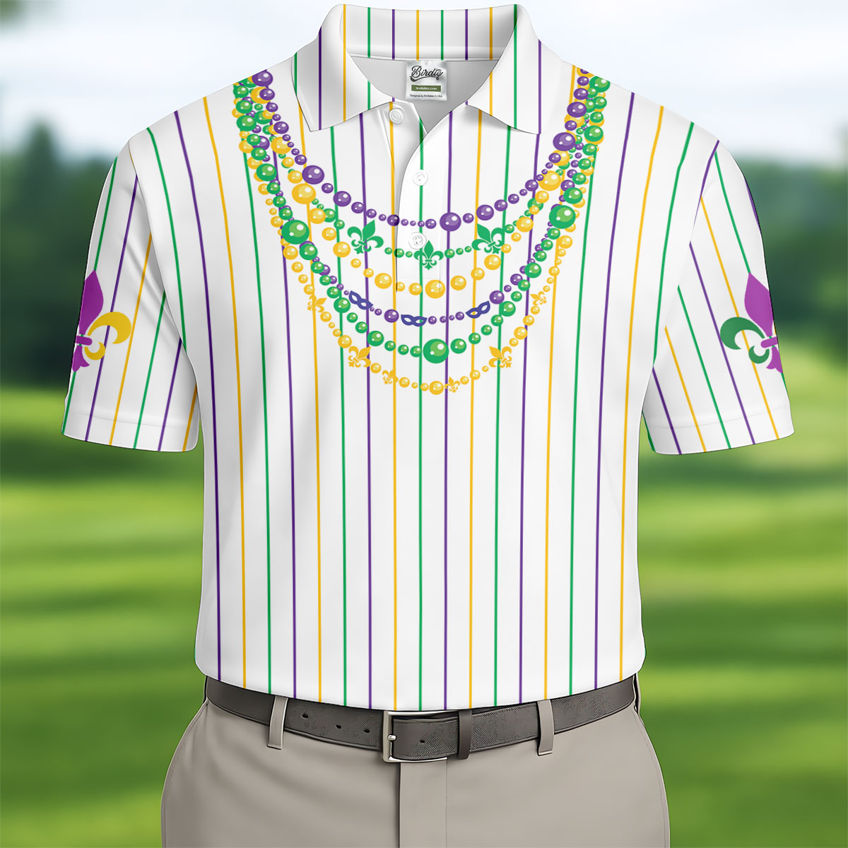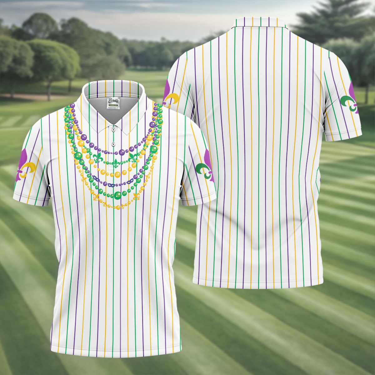 Mardi Gras Beads Necklaces Print White Golf Shirt, Golf Tops For Men, Polo Shirts For Men, Golf Shirts For Men