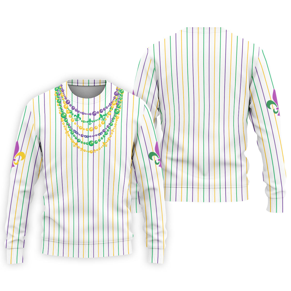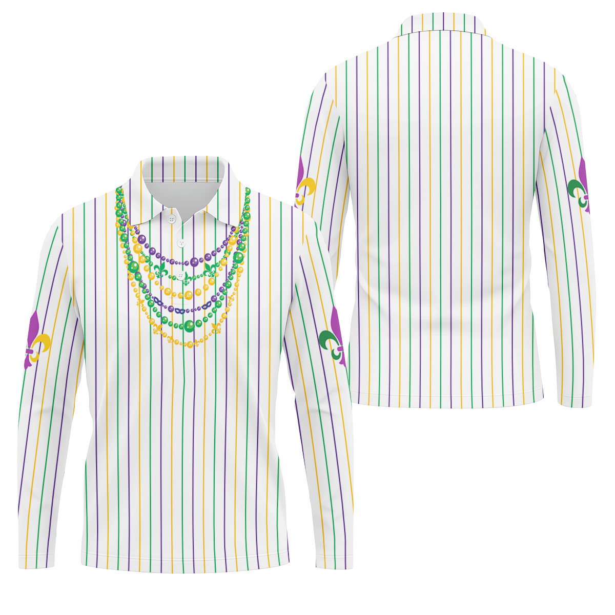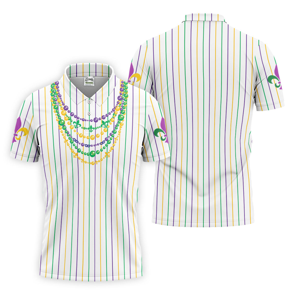 Mardi Gras Beads Necklaces Print White Golf Shirt, Golf Tops For Men, Polo Shirts For Men, Golf Shirts For Men