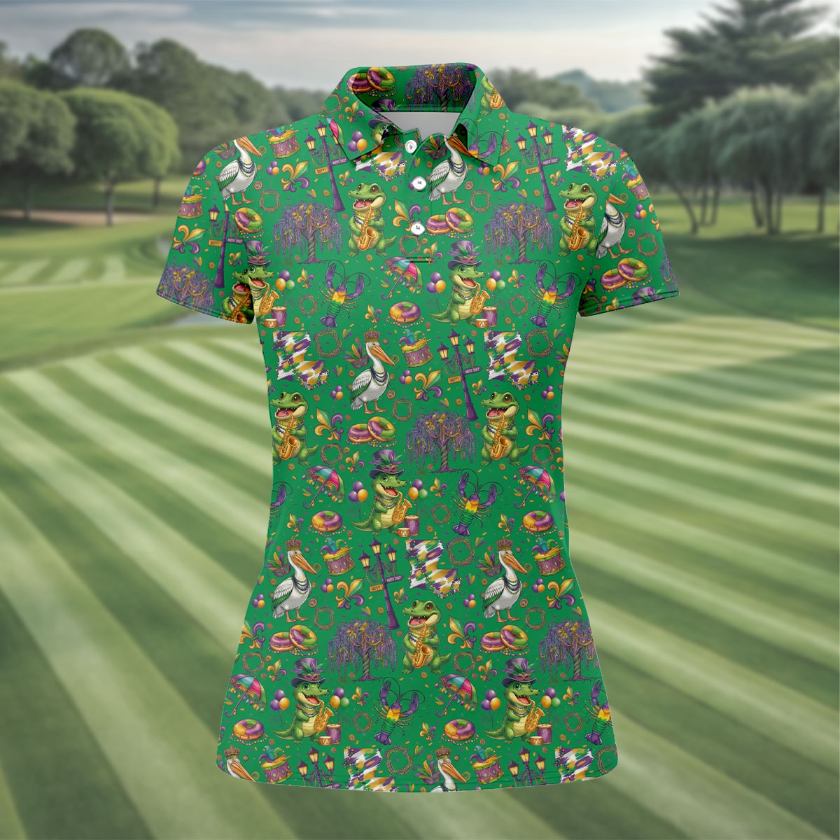 Whether you’re teeing off during Mardi Gras week, playing a themed tournament, or just looking for an excuse to bring festival vibes to the course — this shirt shows up ready to celebrate.