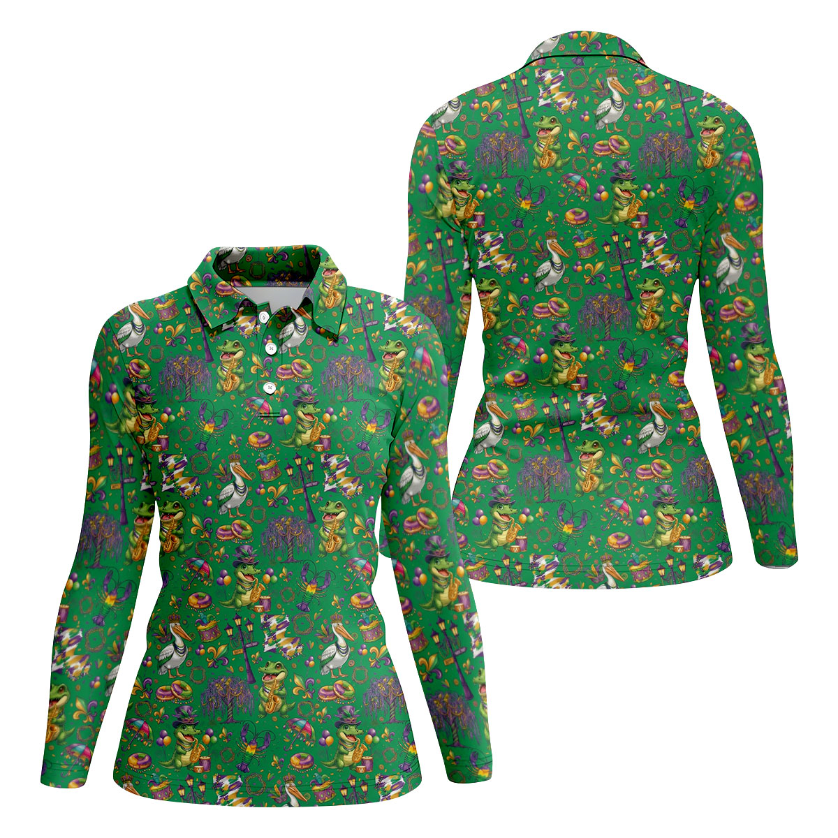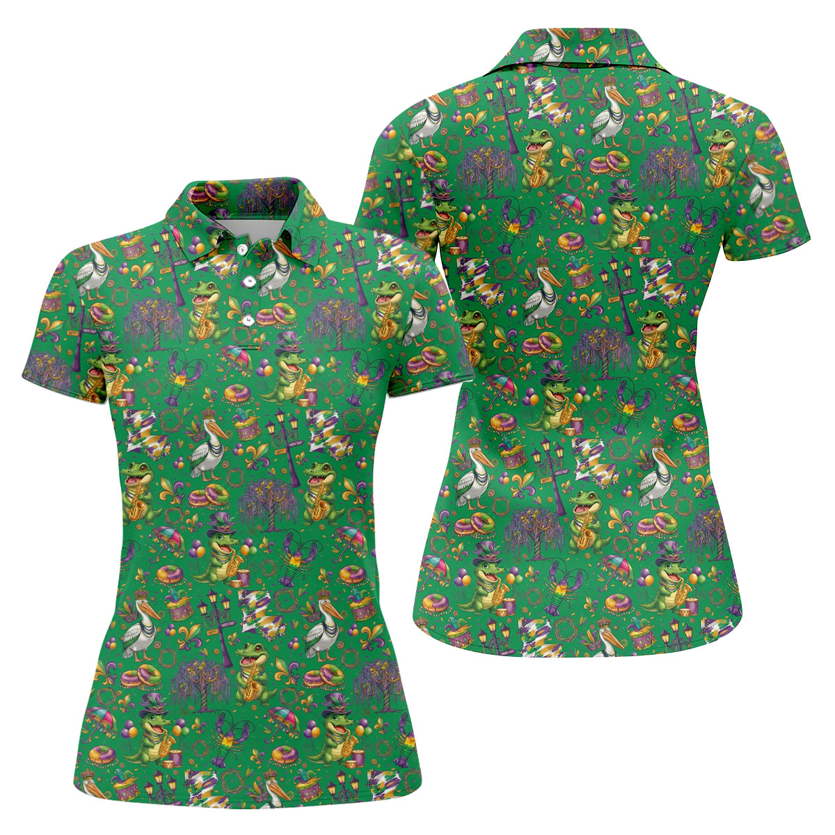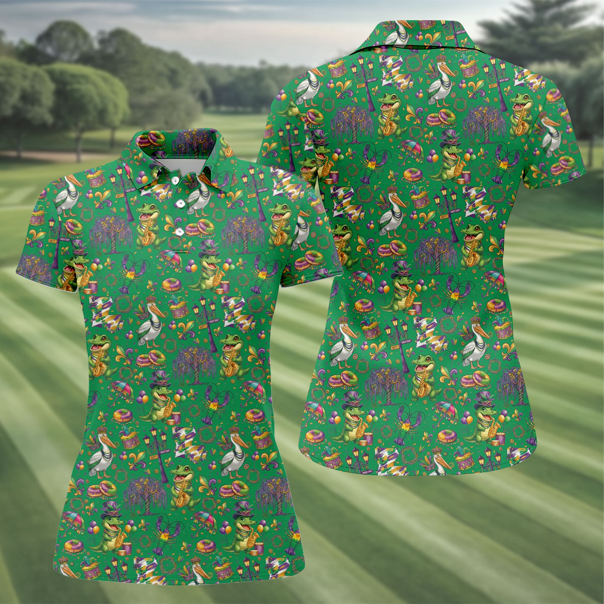 Mardi Gras Fleur De Lis Animal Band Green Golf Shirt, Women's Golf Shirts, Ladies Golf Polos