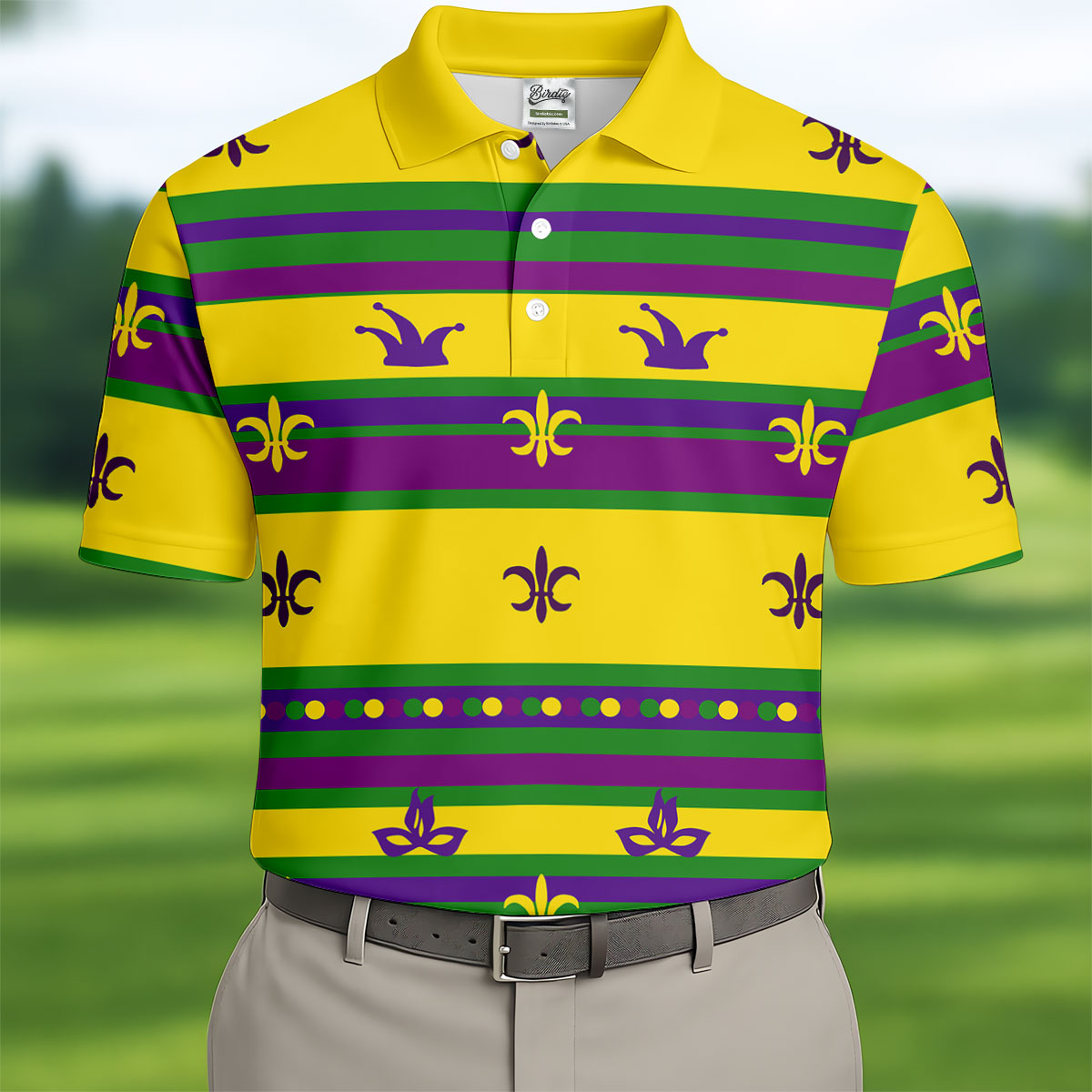Whether you’re teeing off during Mardi Gras week, playing a themed tournament, or just looking for an excuse to bring festival vibes to the course — this shirt shows up ready to celebrate.