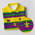 Mardi Gras Fleur De Lis Purple Green Gold Horizontal Stripes Golf Tops For Men, Polo Shirts For Men