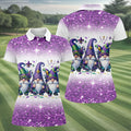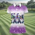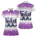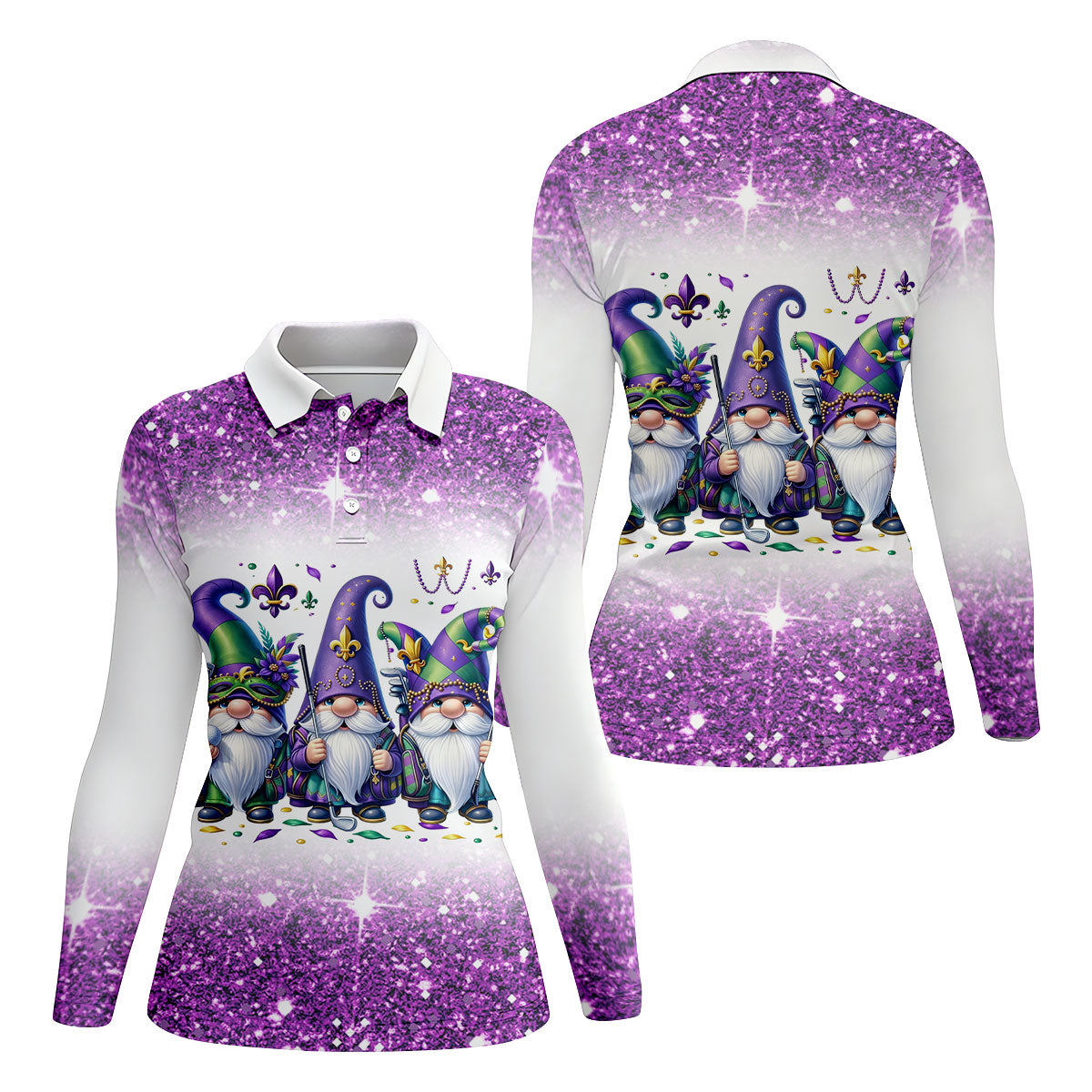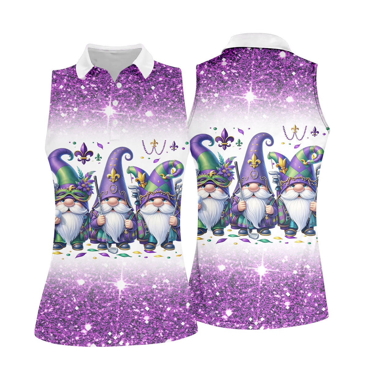 Mardi Gras Gnomes Fleur De Lis Glitter Effect Ladies Golf Tops, Women's Golf Shirts, Ladies Golf Polos
