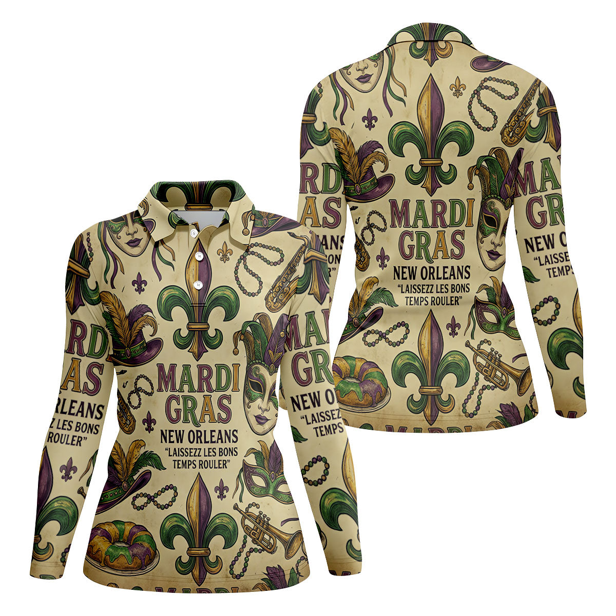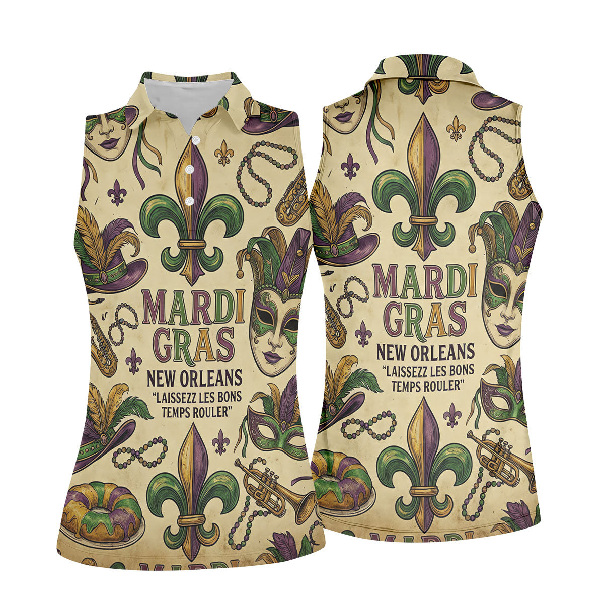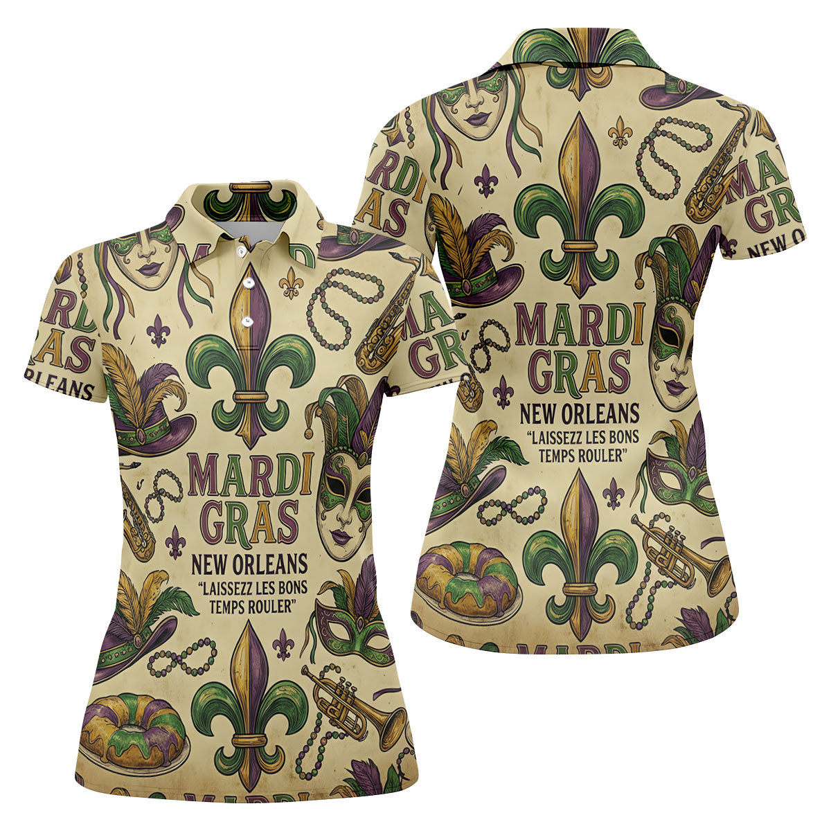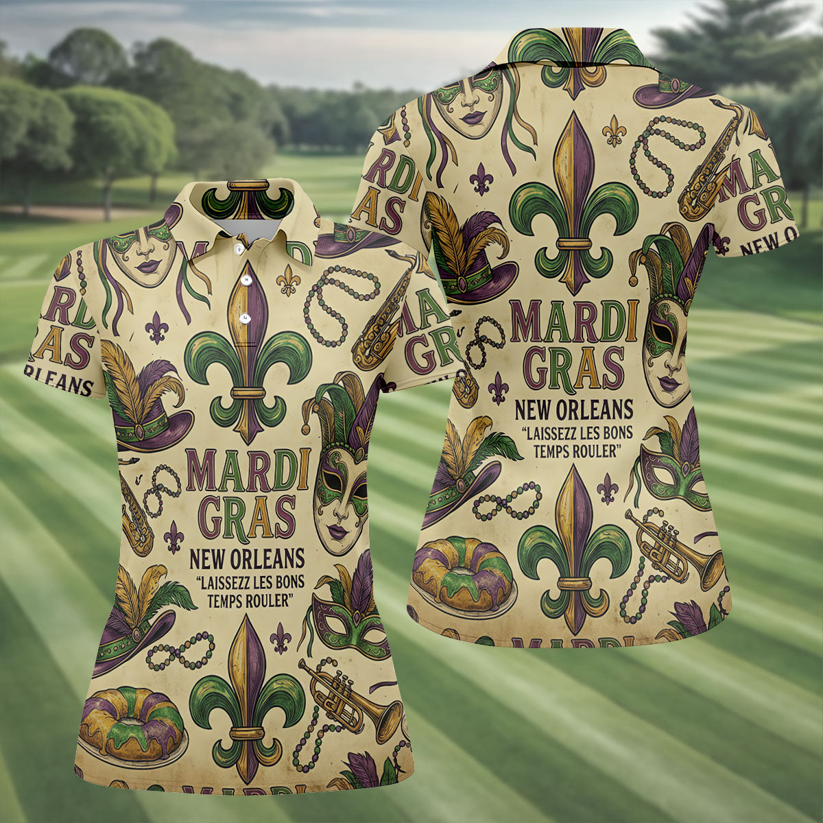 Mardi Gras New Orleans Fleur De Lis Carnival Hat Women's Golf Tops, Ladies Golf Shirts, Ladies Golf Polos
