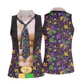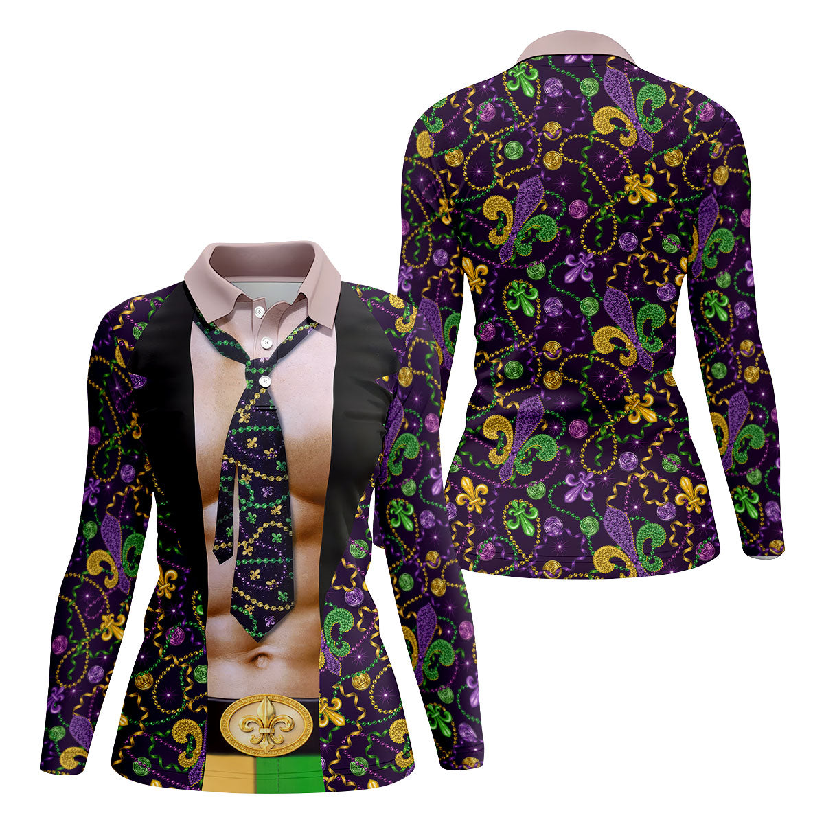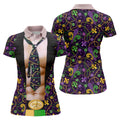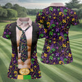 Mardi Gras Purple Green Gold Fleur De Lis Funny Costume Women's Golf Tops, Fun Women's Golf Shirts