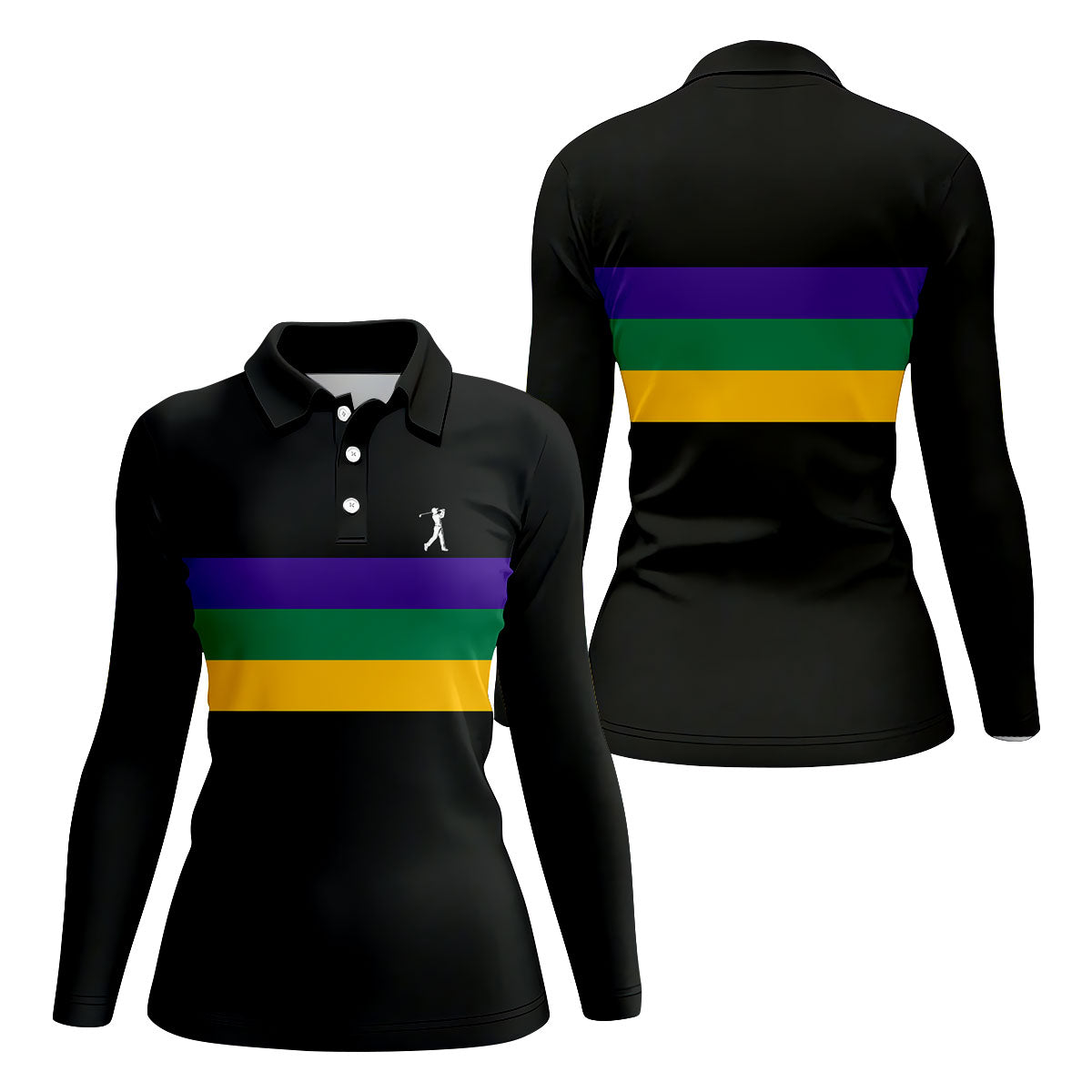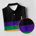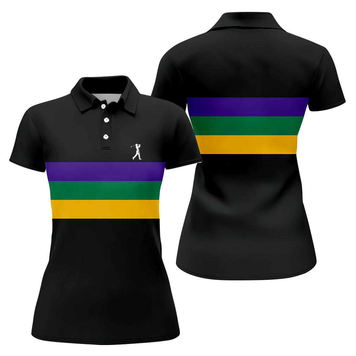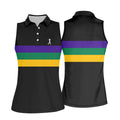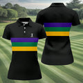 Mardi Gras Purple Green Gold Horizontal Stripes Black Golf Shirt, Women's Golf Shirts, Ladies Golf Polos