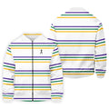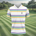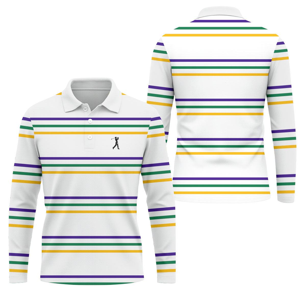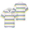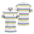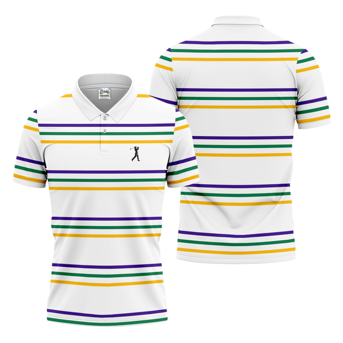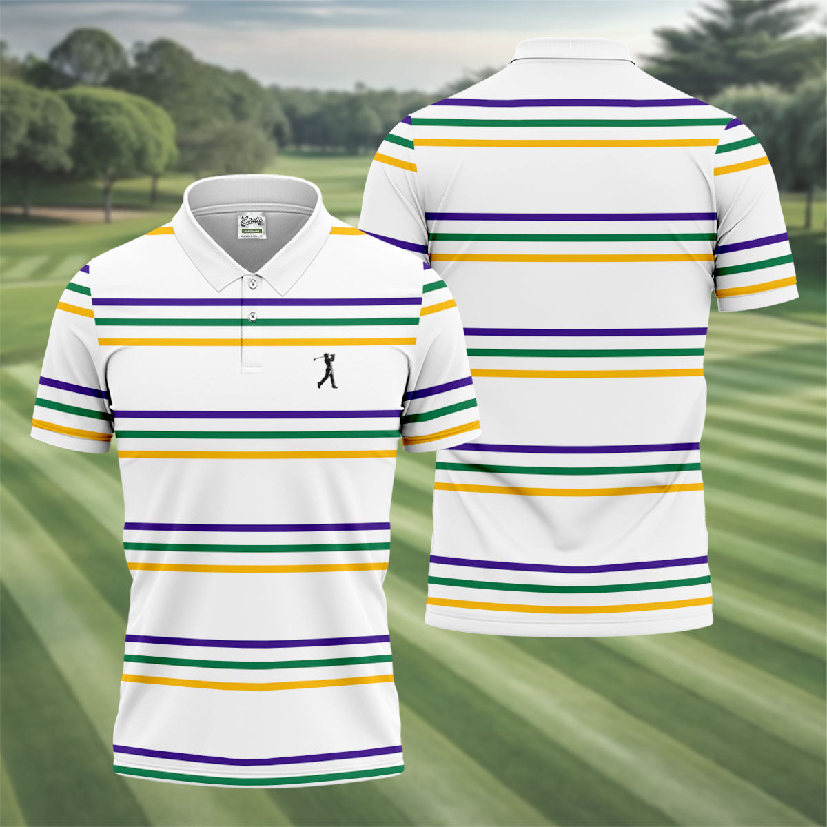 Mardi Gras Purple Green Gold Stripe Pattern Golf Tops For Men, Men's White Polo, Golf Shirts For Men
