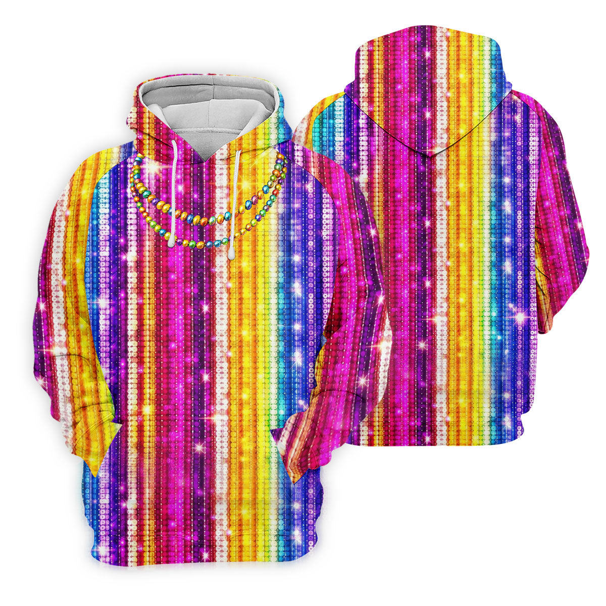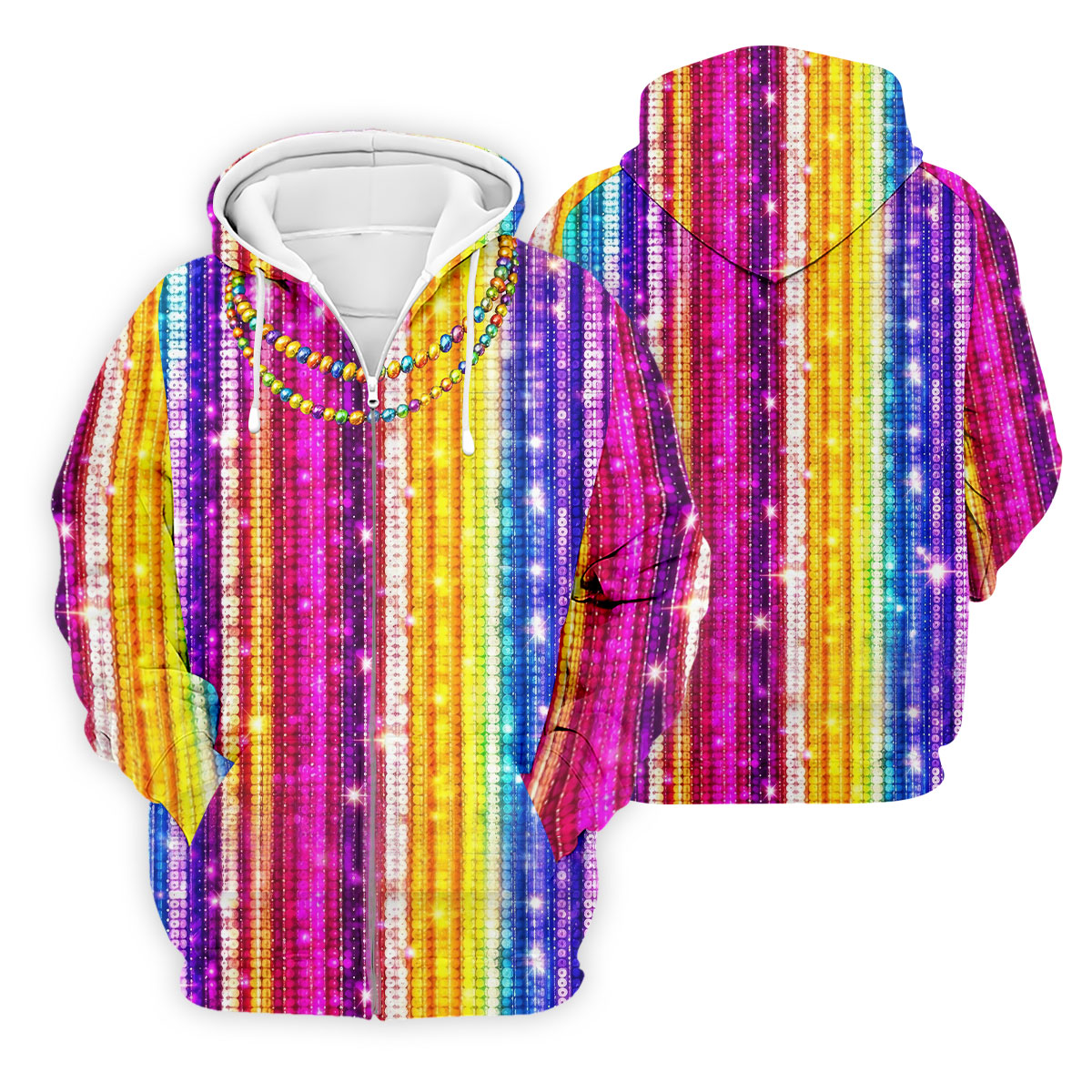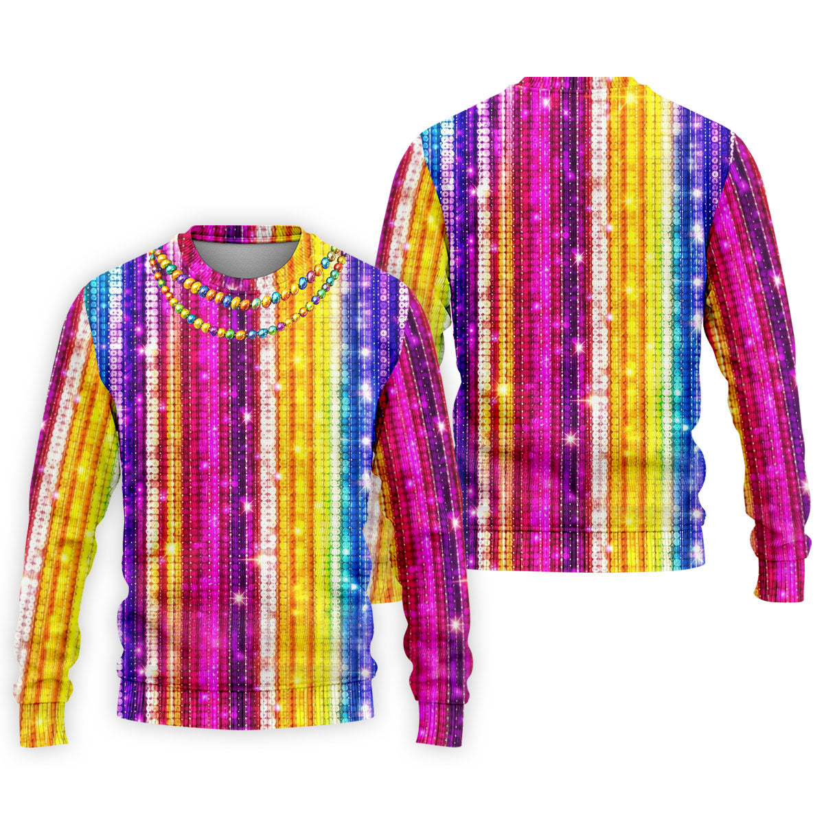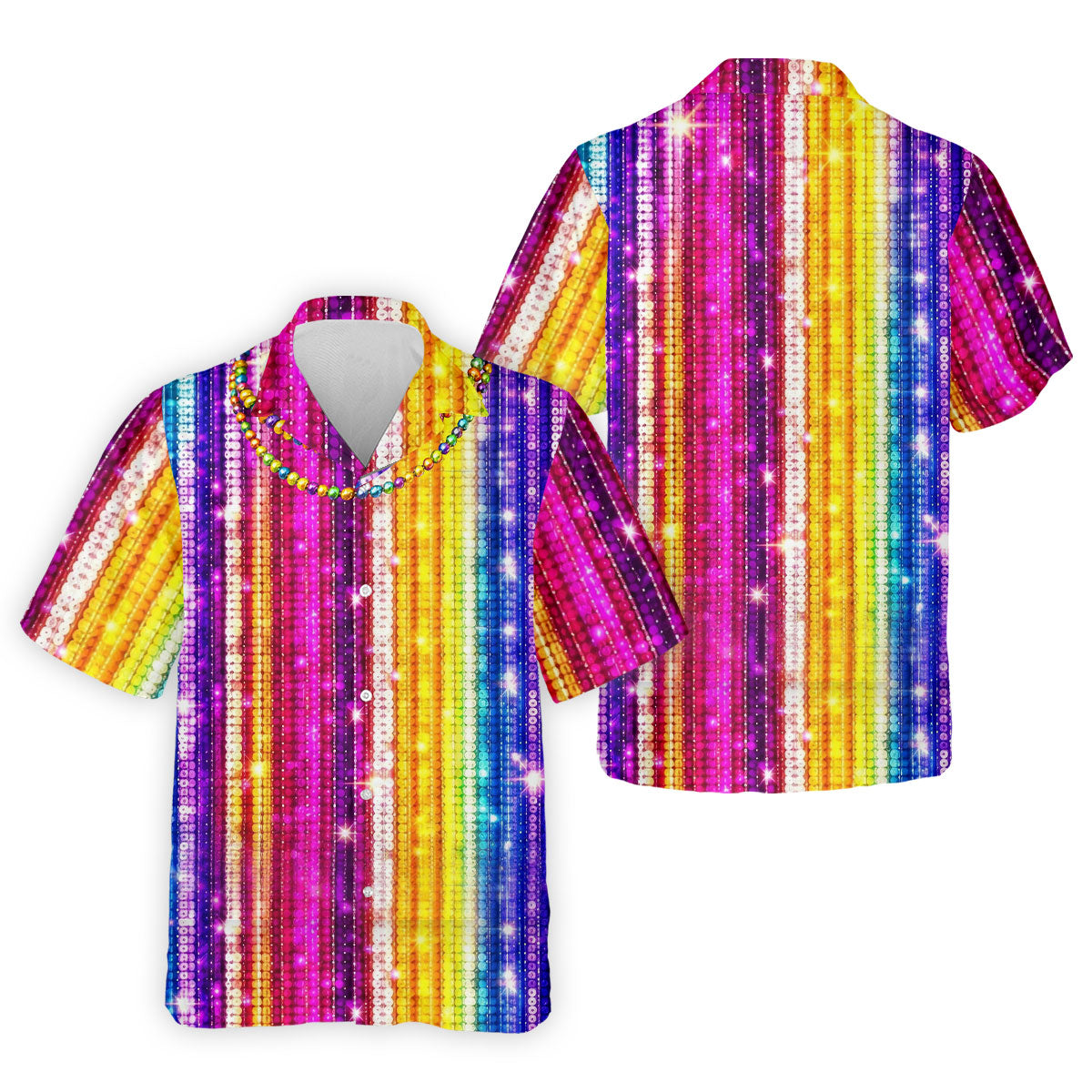Mardi Gras Sequinned Glitter Print Golf Tops For Men, Polo Shirts For Men, Golf Shirts For Men