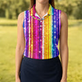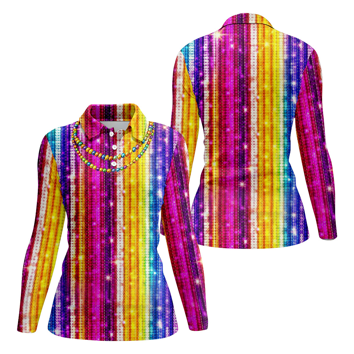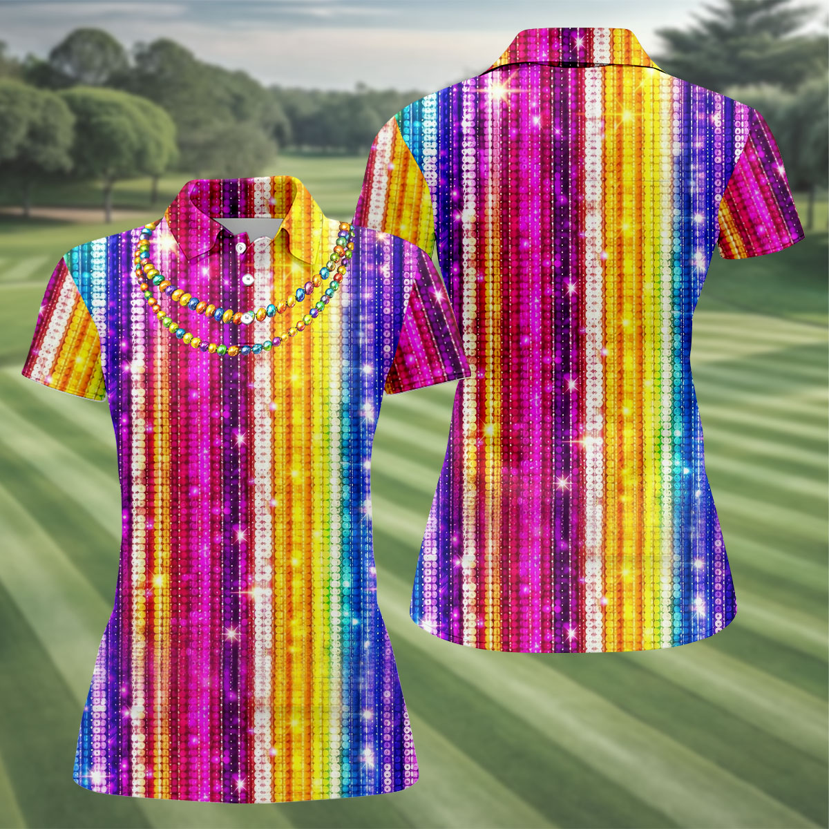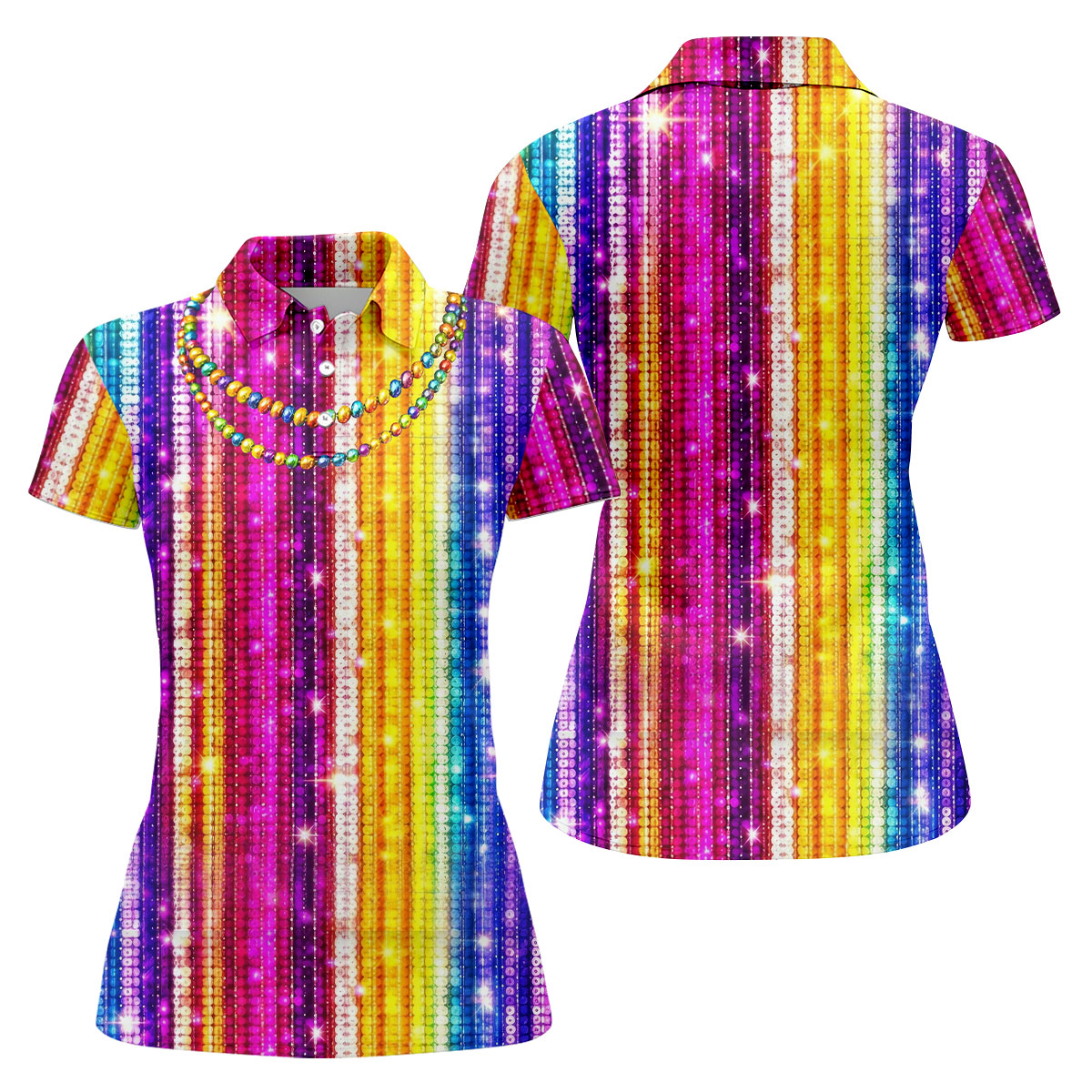 Mardi Gras Sequinned Glitter Print Women's Golf Shirts, Ladies Golf Polos, Golf Shirt For Women