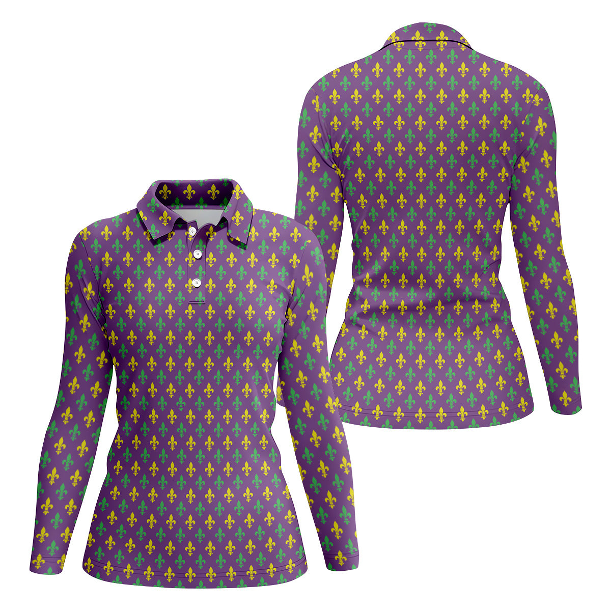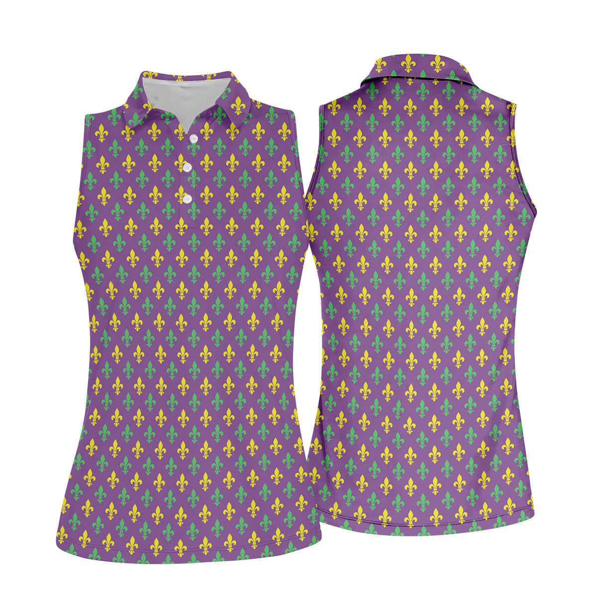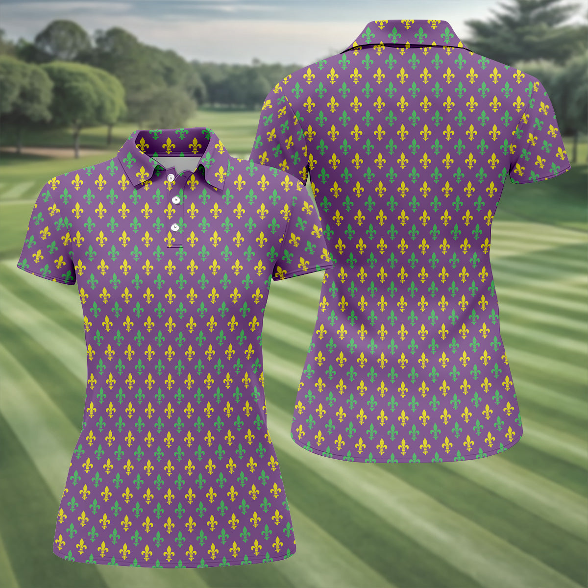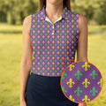 Mardi Gras Theme Green Purple Gold Fleur De Lis Pattern Women's Golf Tops, Golf Gift For Ladies