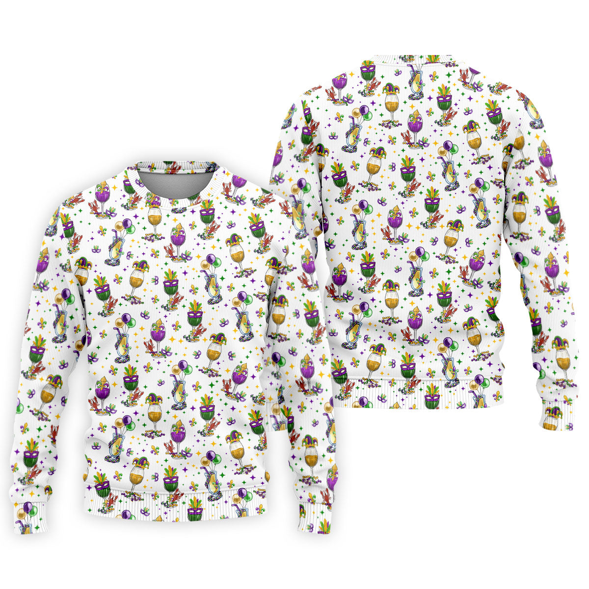 Mardi Gras Wine Glass Beaded Garland Fleur De Lis White Golf Shirt, Polo Shirts For Men, Golf Shirts For Men