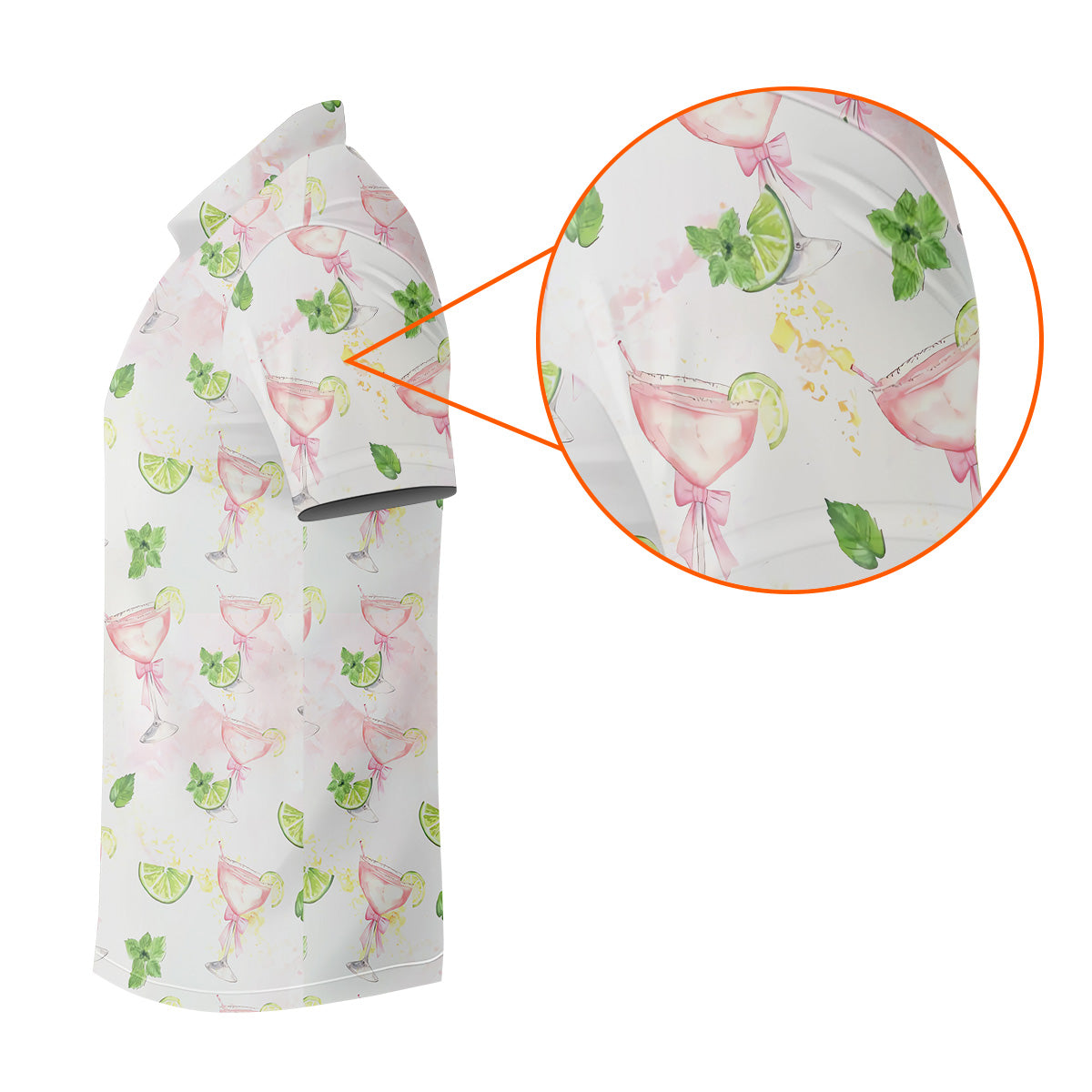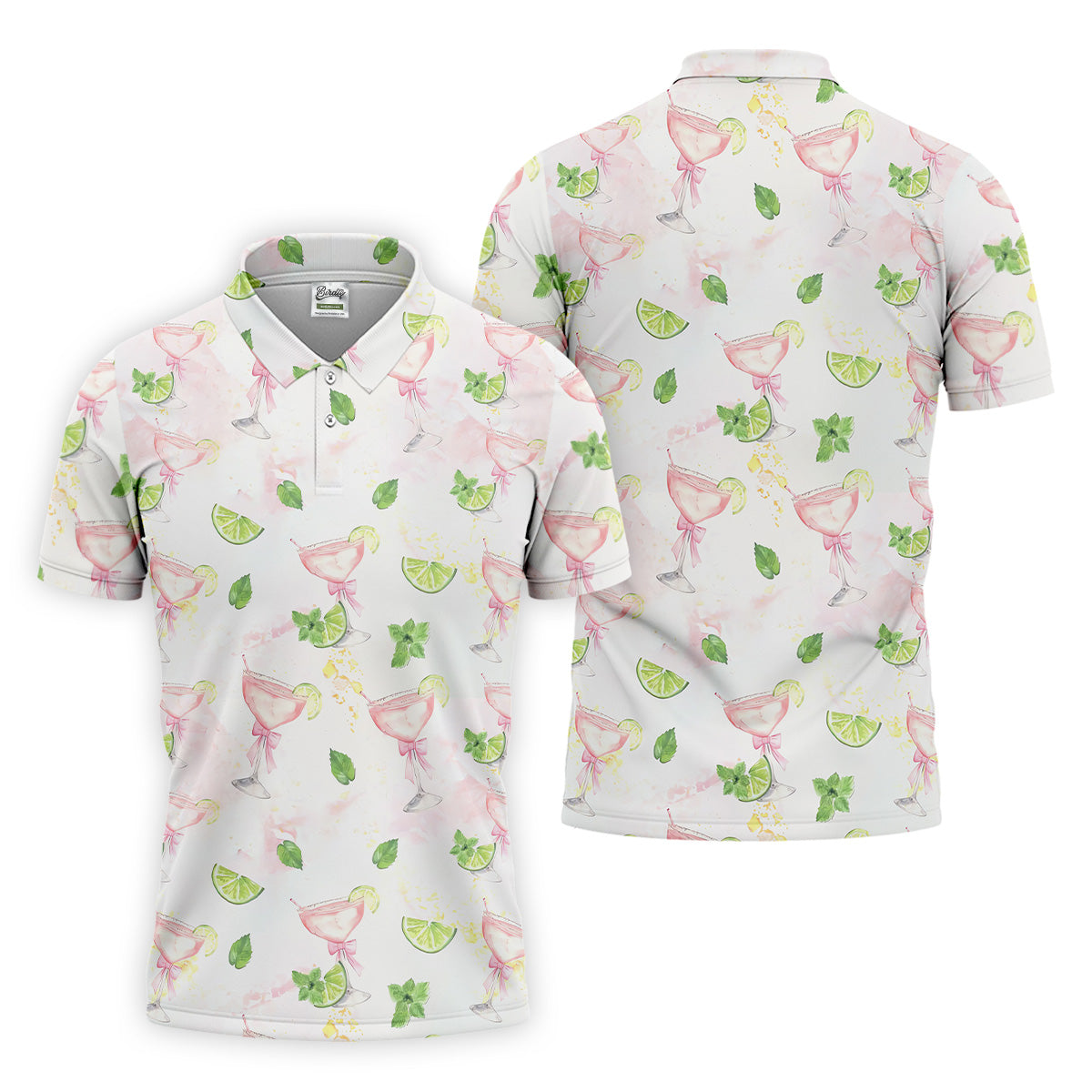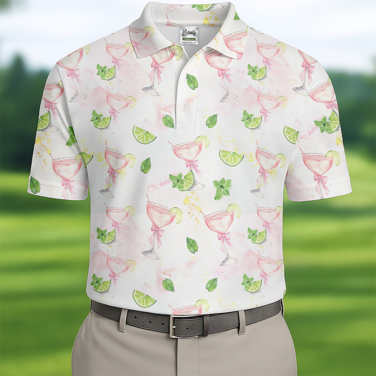 Margarita Mens Golf Polo Shirts, Coquette Pattern Men Polo, Mens White Polo, Golf Gift For Men