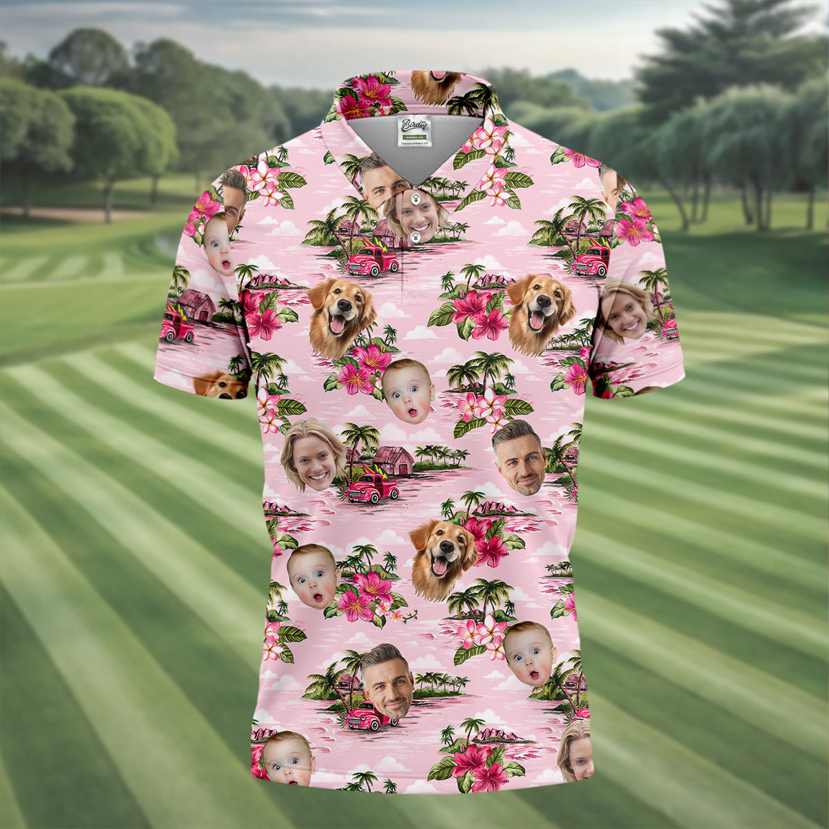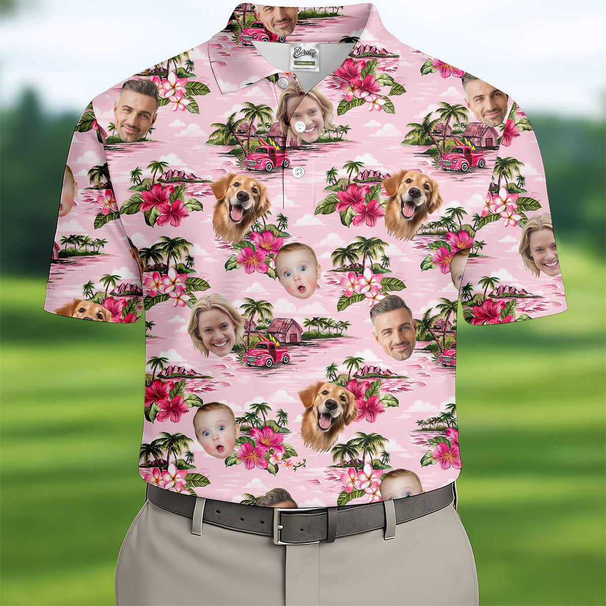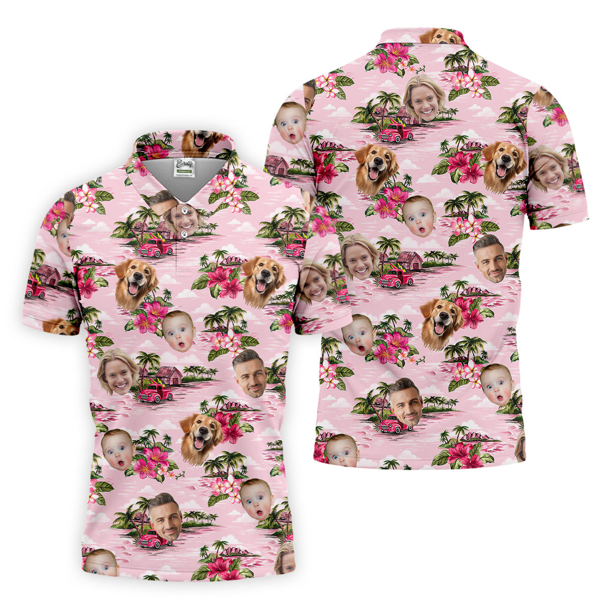 Mens Pink Hawaiian Shirt, Flower Men Shirt, Custom Team Shirt, Men Polo Shirt, Best Gifts For Men Golfers