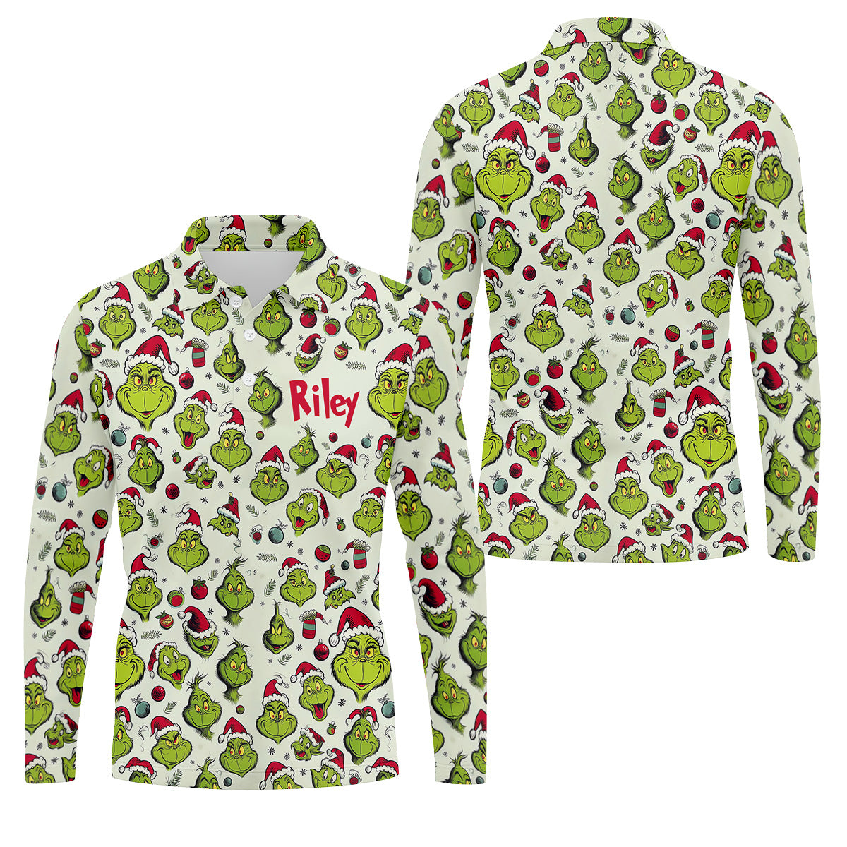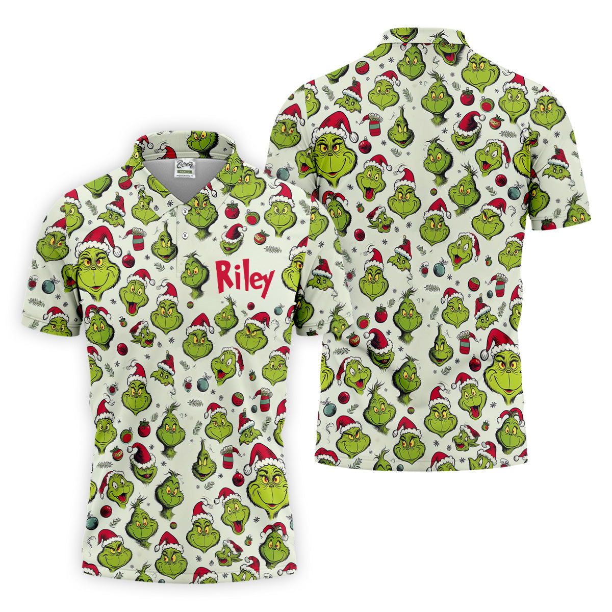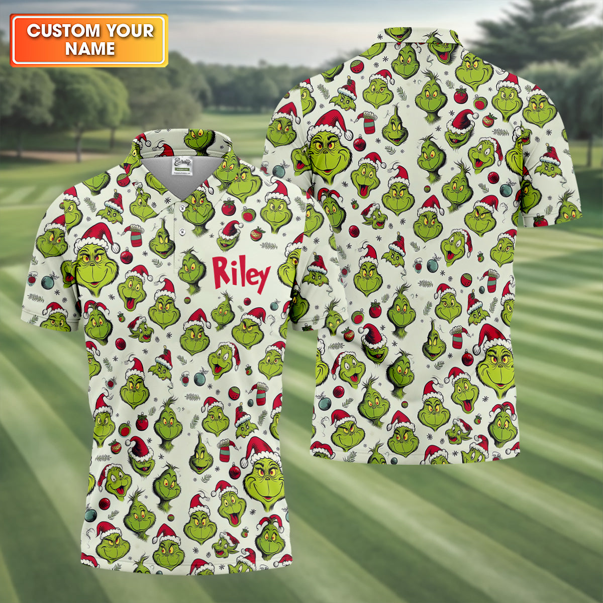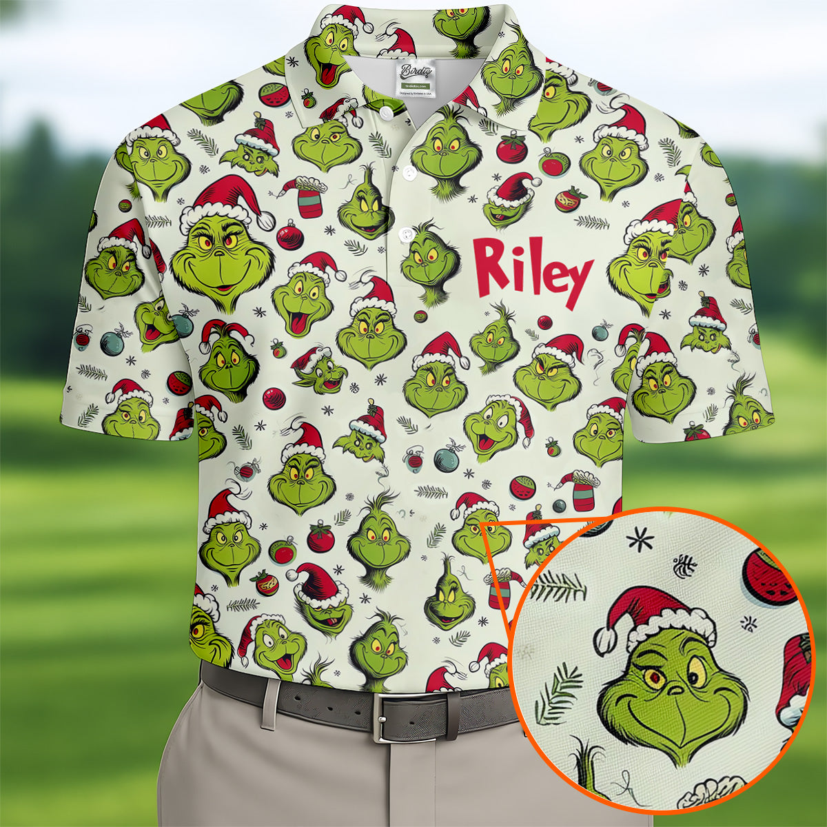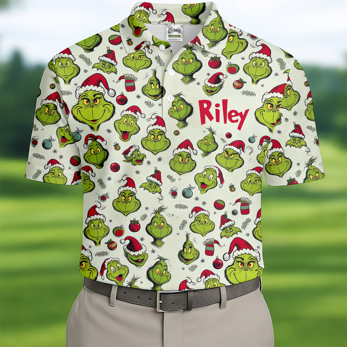 Merry Grinchmas The Green Monster Polo Shirts For Men, Golf Gift For Men, Christmas Golf Shirt