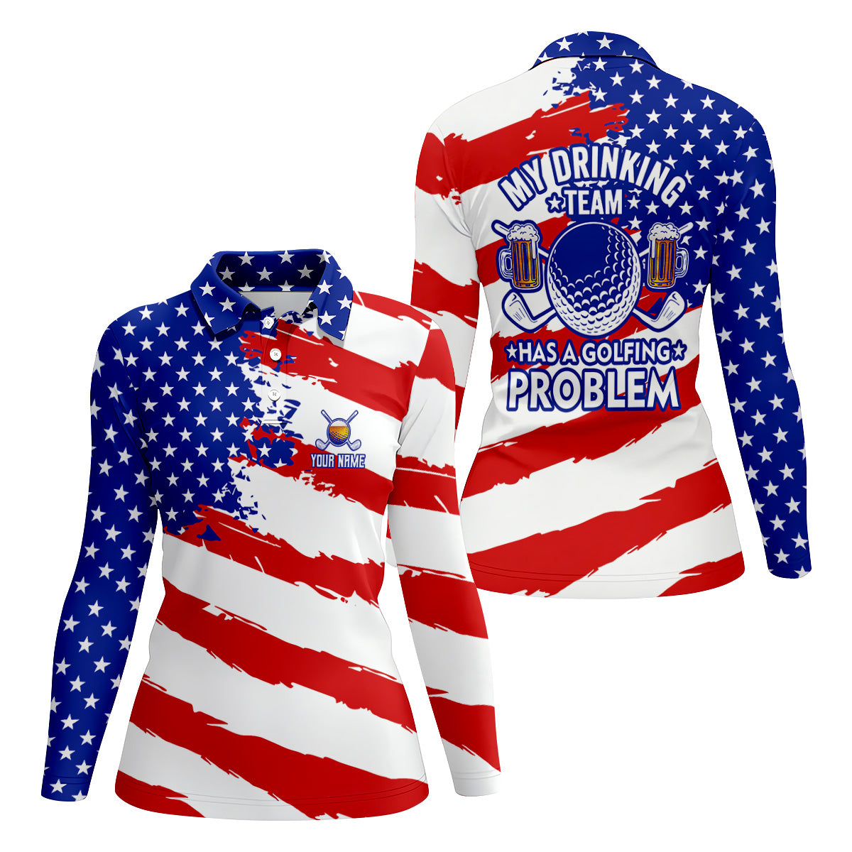 My Drinking Team Has A Golfing Problem Patriotic Golf Shirts, Funny Golf Shirts Women, Ladies Golf Polos