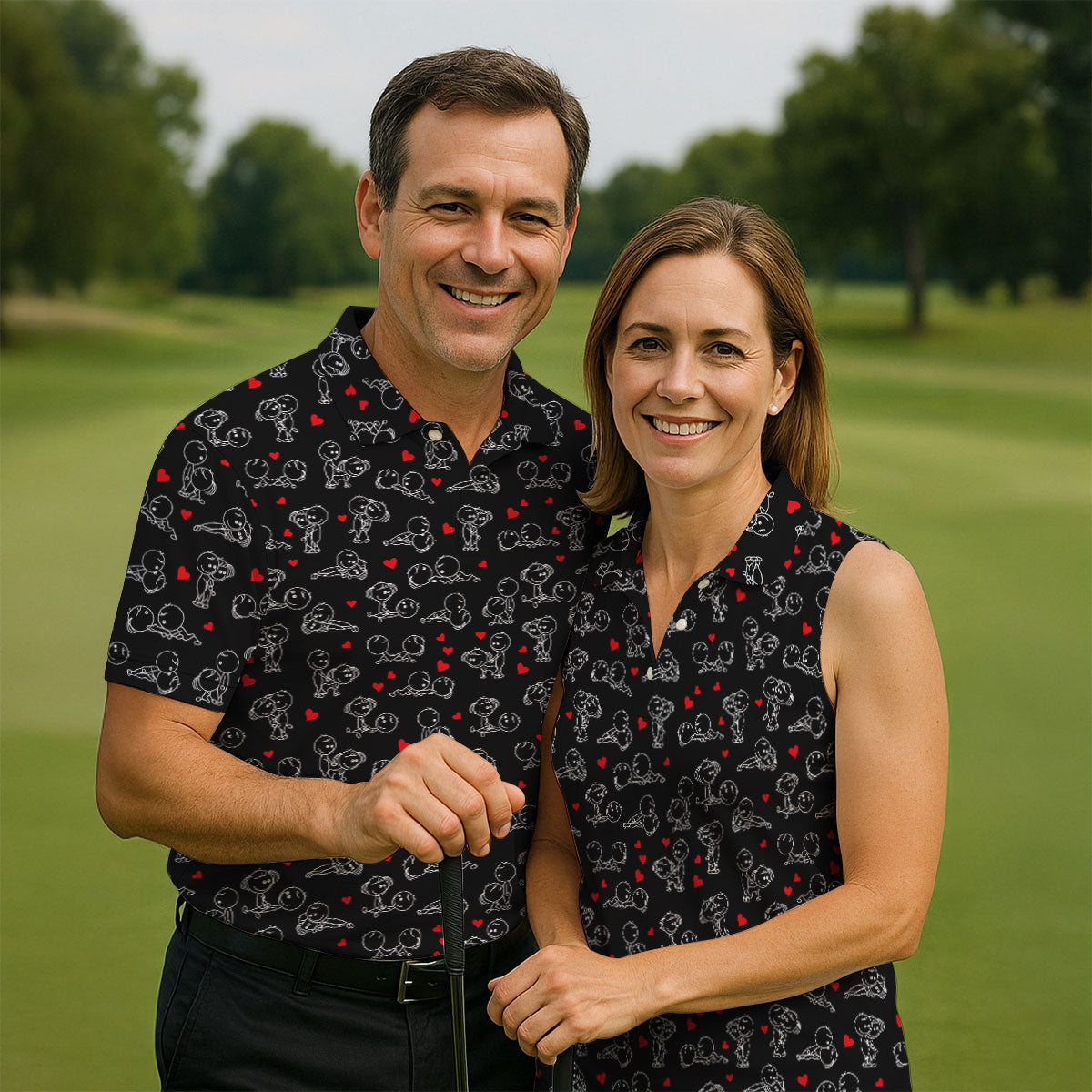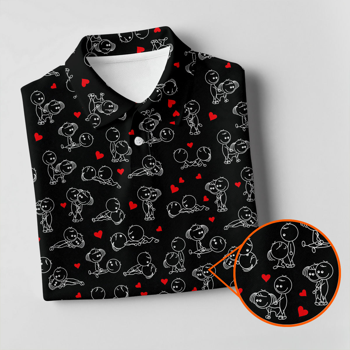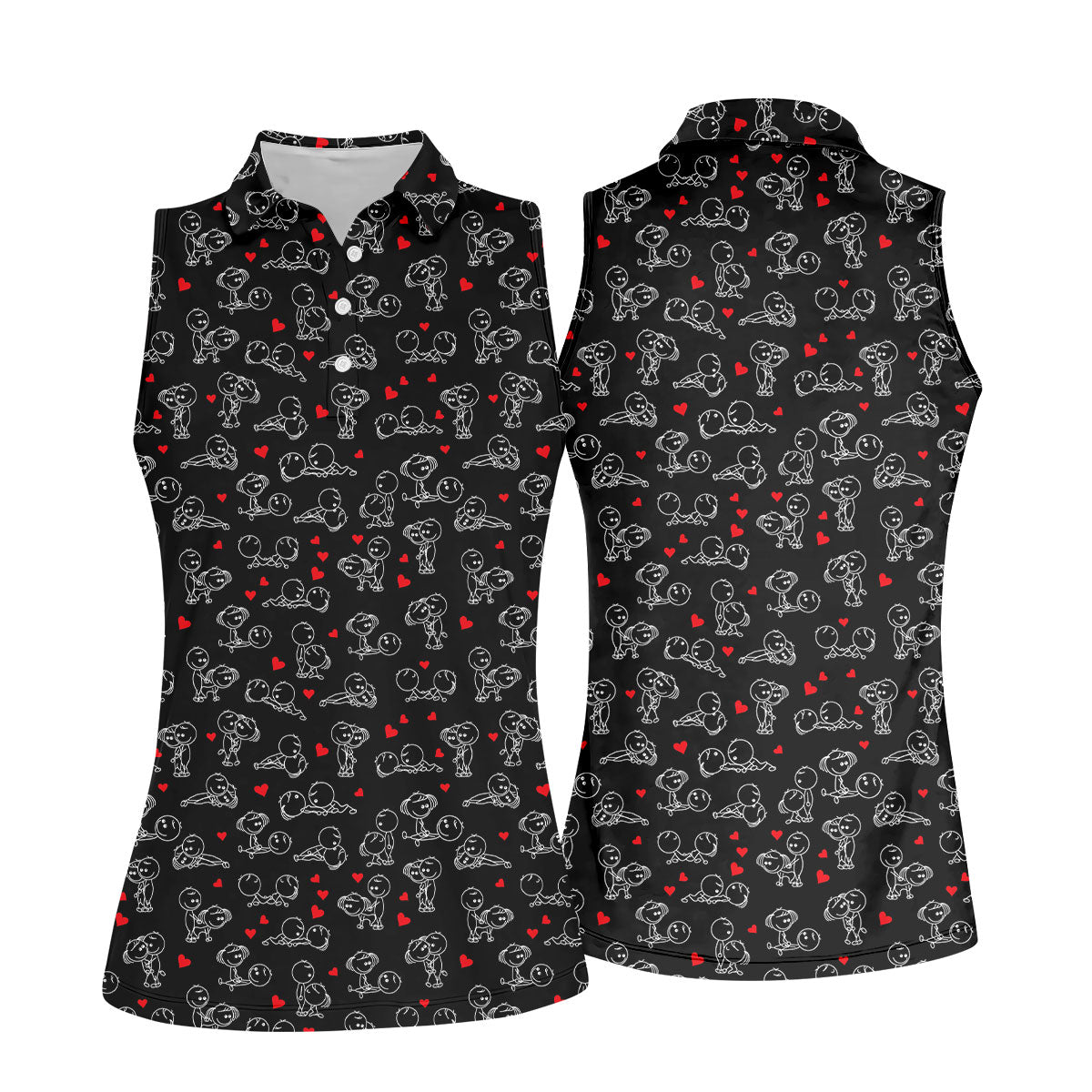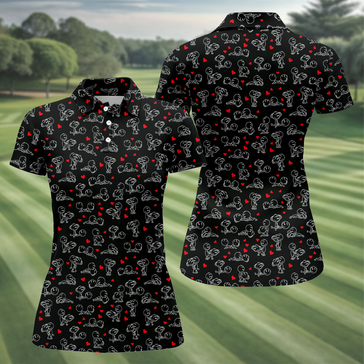 Naughty Position Stick Figure Couple Black Golf Shirt, Golfer Valentines Gift, Fun Women's Golf Shirts, Ladies Golf Shirts