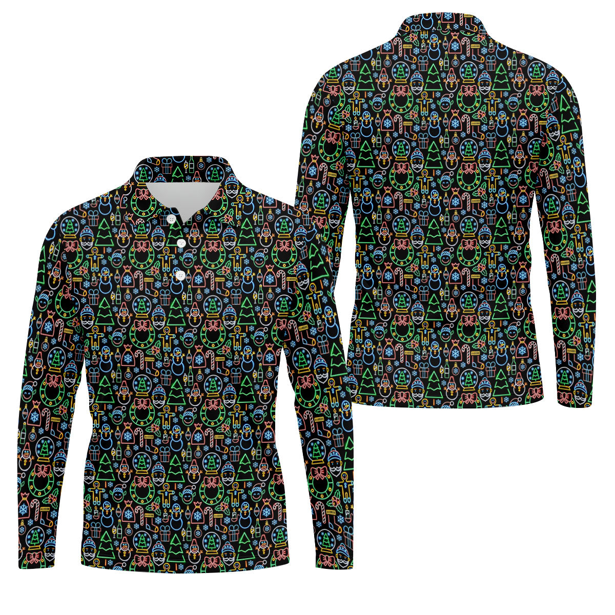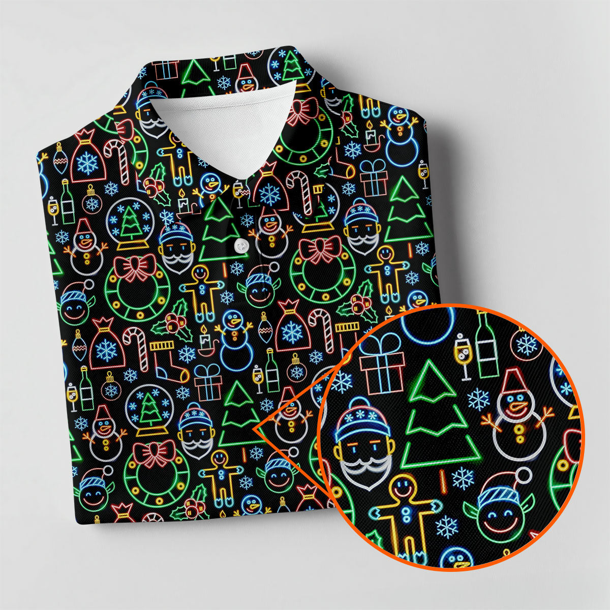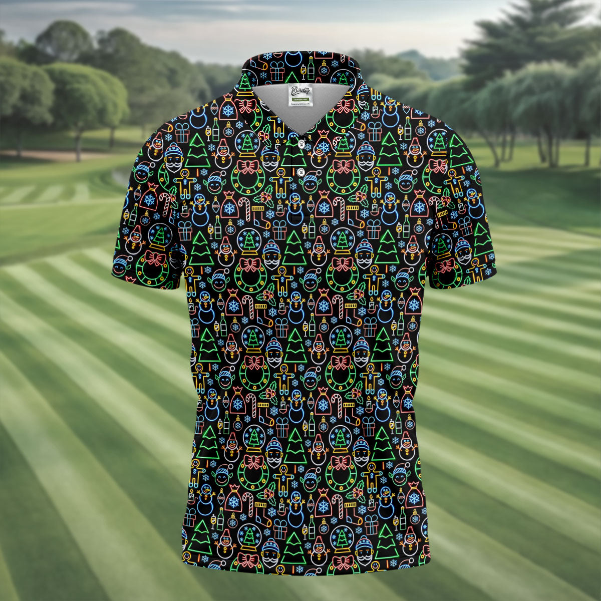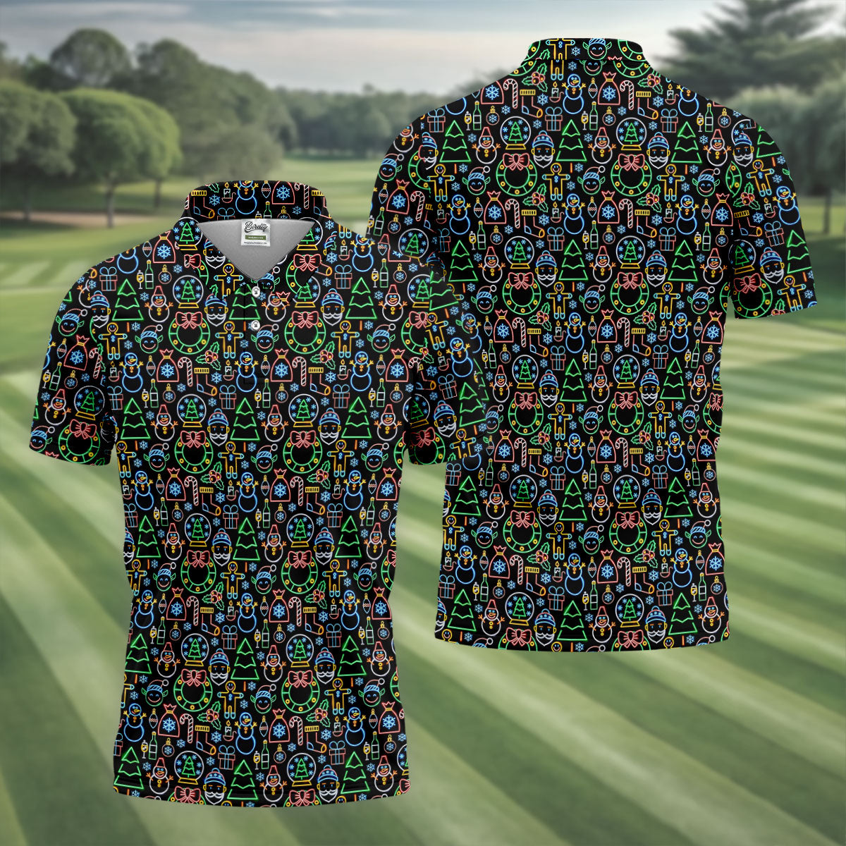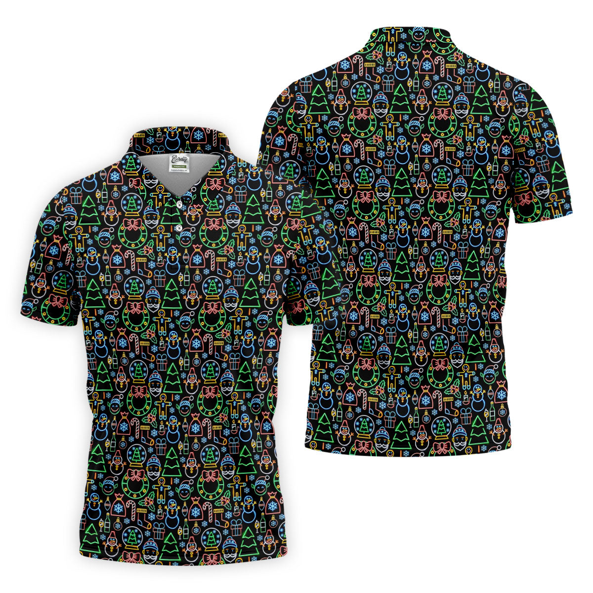 Neon Christmas Retro Style Men's Golf Polo Shirts, Christmas Golf Shirt, Polo Shirts For Men