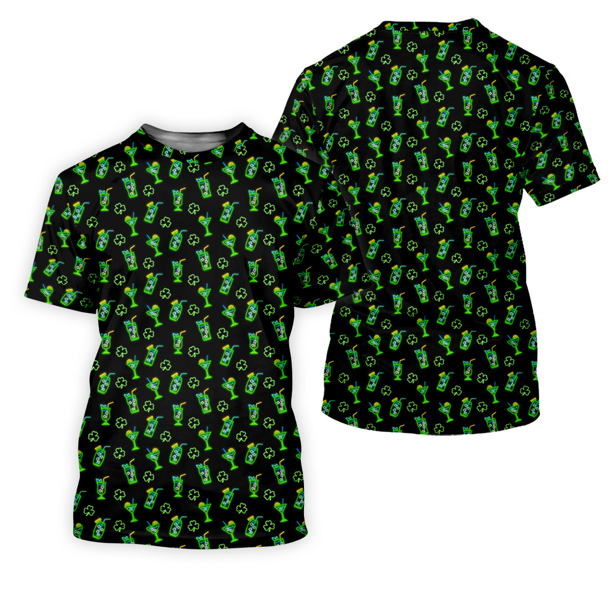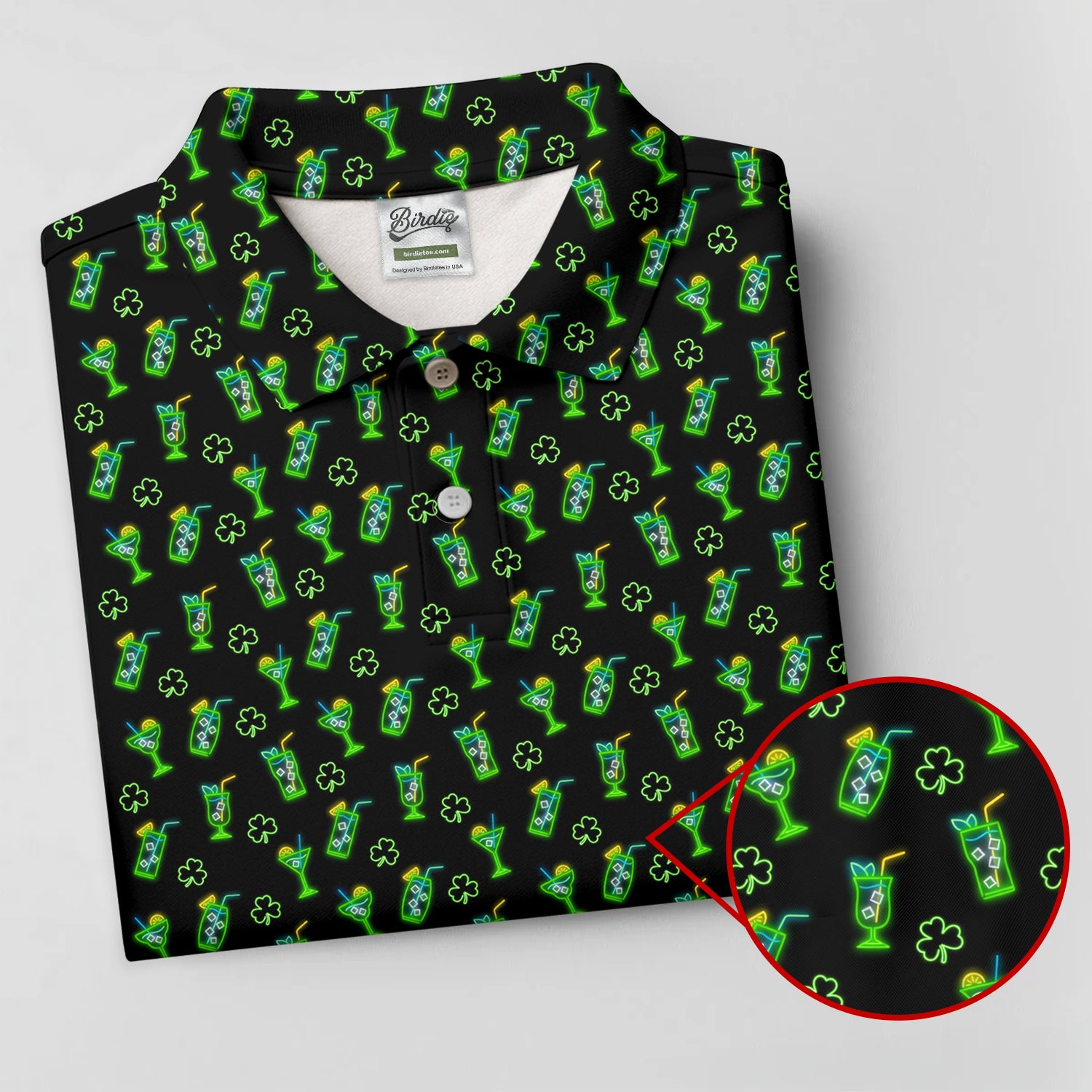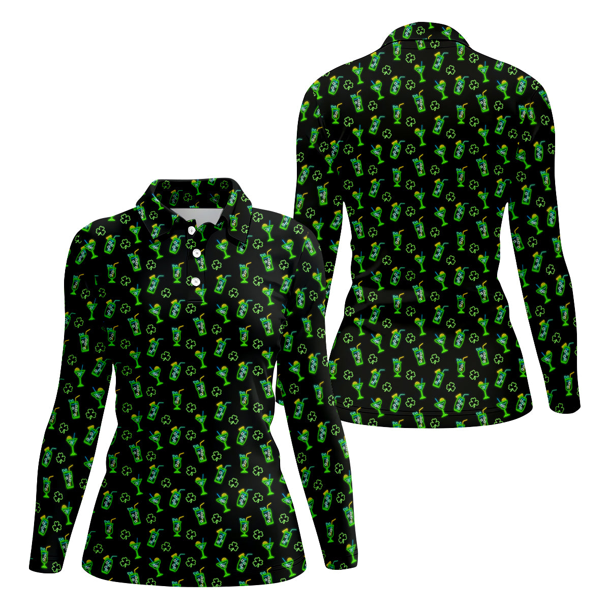 Neon Green Cocktails Three Leaf Clover St Patrick's Day Golf Shirt, Women's Golf Tops, Ladies Golf Shirts