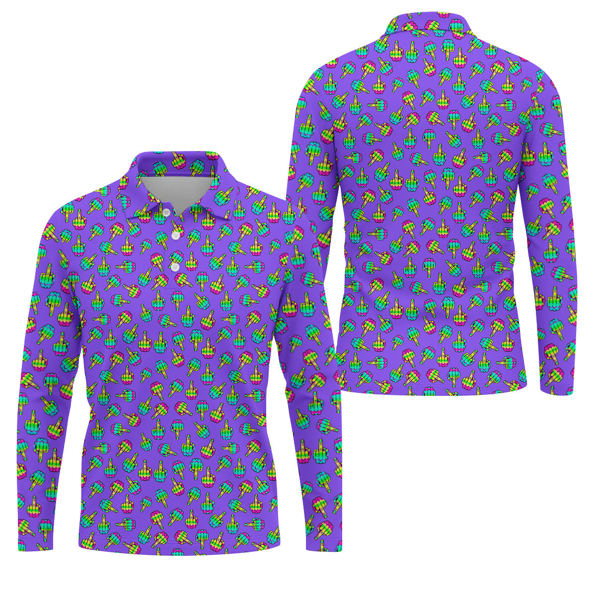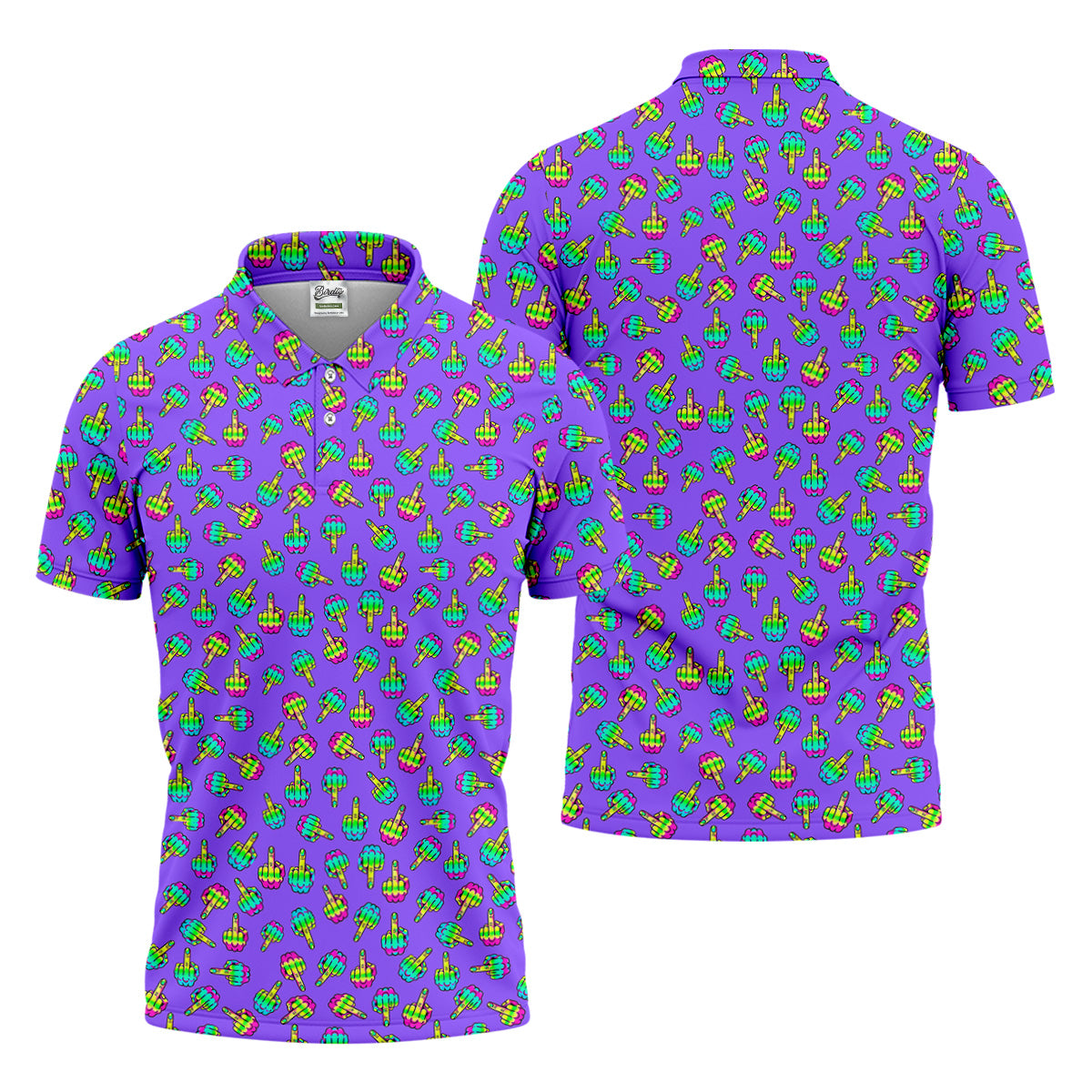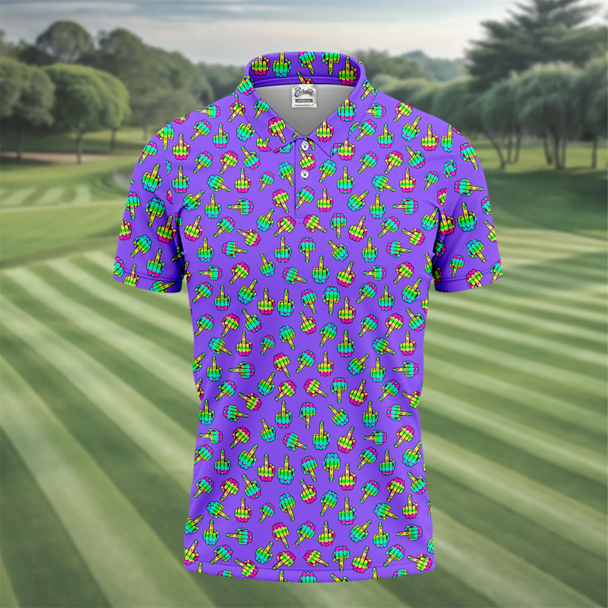 Neon Middle Finger Purple Golf Shirt, Fun Golf Shirts For Men, Cool Golf Gifts, Polo For Men