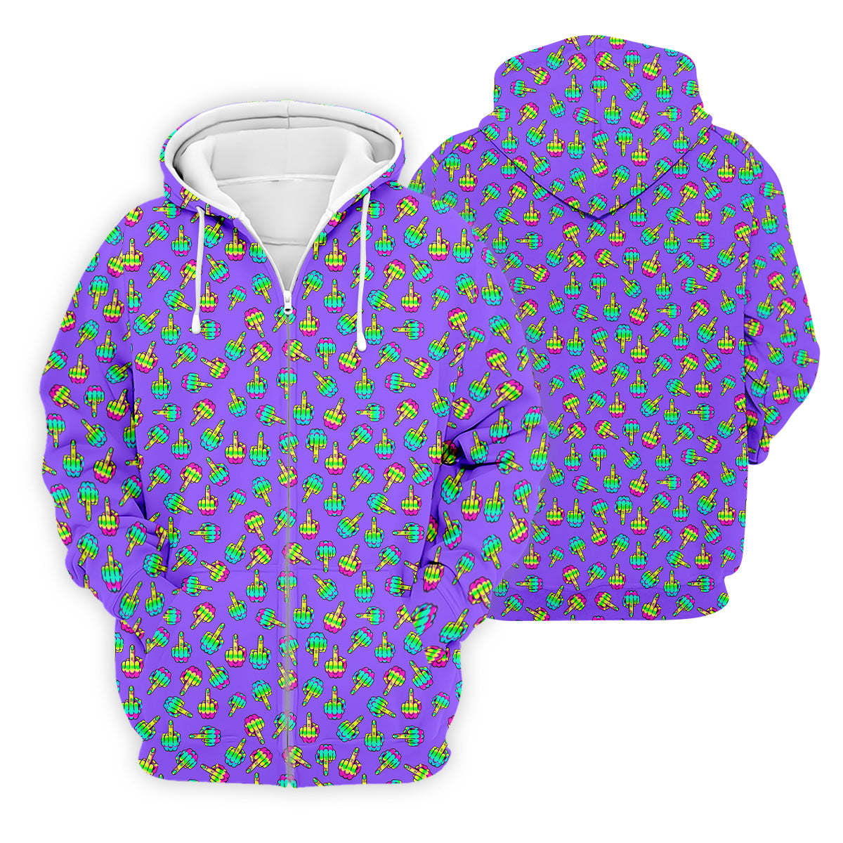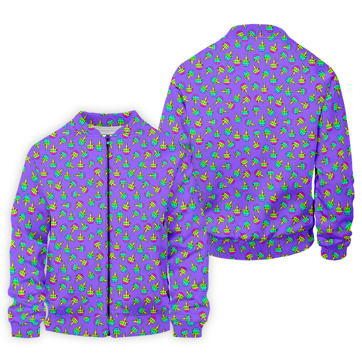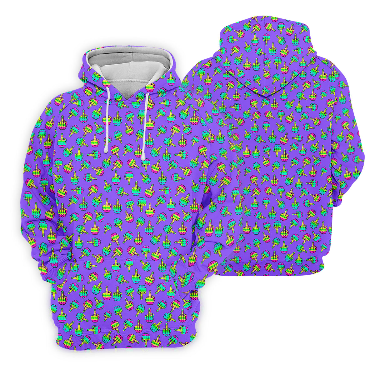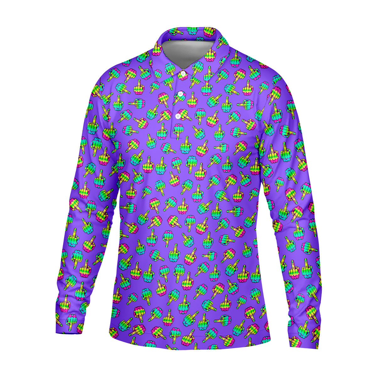 Neon Middle Finger Purple Golf Shirt, Fun Golf Shirts For Men, Cool Golf Gifts, Polo For Men