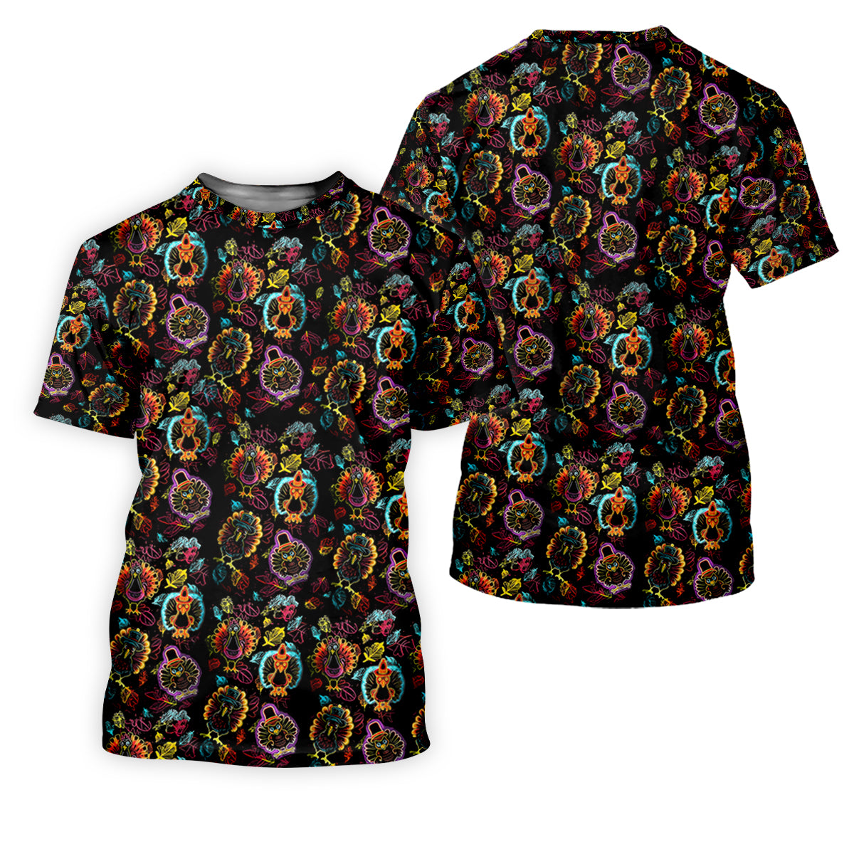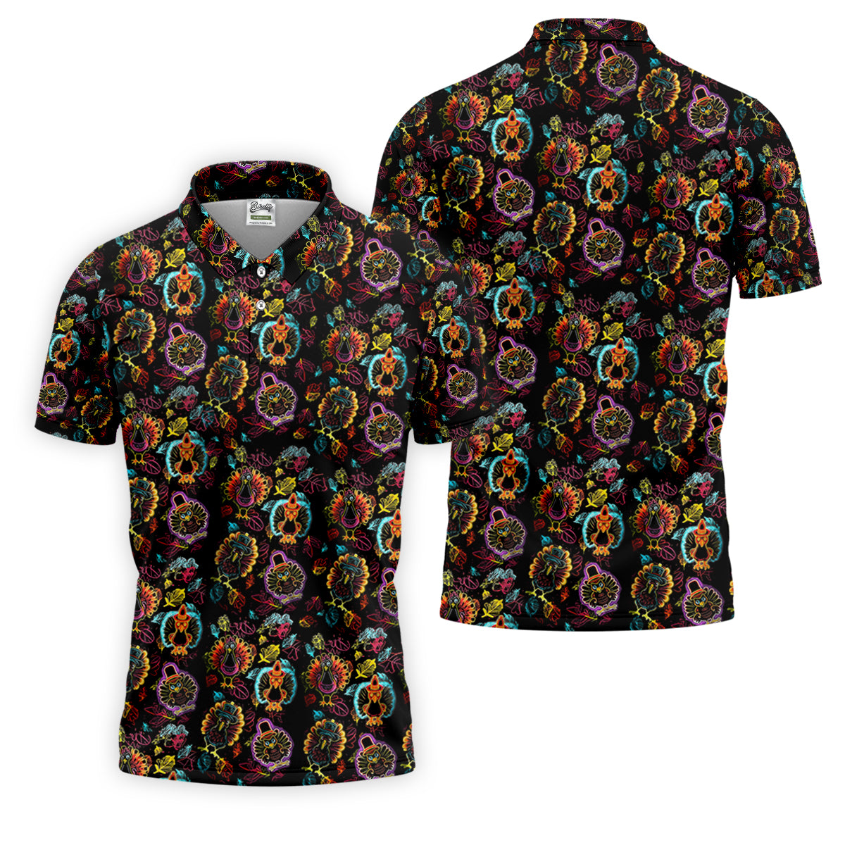 Neon Turkey Thanksgiving Golf Tops For Men, Polo Shirts For Men, Golf Gift For Men, Golfing Apparel