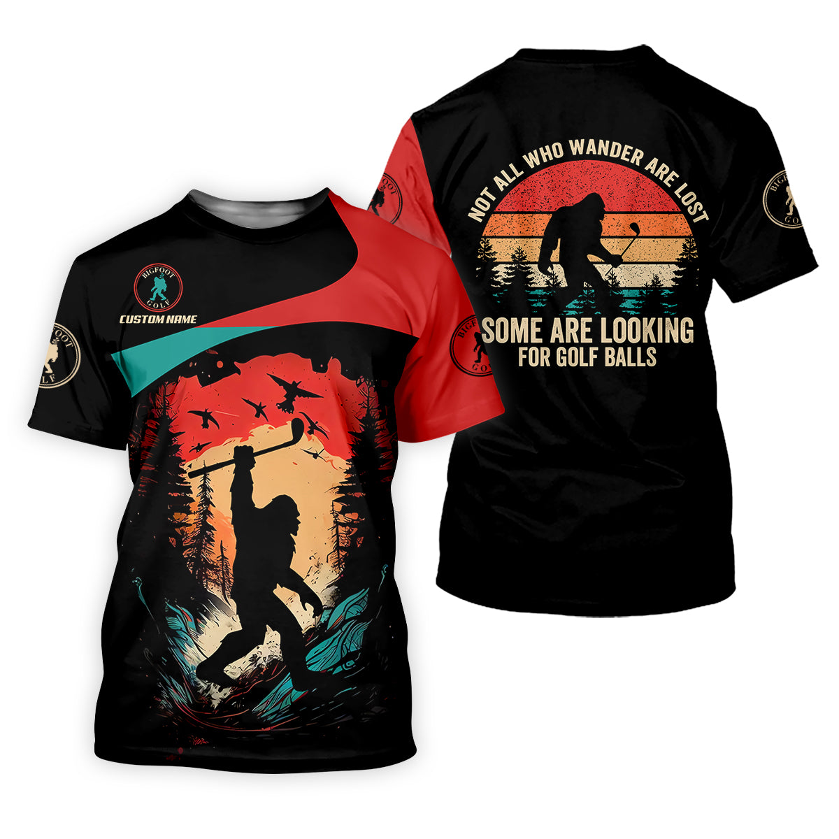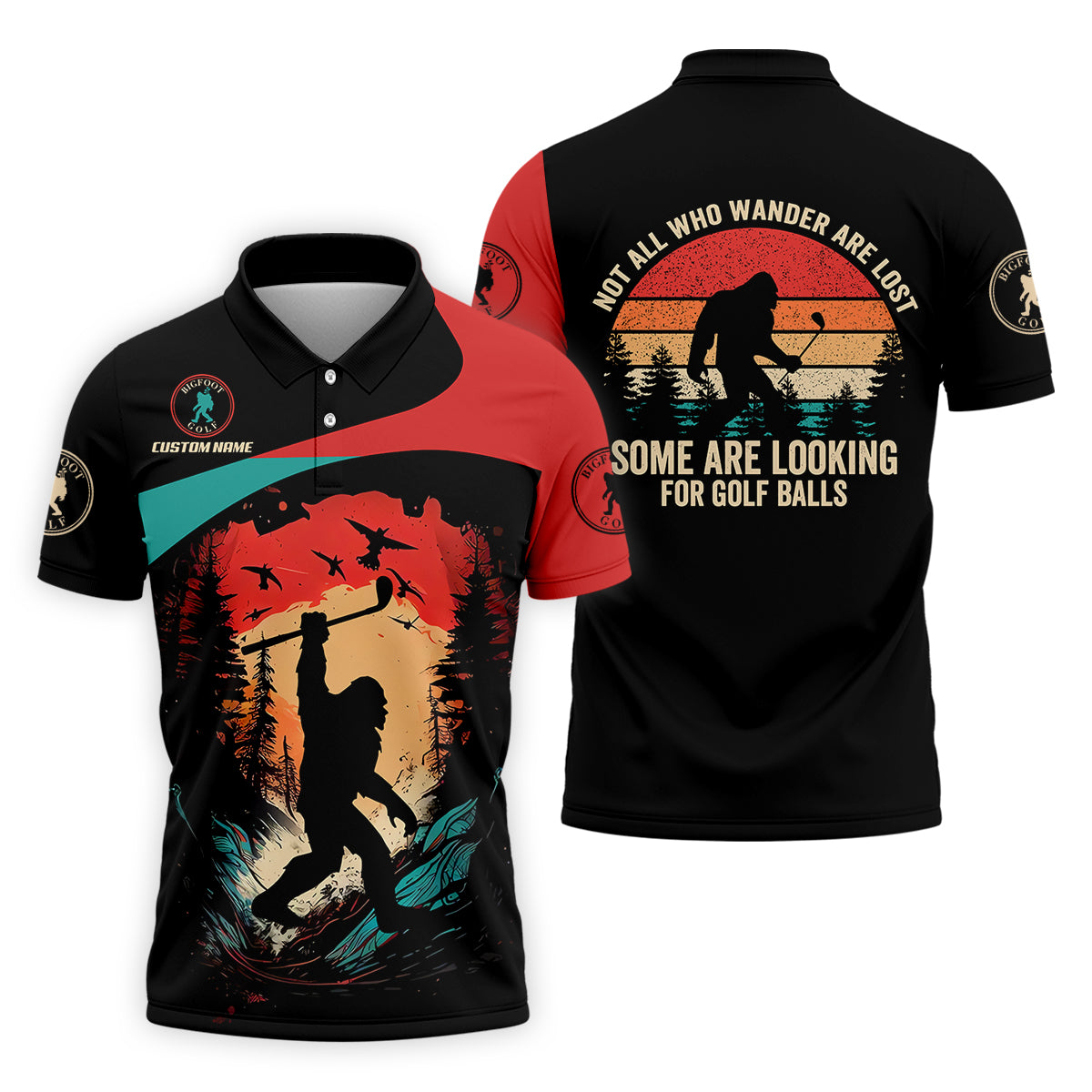 Not All Who Wander Are Lost Custom Men's Golf Polo Shirt, Funny Bigfoot Golf Shirt, Dad Golf Gift