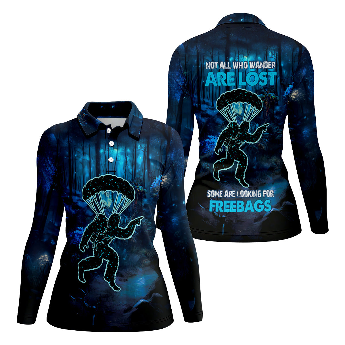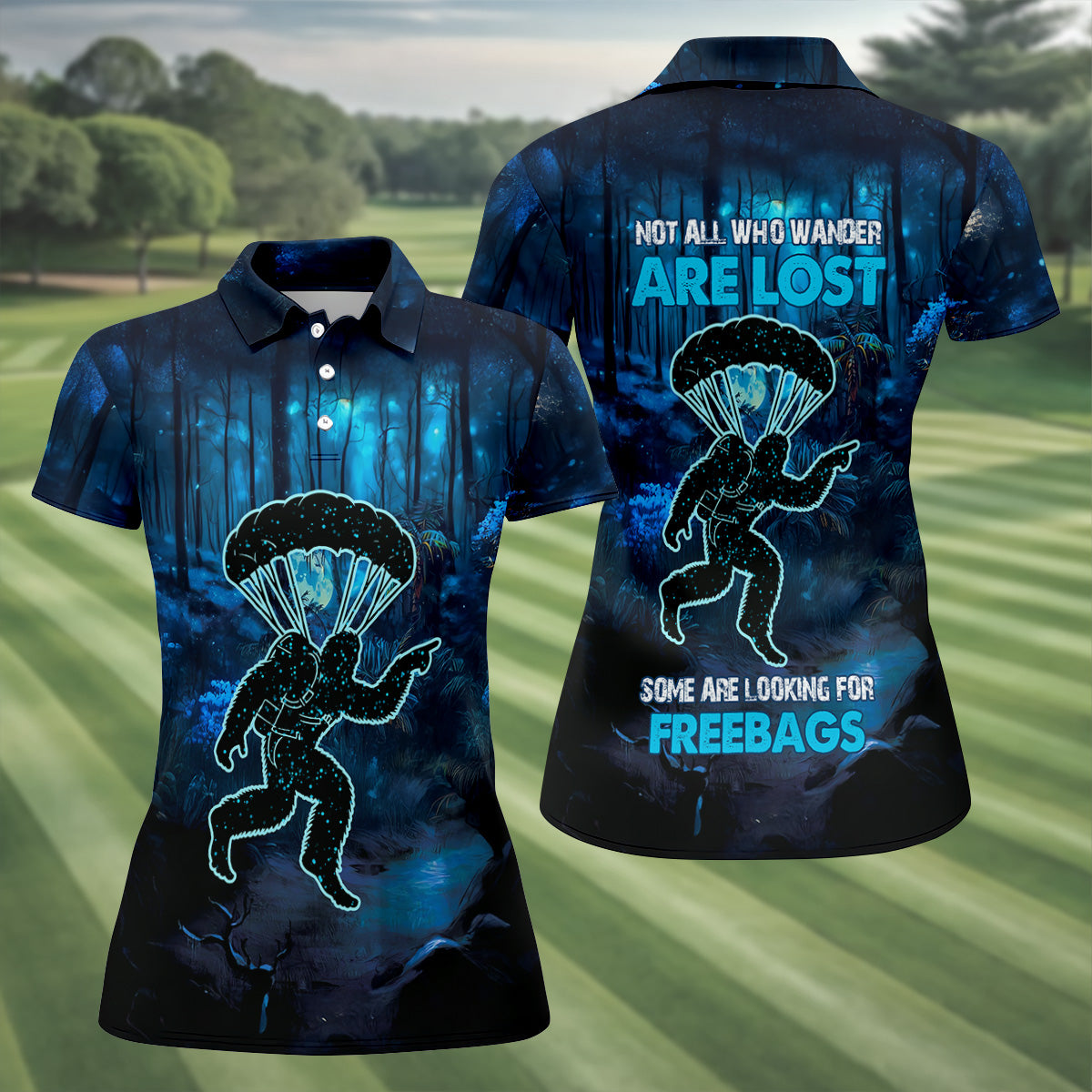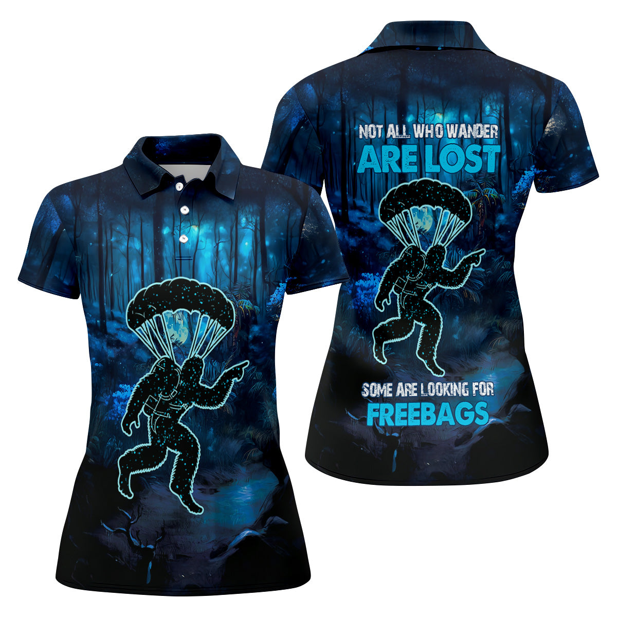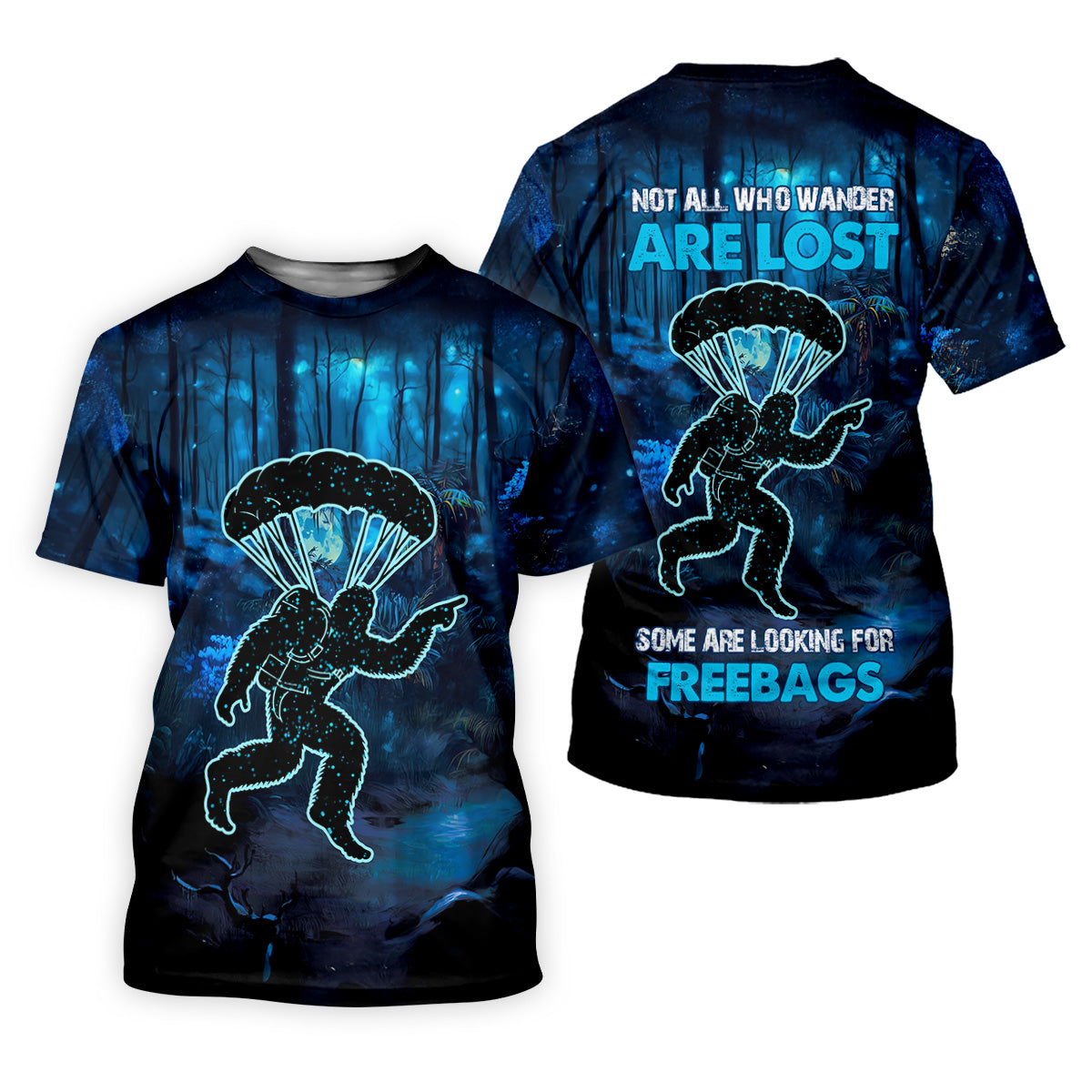 Not All Who Wander Are Lost Some Are Looking For Freebags Funny Bigfoot Skydiving Shirt, Women Skydive Apparel