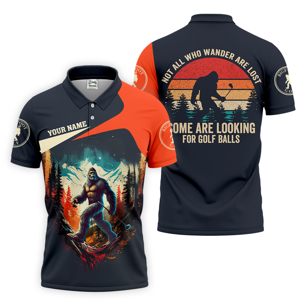 Not All Who Wander Are Lost Some Are Looking For Golf Balls Sasquatch Golf Shirt, Mens Funny Golf Shirts