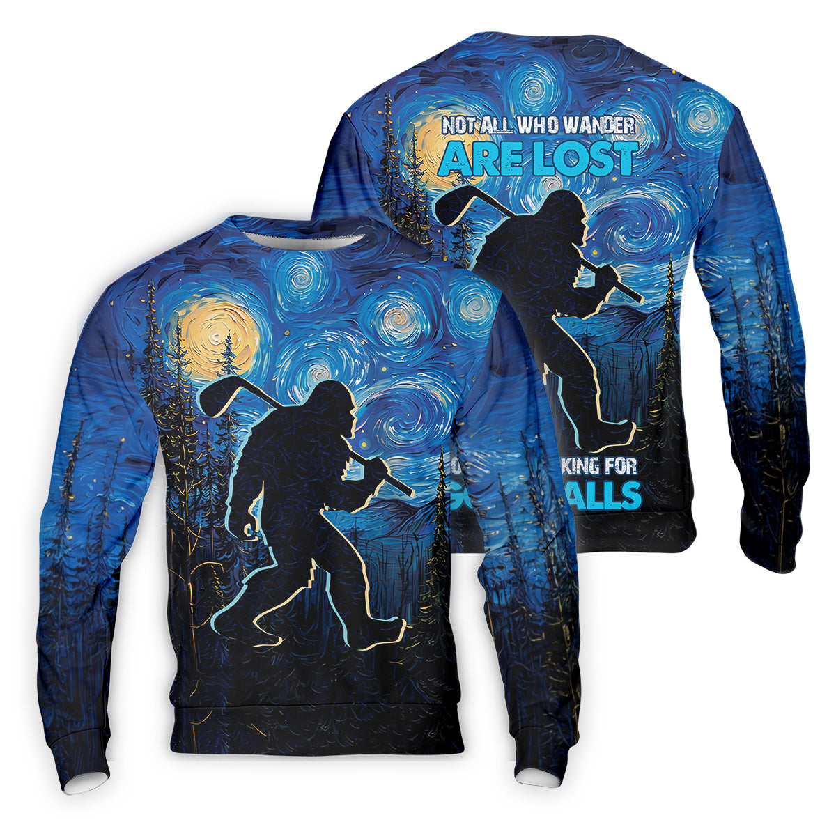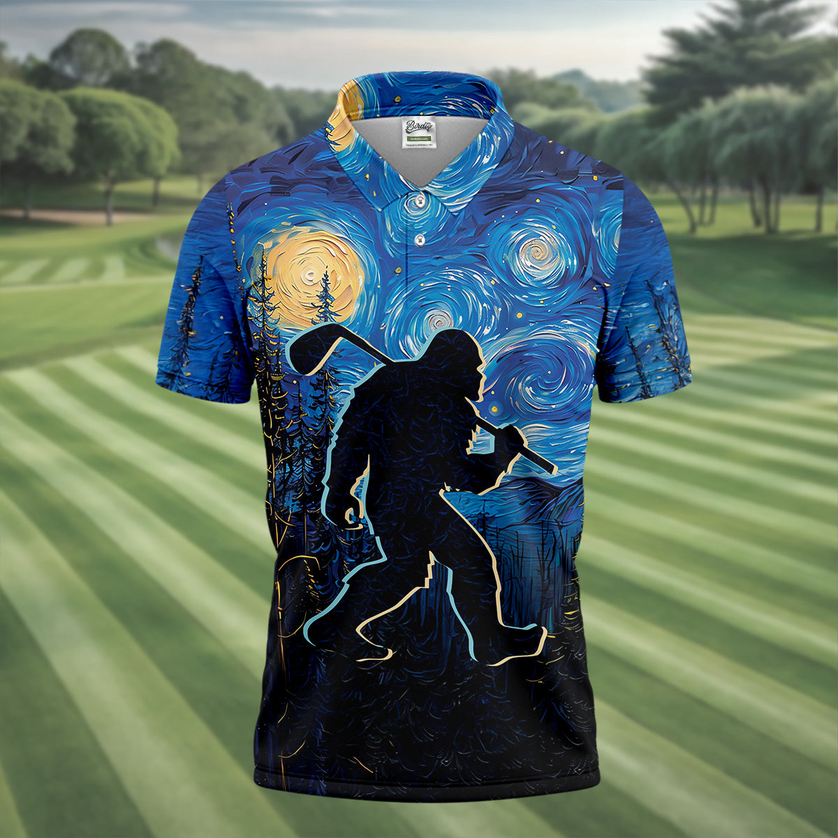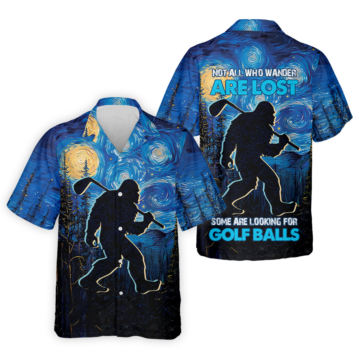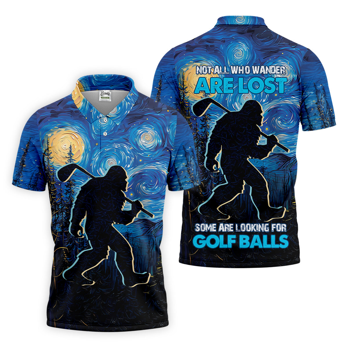 Not All Who Wander Are Lost Starry Night Shirt, Sasquatch Golf Shirt, Golf Tops For Men, Golf Gift For Men