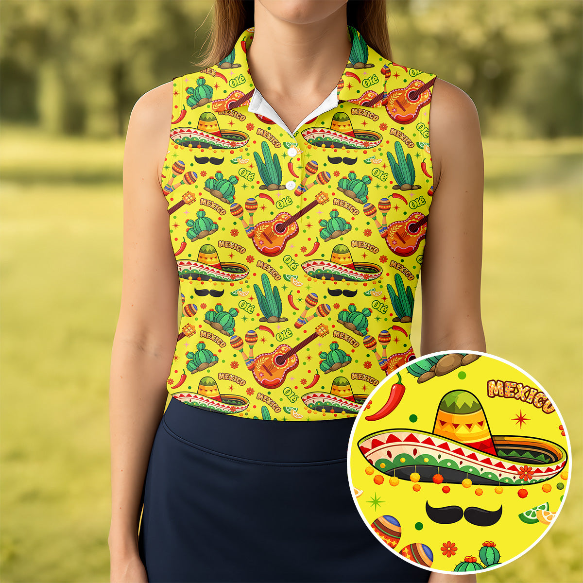 Olé Mexico Mexican Instruments Ladies Golf Tops, Cinco De Mayo Celebration Golf Shirt For Women