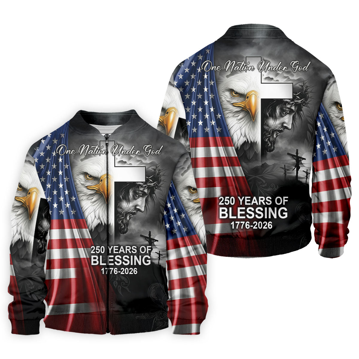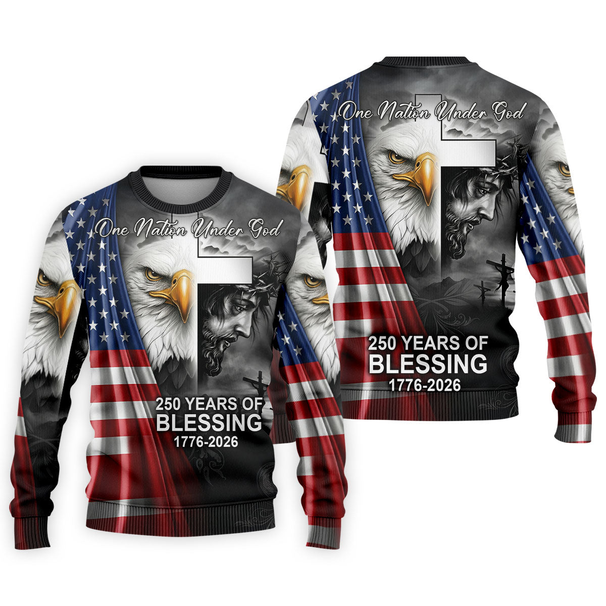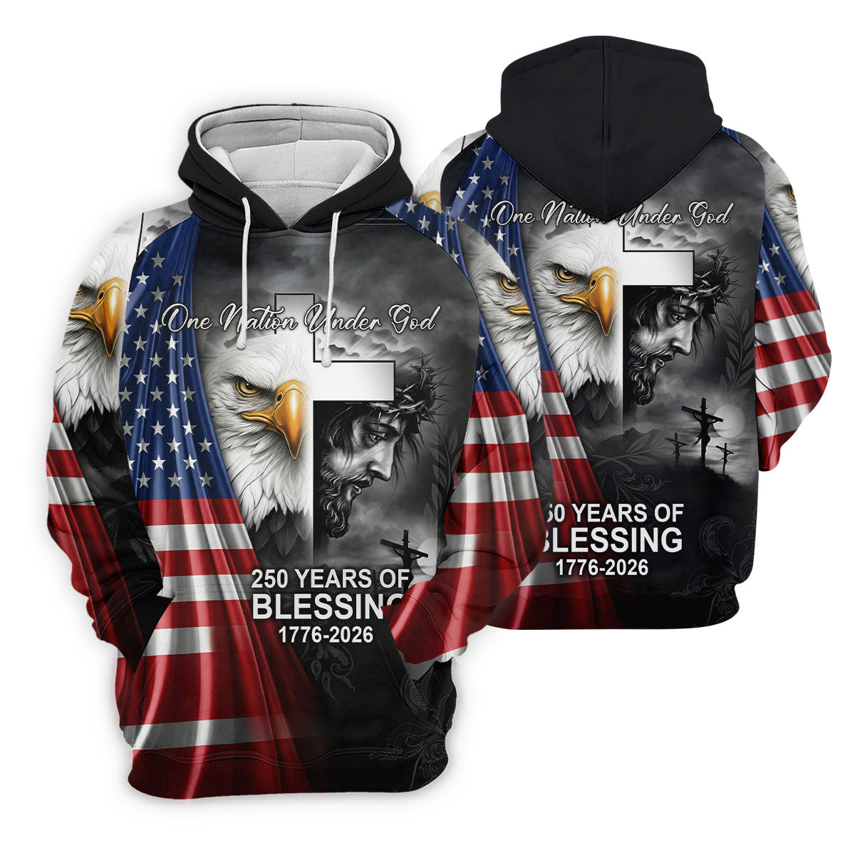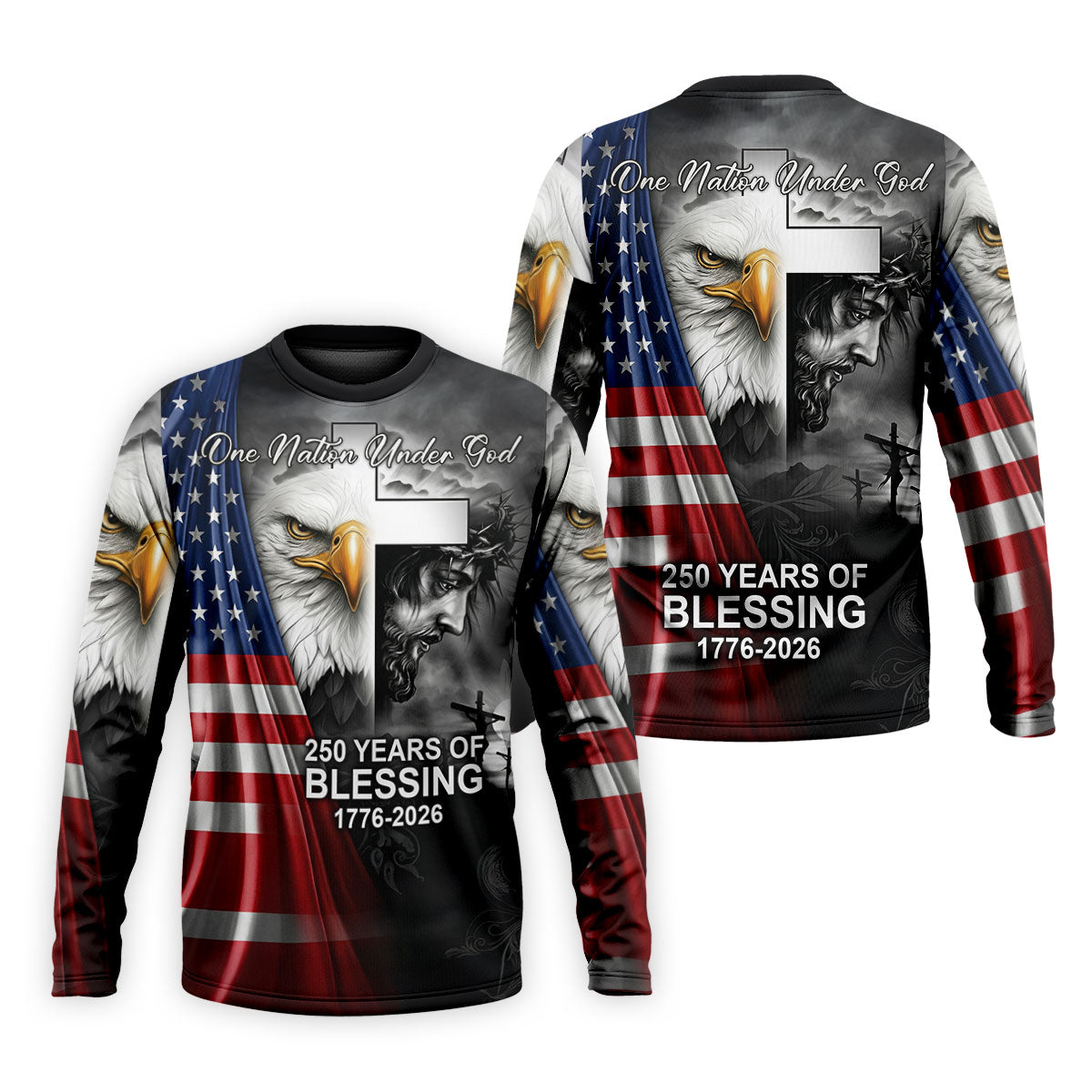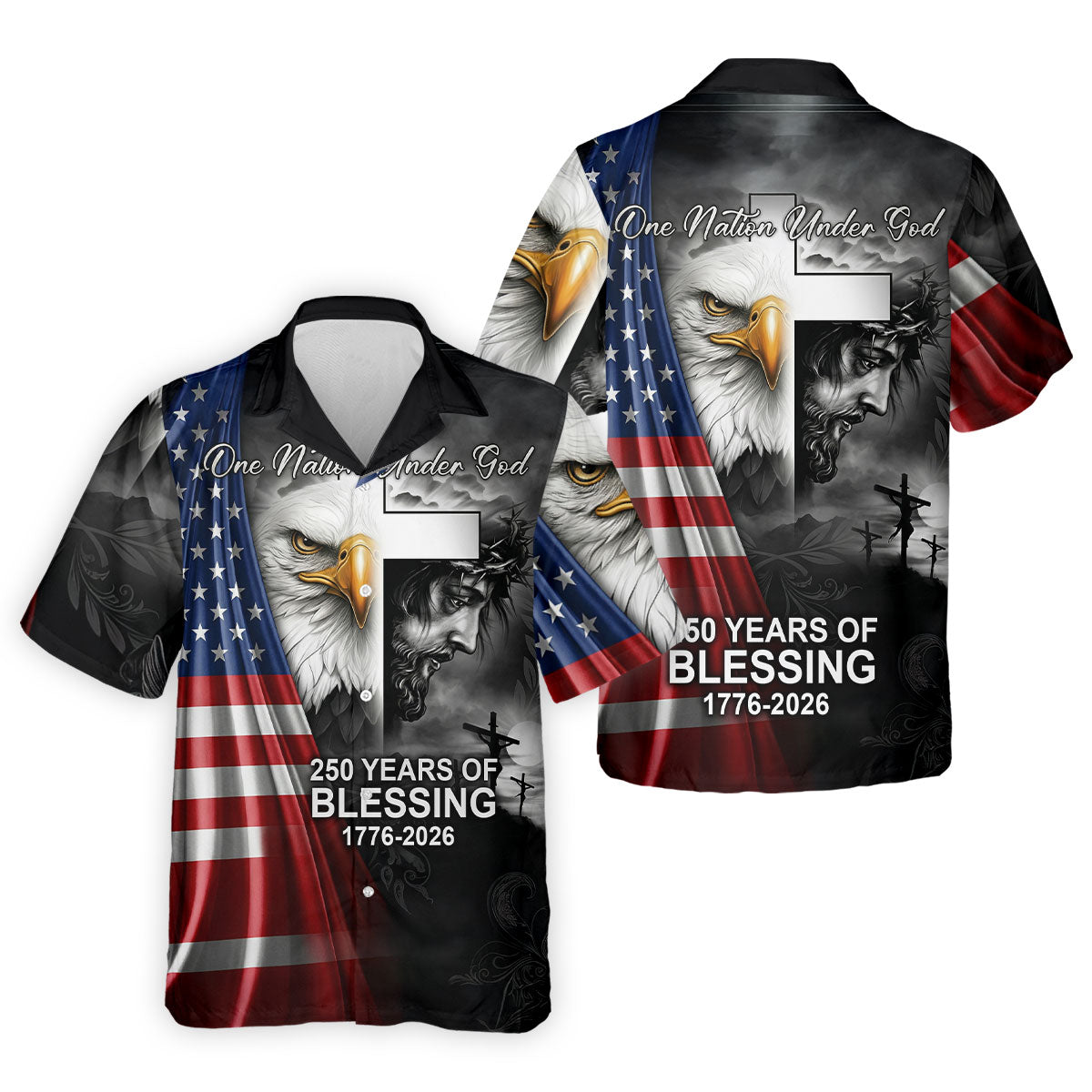 One Nation Under God 250 Years Of Blessing Faith Cross US Flag Golf Shirt, 4th Of July Golf Shirts For Men