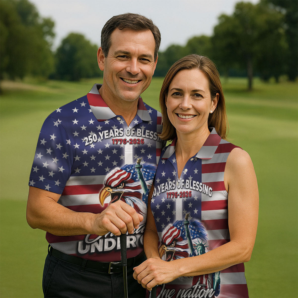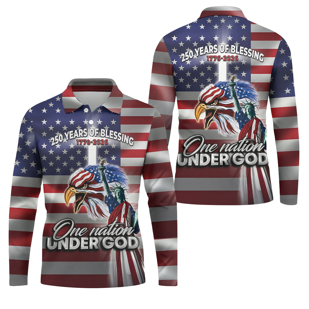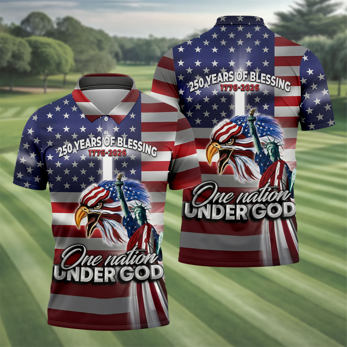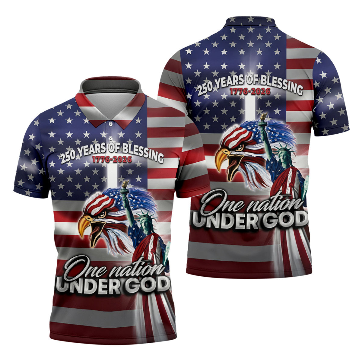 One Nation Under God 250 Years Of Blessing US Flag Golf Shirt, 4th Of July Golf Shirts For Men