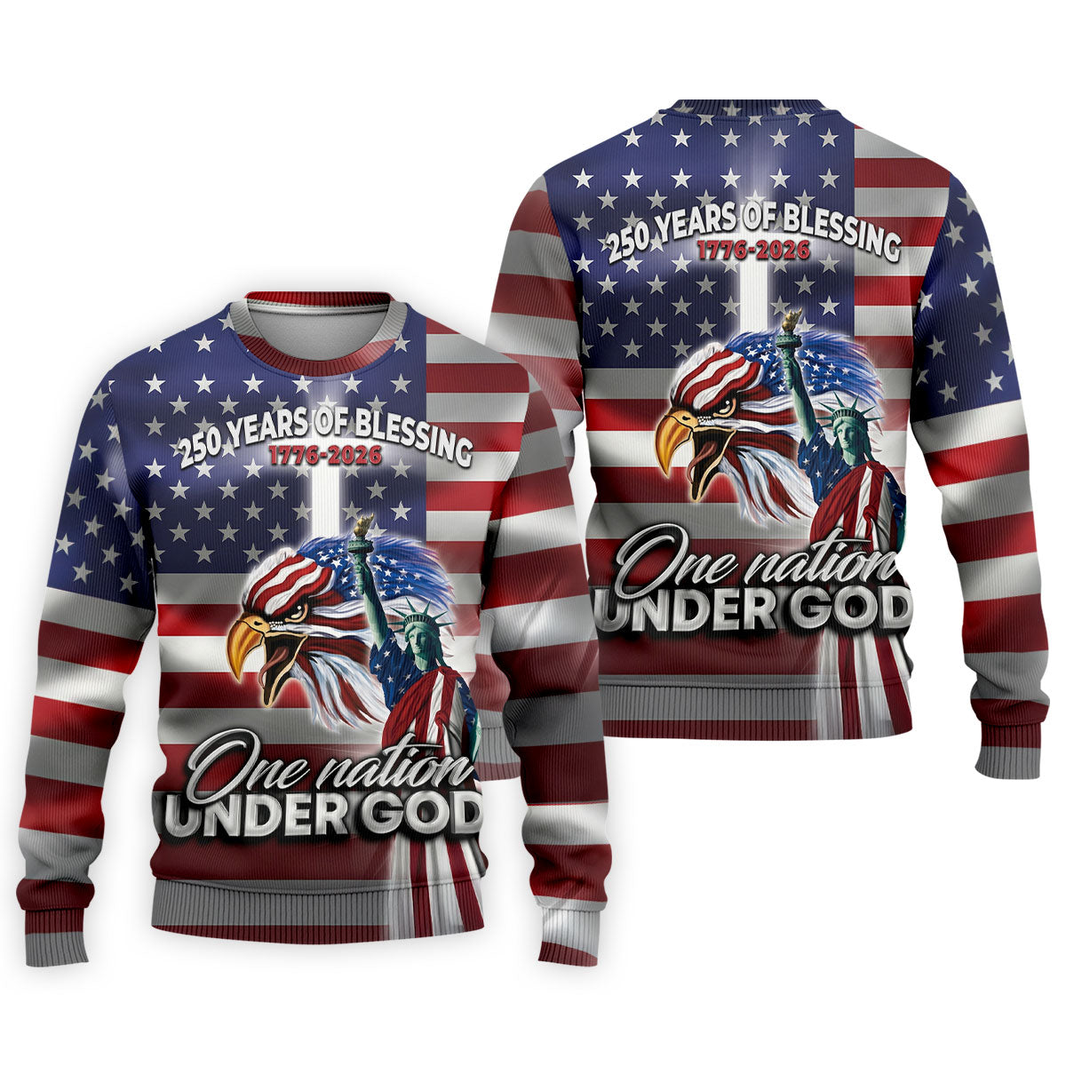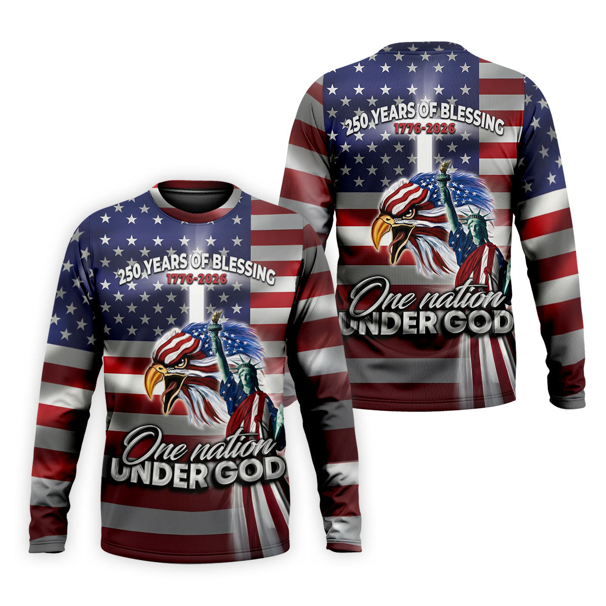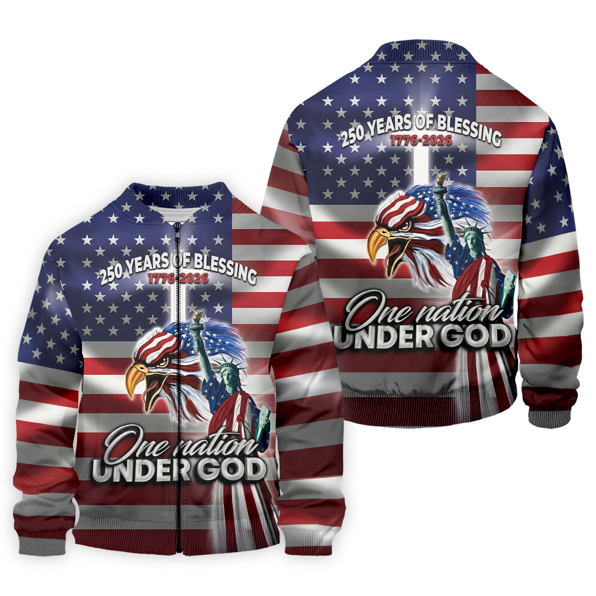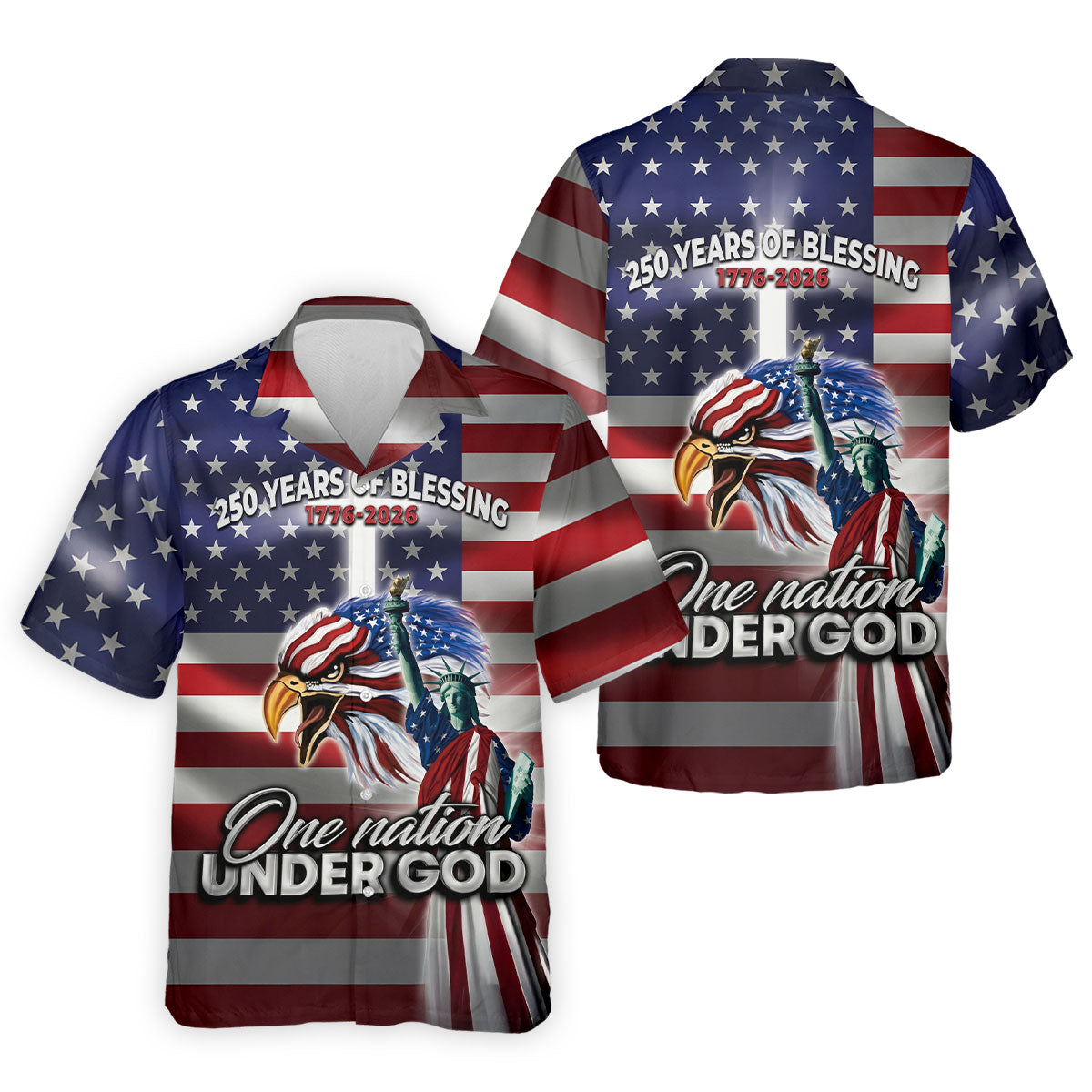 One Nation Under God 250 Years Of Blessing US Flag Golf Shirt, 4th Of July Golf Shirts For Men