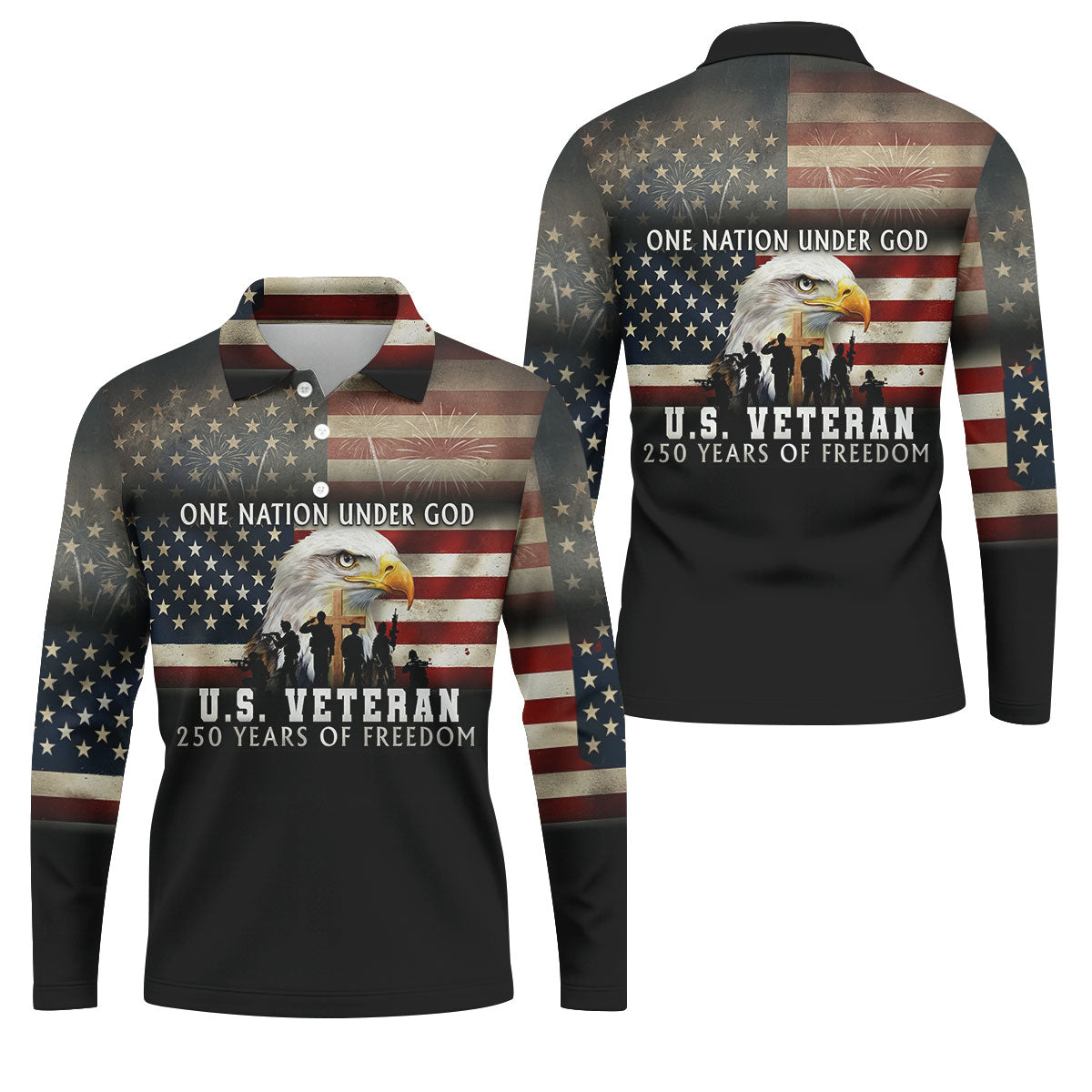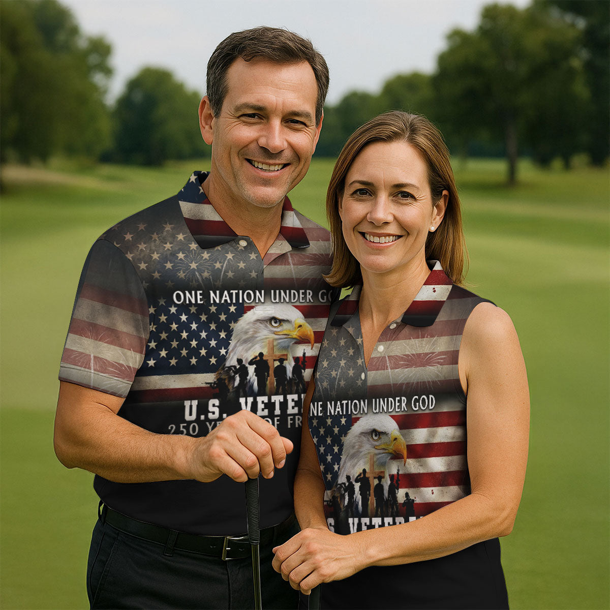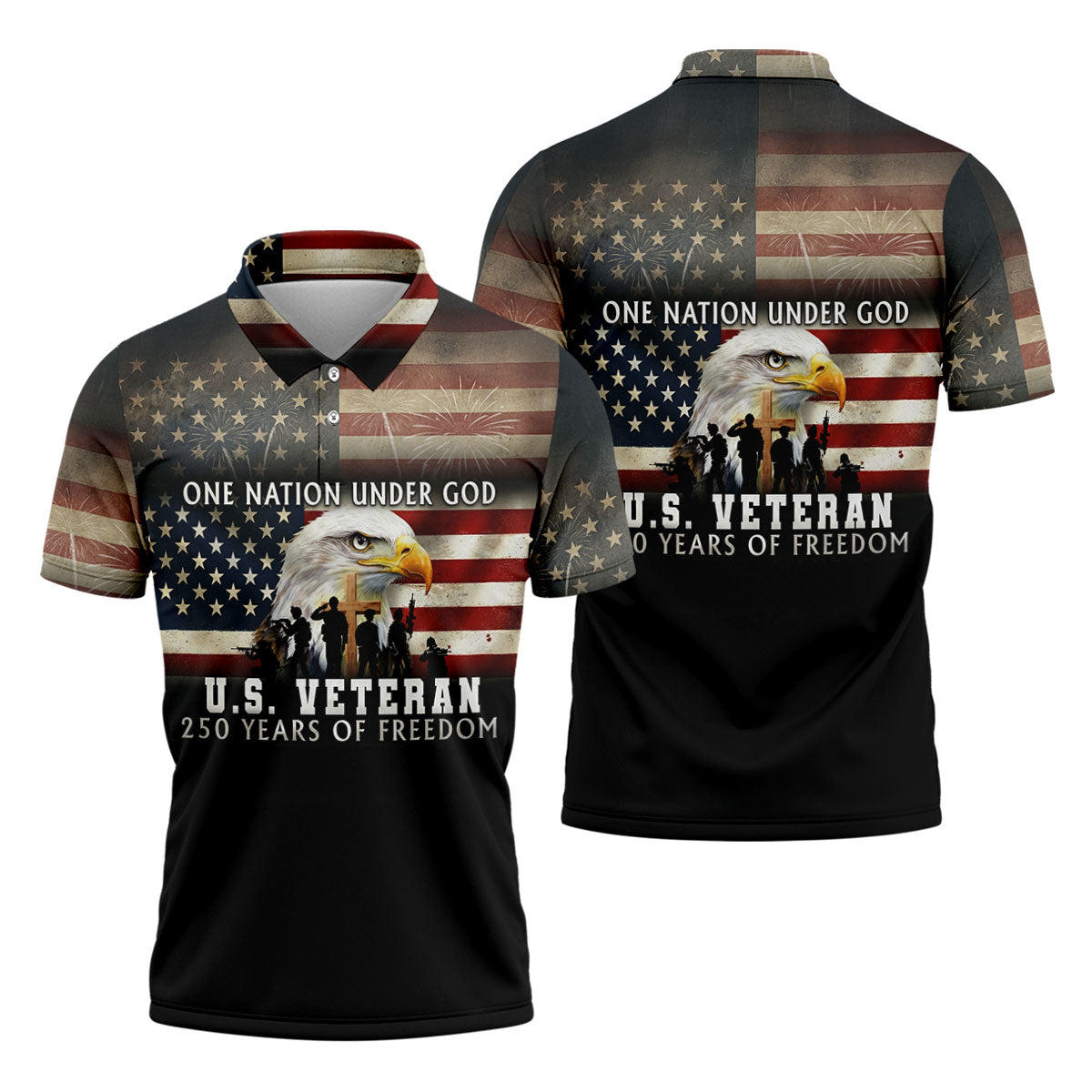 One Nation Under God US Veteran 250 Years Of Freedom Patriotic Golf Shirt, Golf Shirts For Men