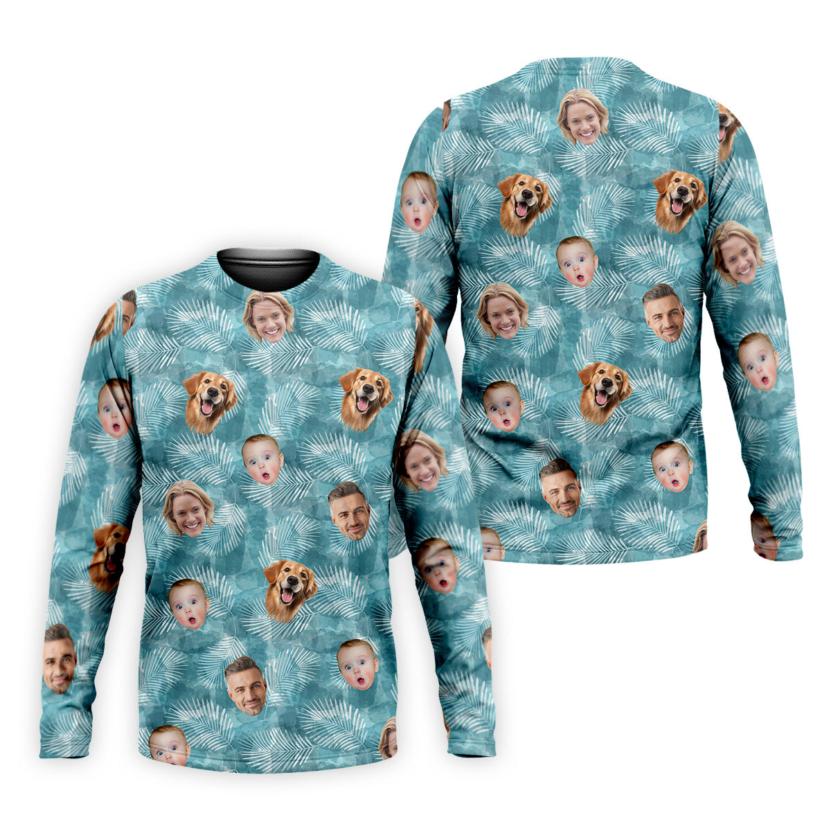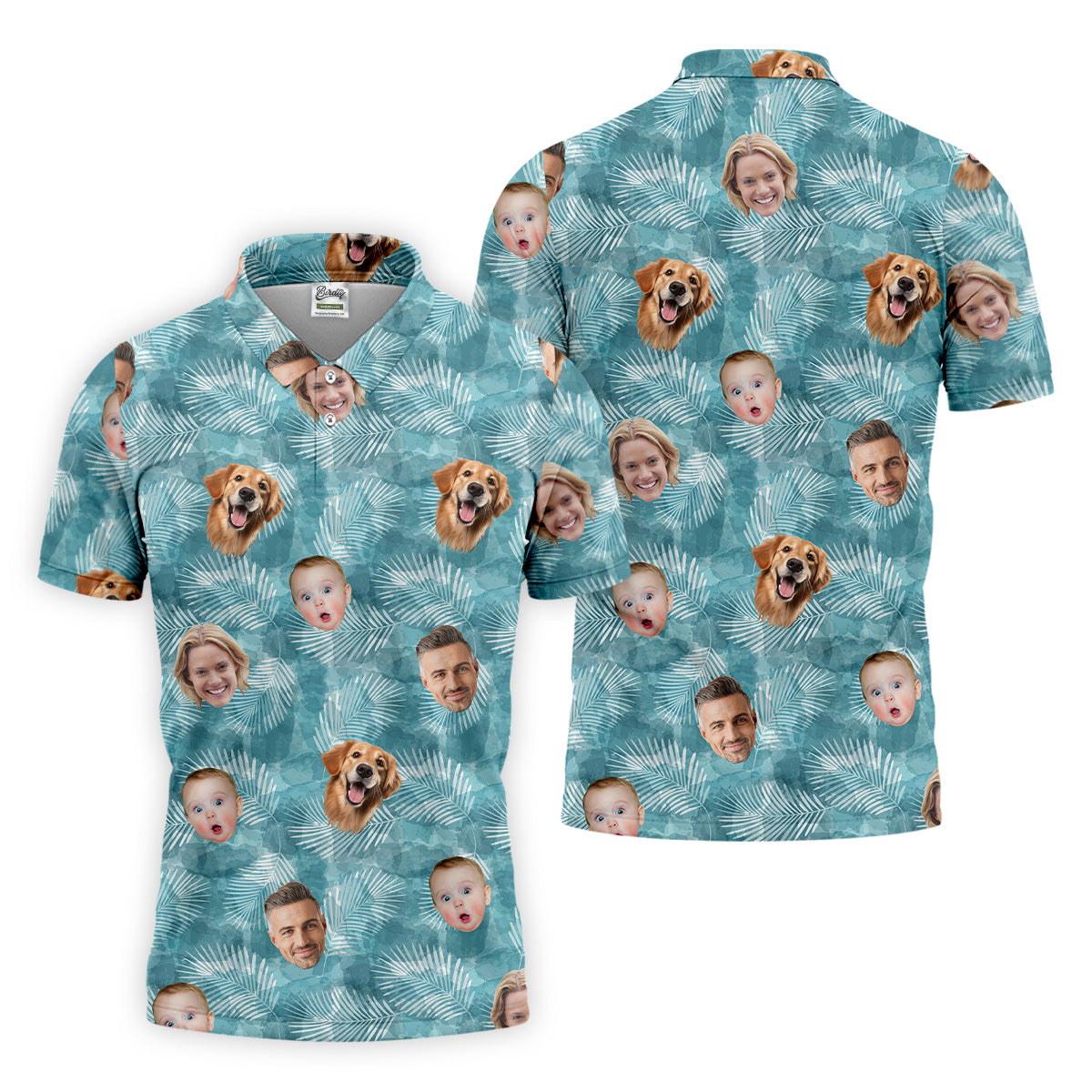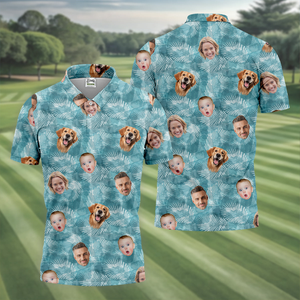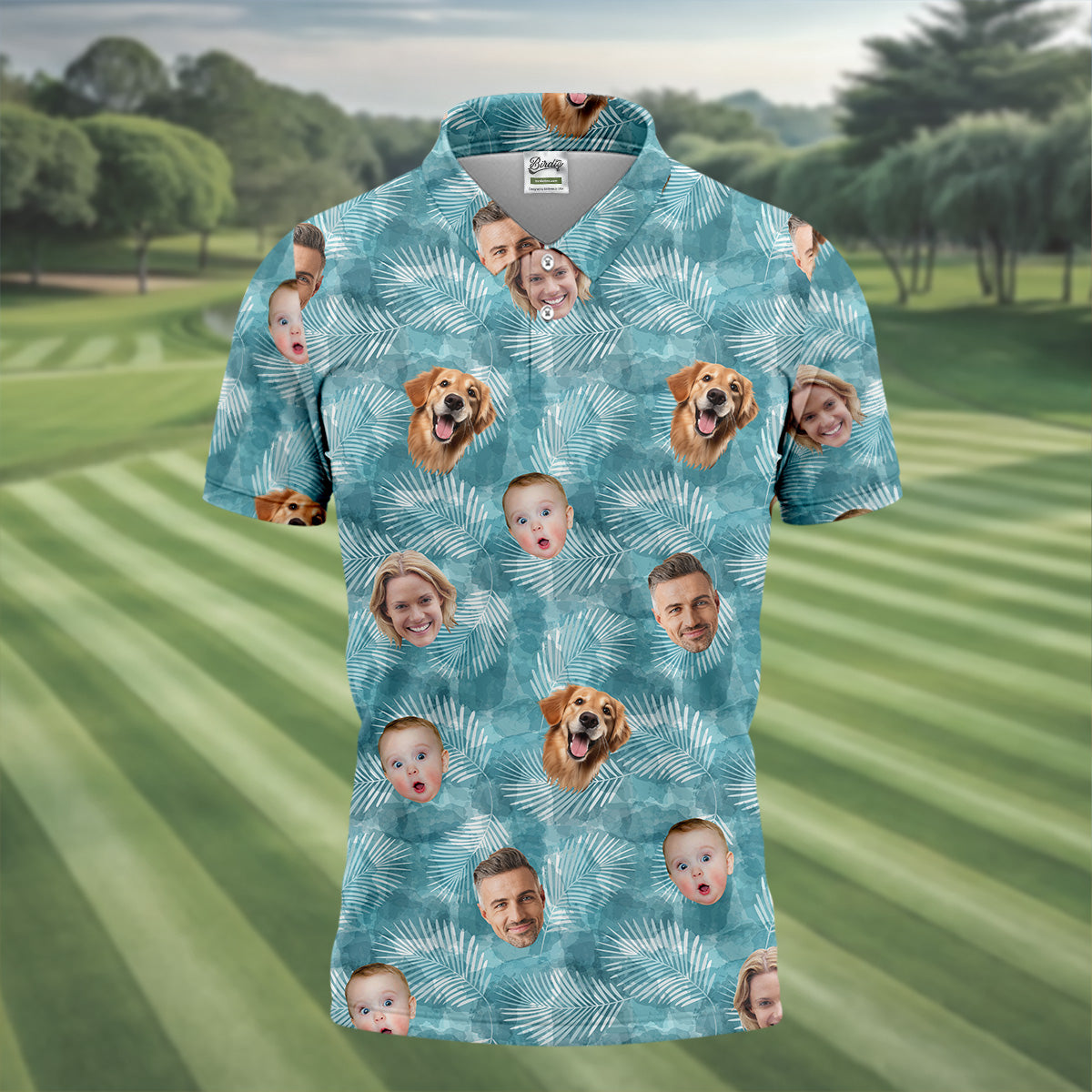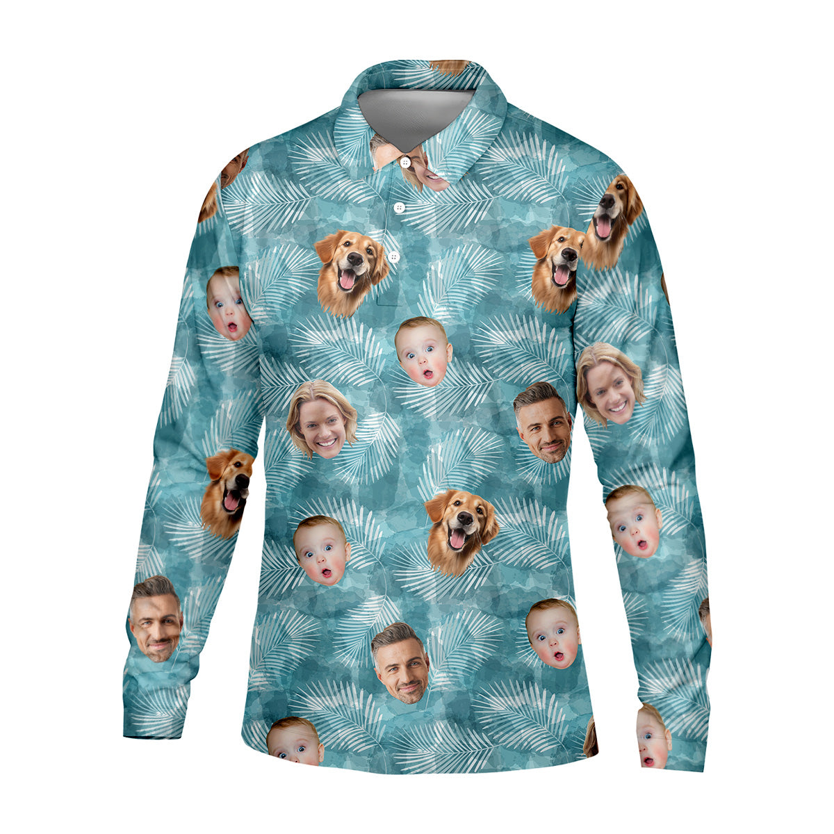 Palm Leaf Pattern, Hawaiian Golf Shirts, Custom Face Shirt, Men's Long Seeve Golf Shirts, Best Gifts For Men Golfers