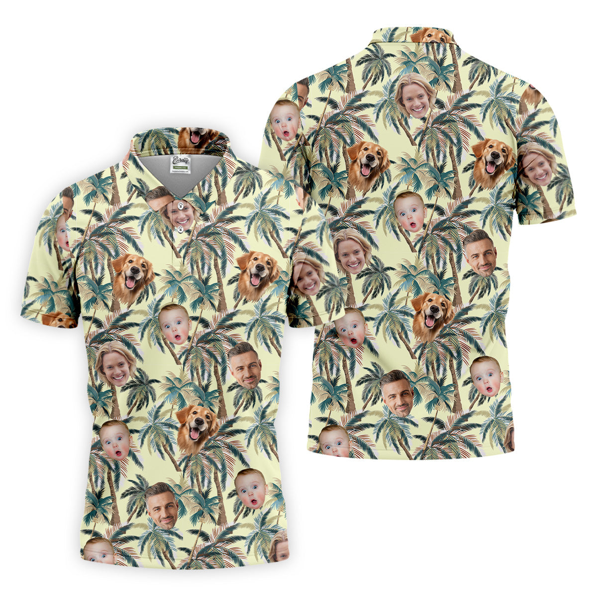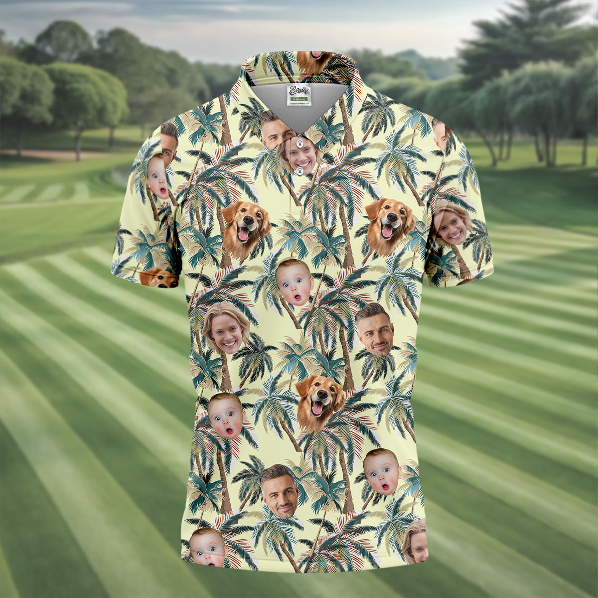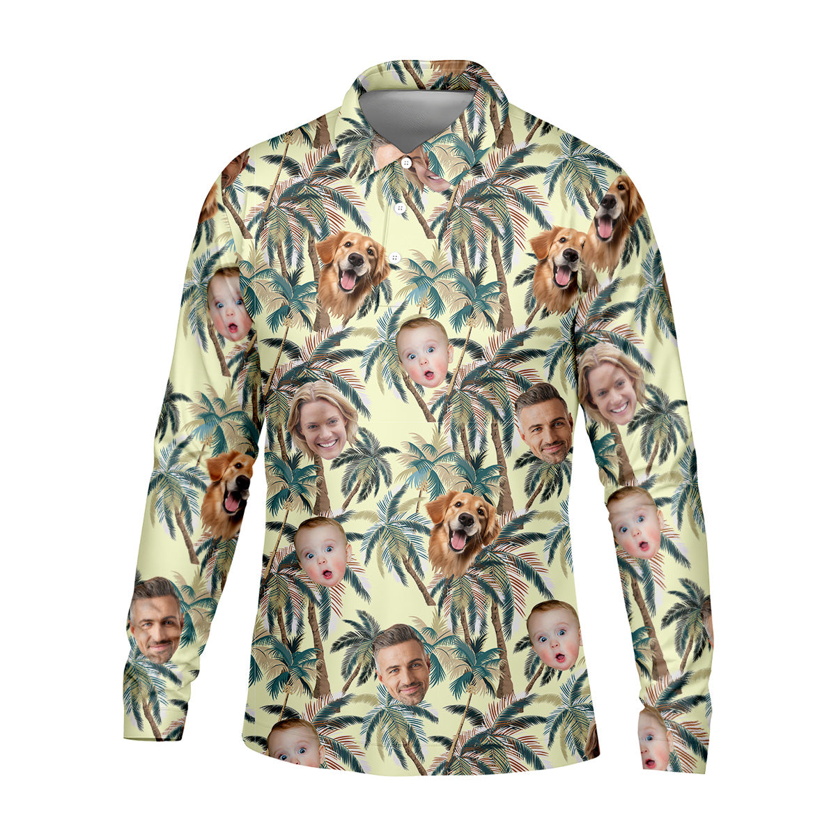 Palm Tree Pattern, Hawaiian Golf Shirts, Custom Face Shirt, Men's Long Seeve Golf Shirts, Golf Gifts For Men