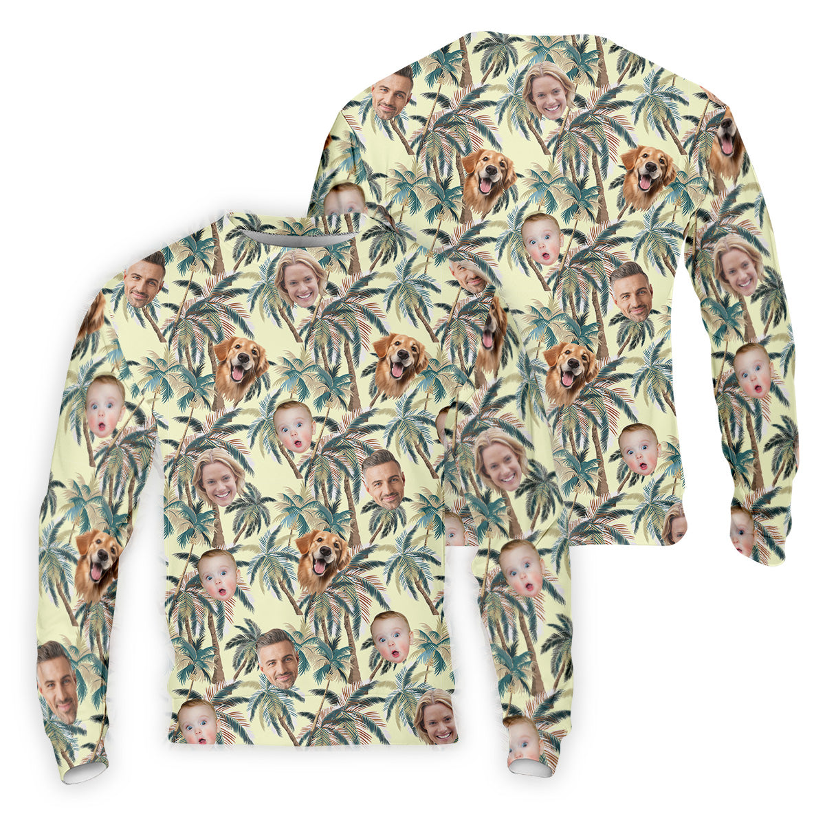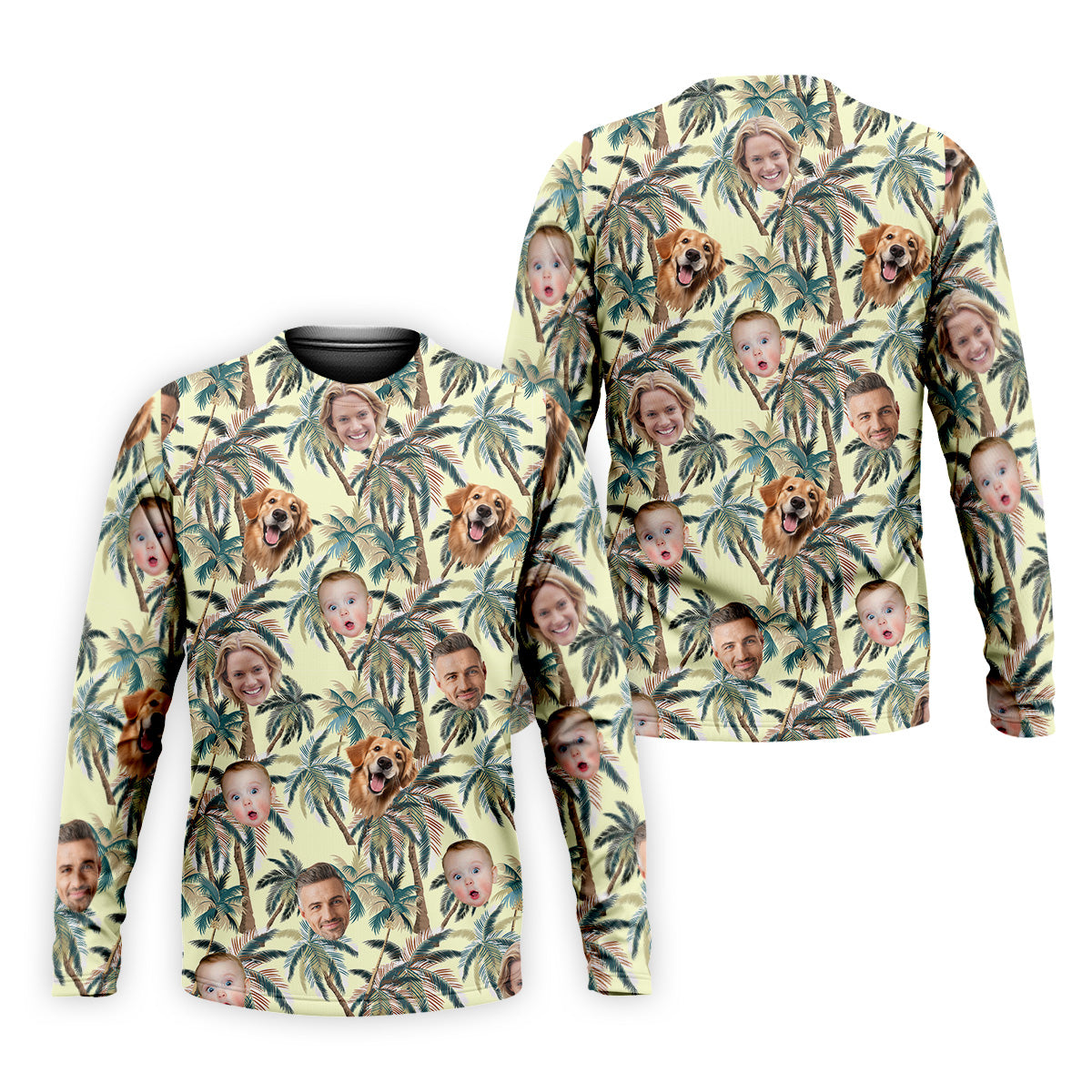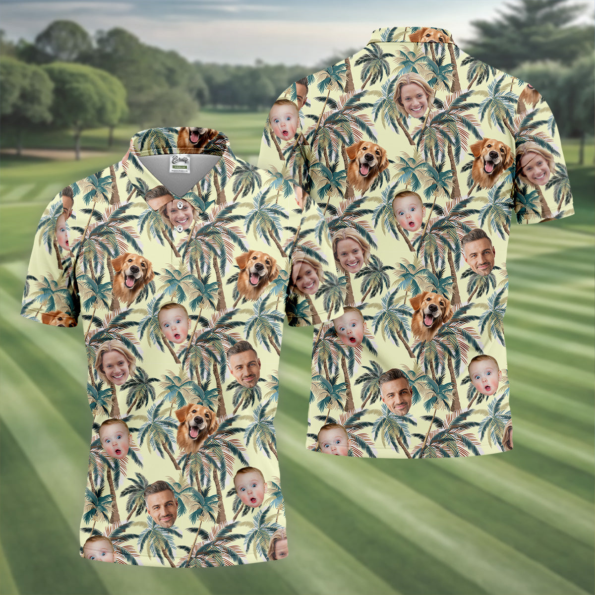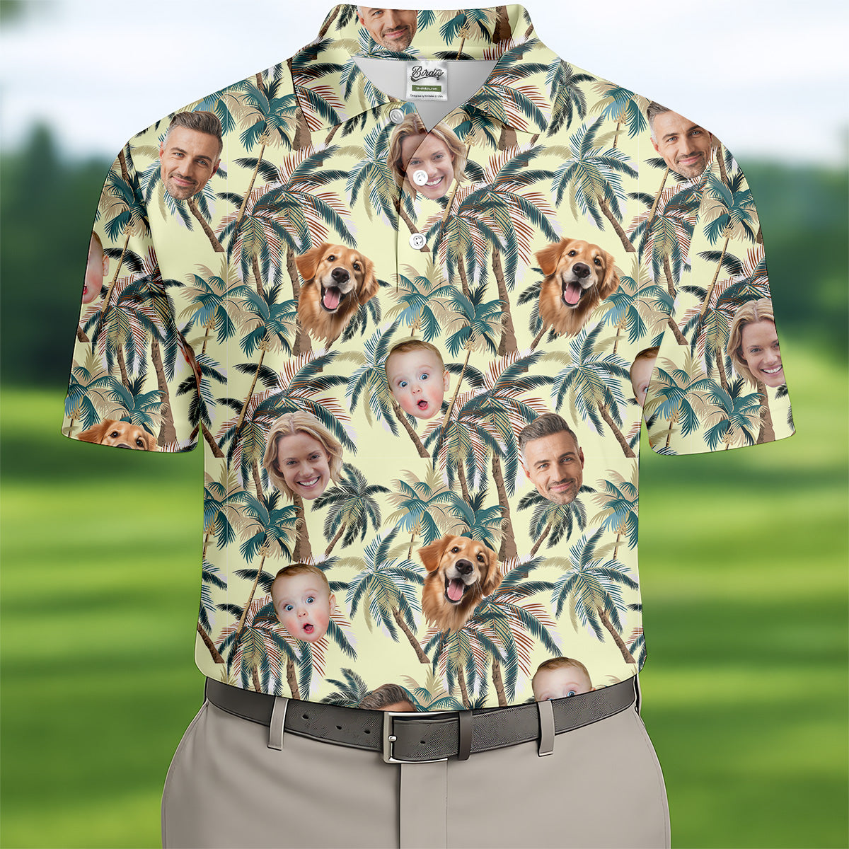Palm Tree Pattern, Hawaiian Golf Shirts, Custom Face Shirt, Men's Long Seeve Golf Shirts, Golf Gifts For Men