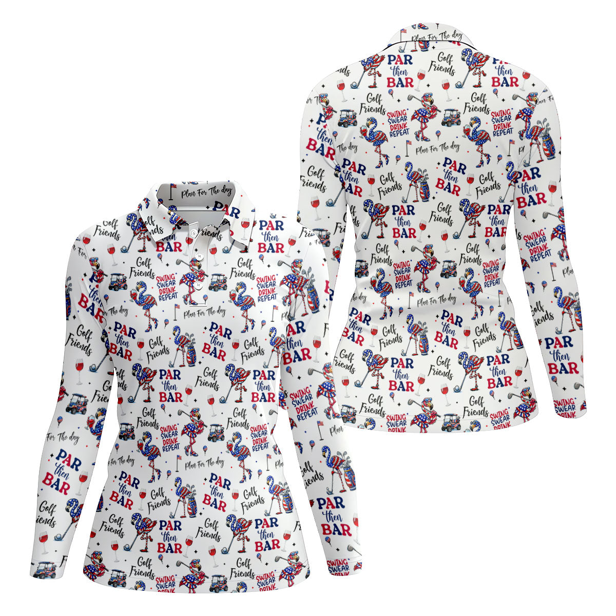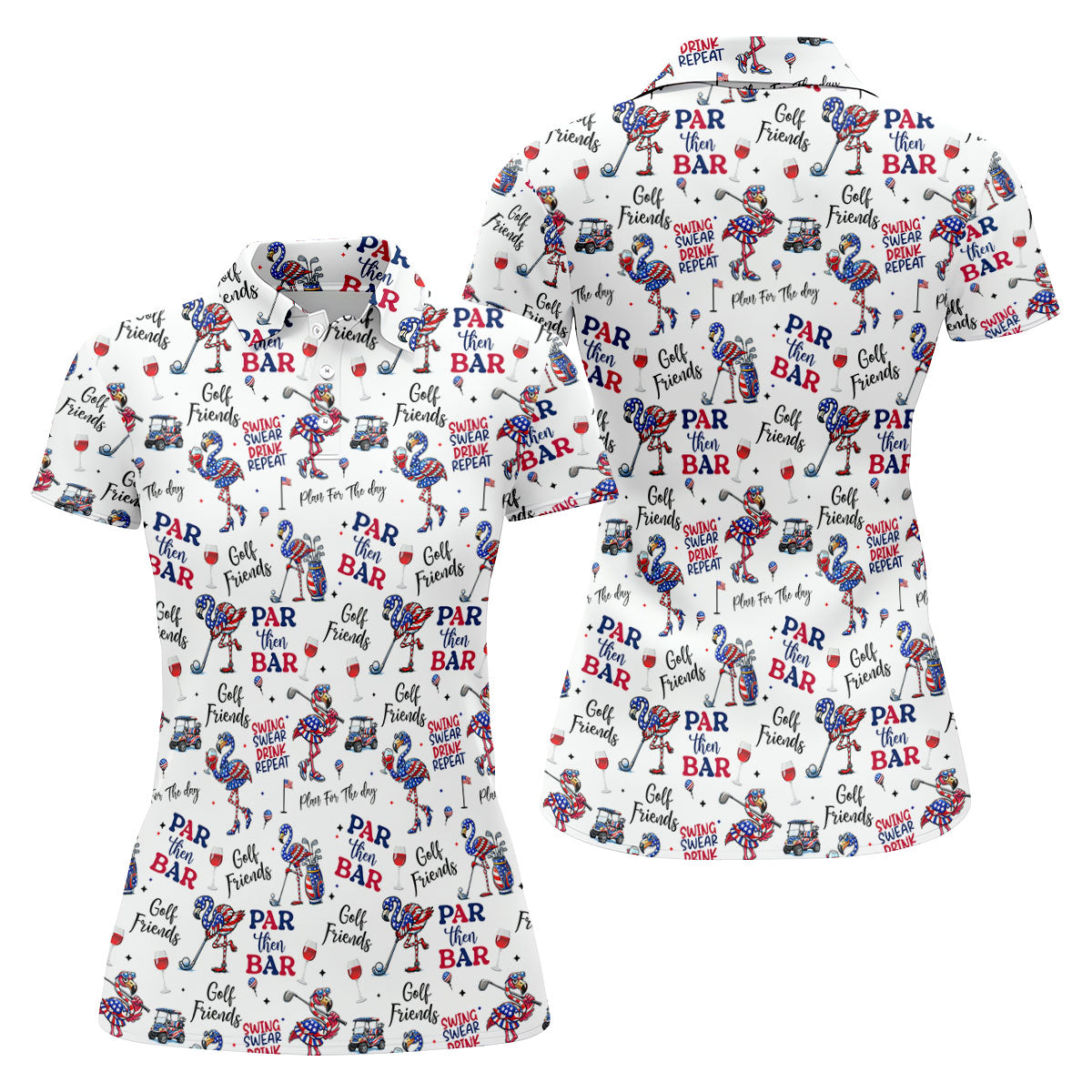 Par Then Bar Funny Flamingo Patriot Golf Shirt, Vintage Golf Shirt, 250th Anniversary Women's Golf Tops