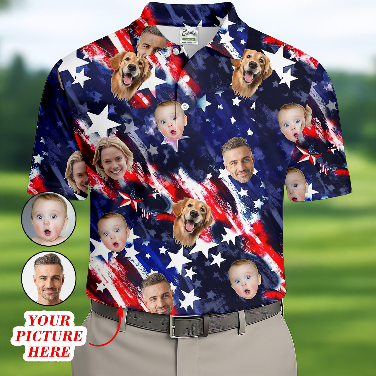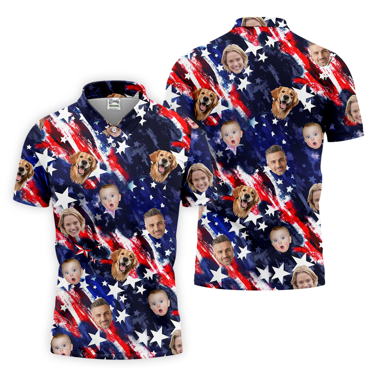 Patriotic 4th Of July Custom Face Shirts, Men's Golf Polo Shirt, Patriotic Golf Shirt, USA Golf Shirt