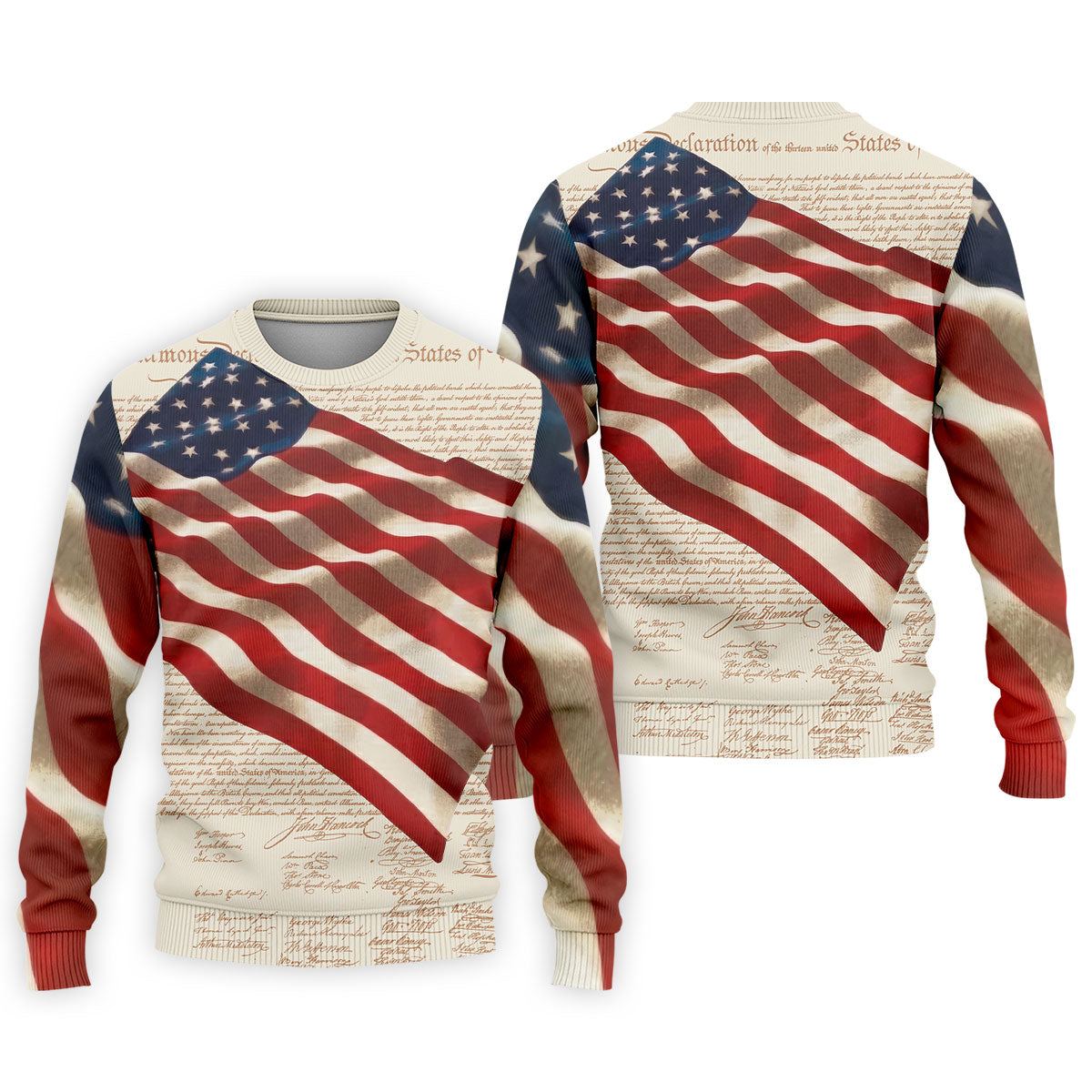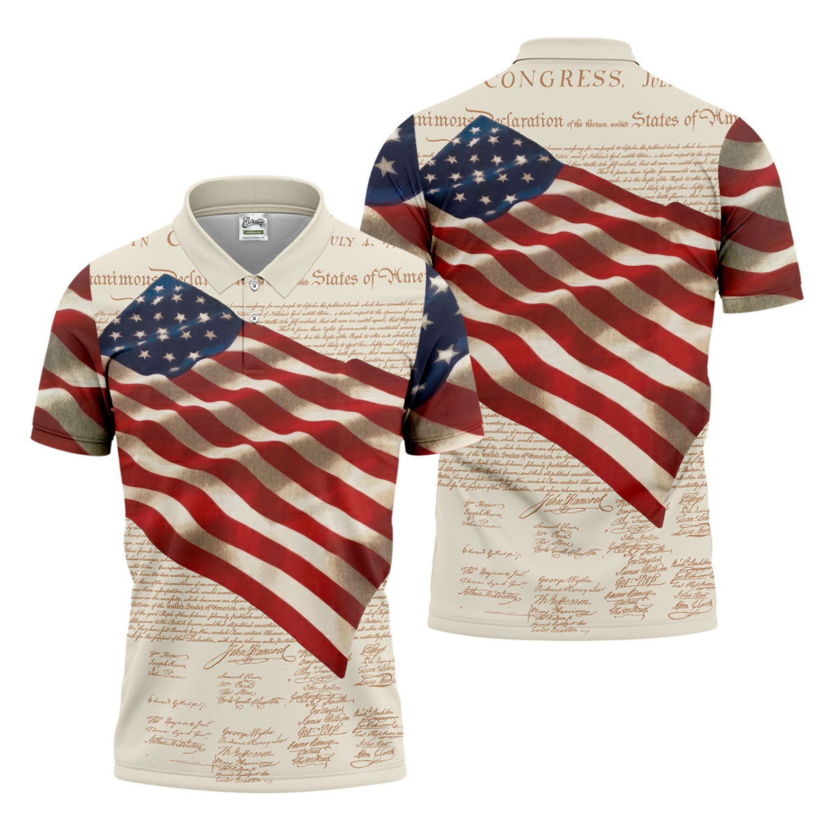 Patriotic American Flag Declaration Of Independence Beige Golf Shirt, 250th Anniversary Polo Shirts For Men