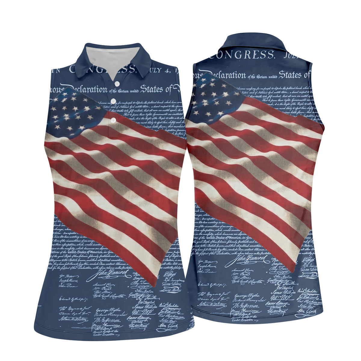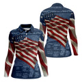 Patriotic American Flag Declaration Of Independence Navy Golf Shirt, 250th Anniversary Ladies Golf Shirts