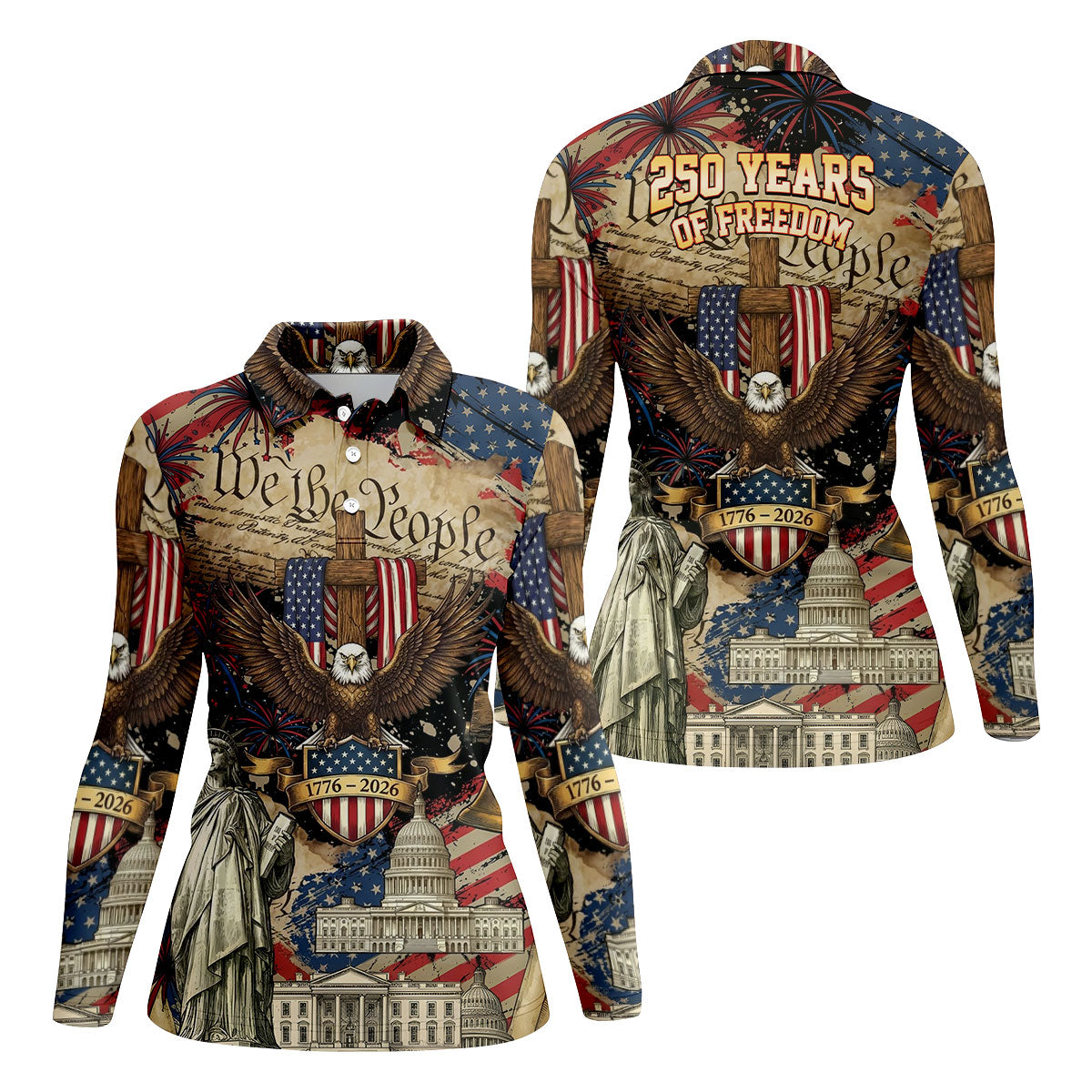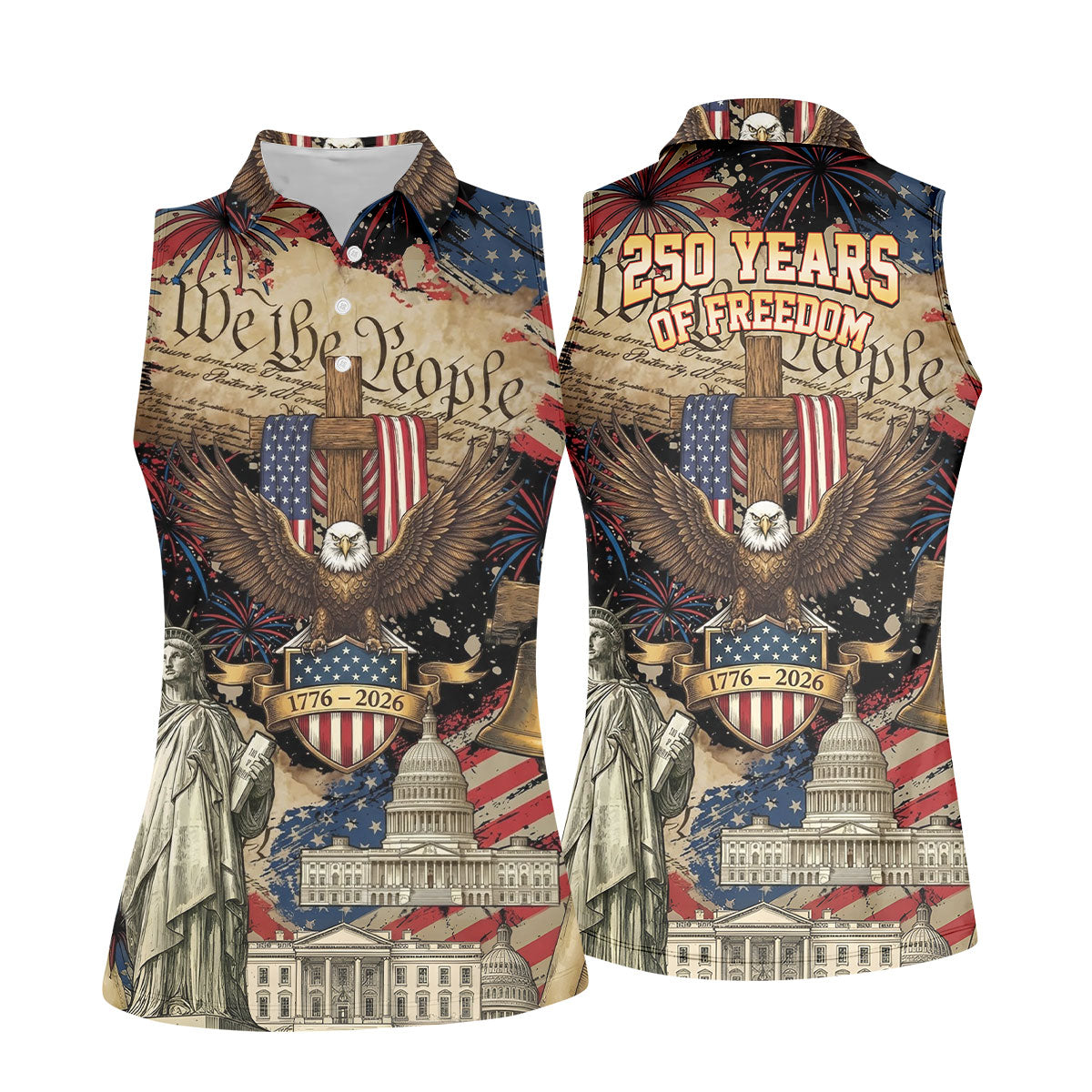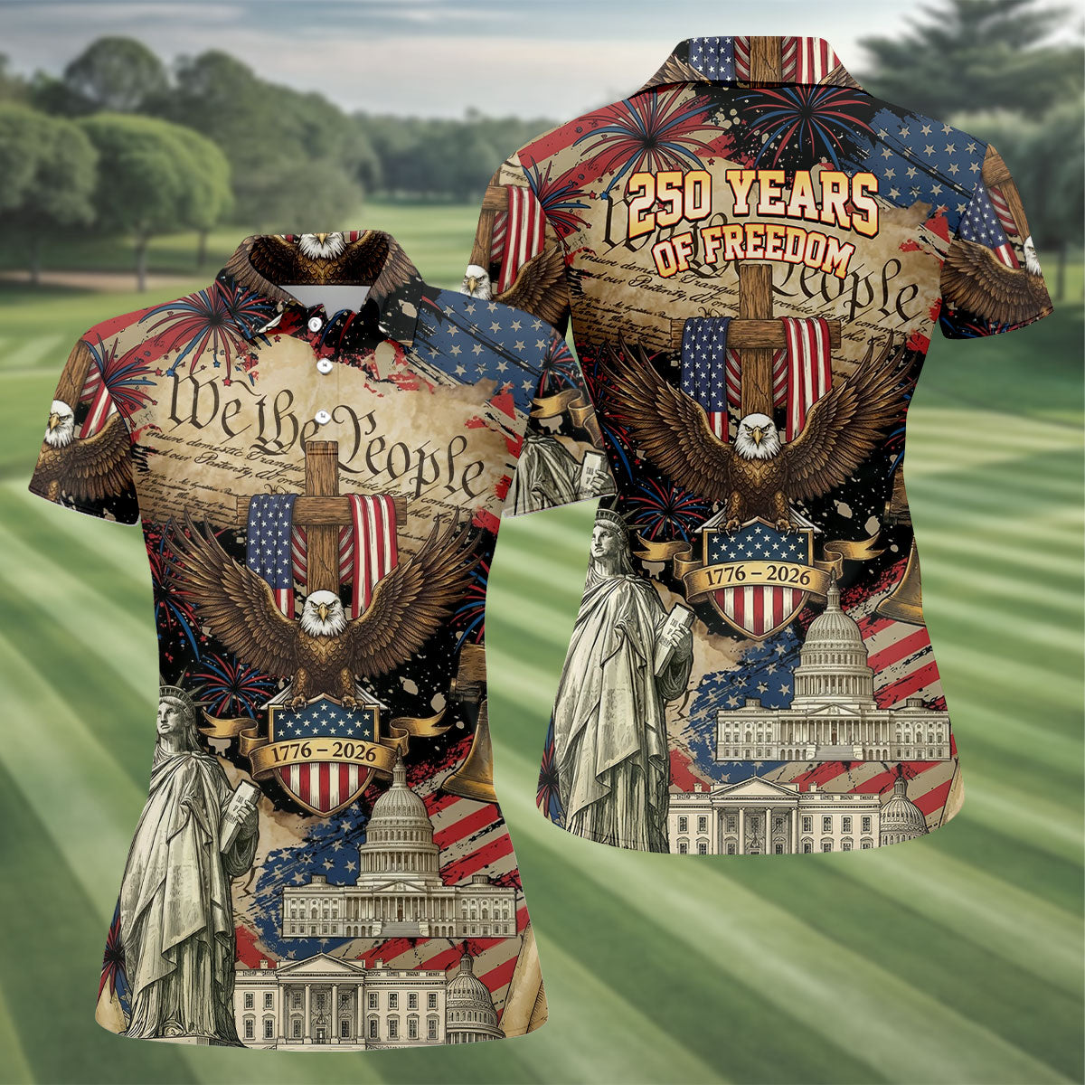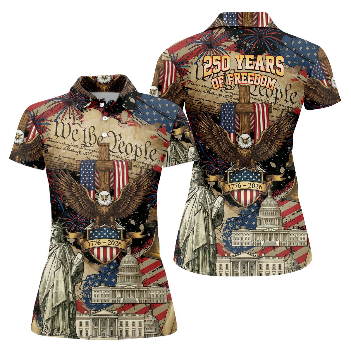 Patriotic Eagle Statue Of Liberty We The People 250 Years Ladies Golf Tops, 4th Of July Golf Shirt For Women