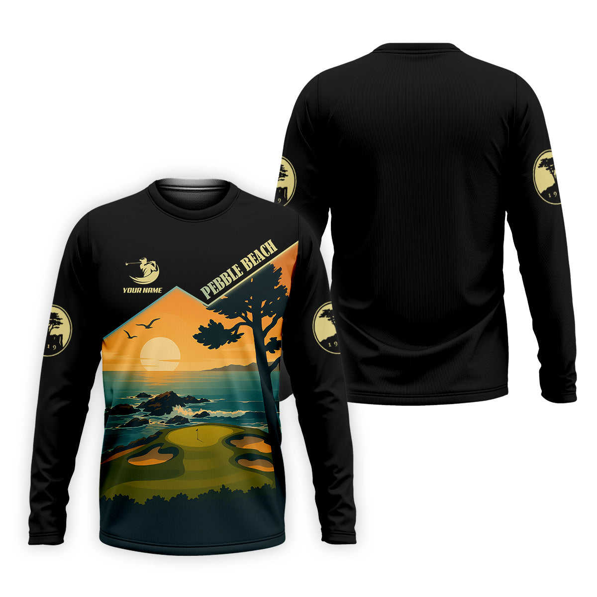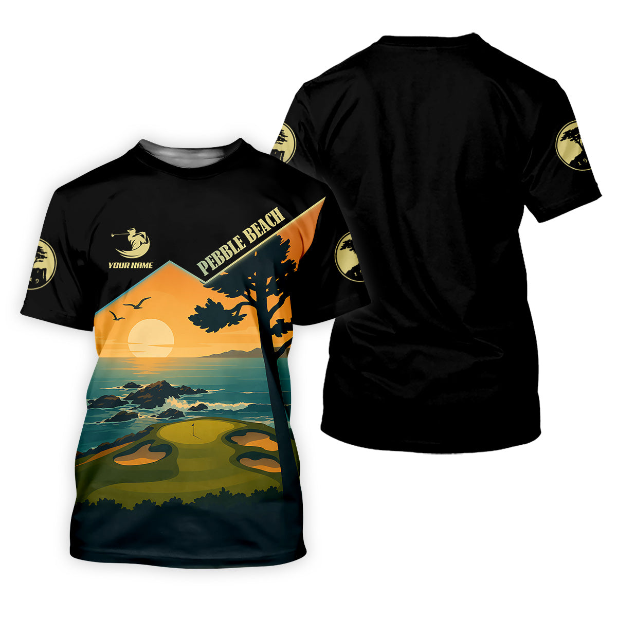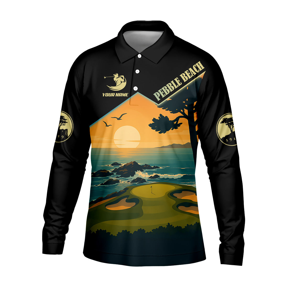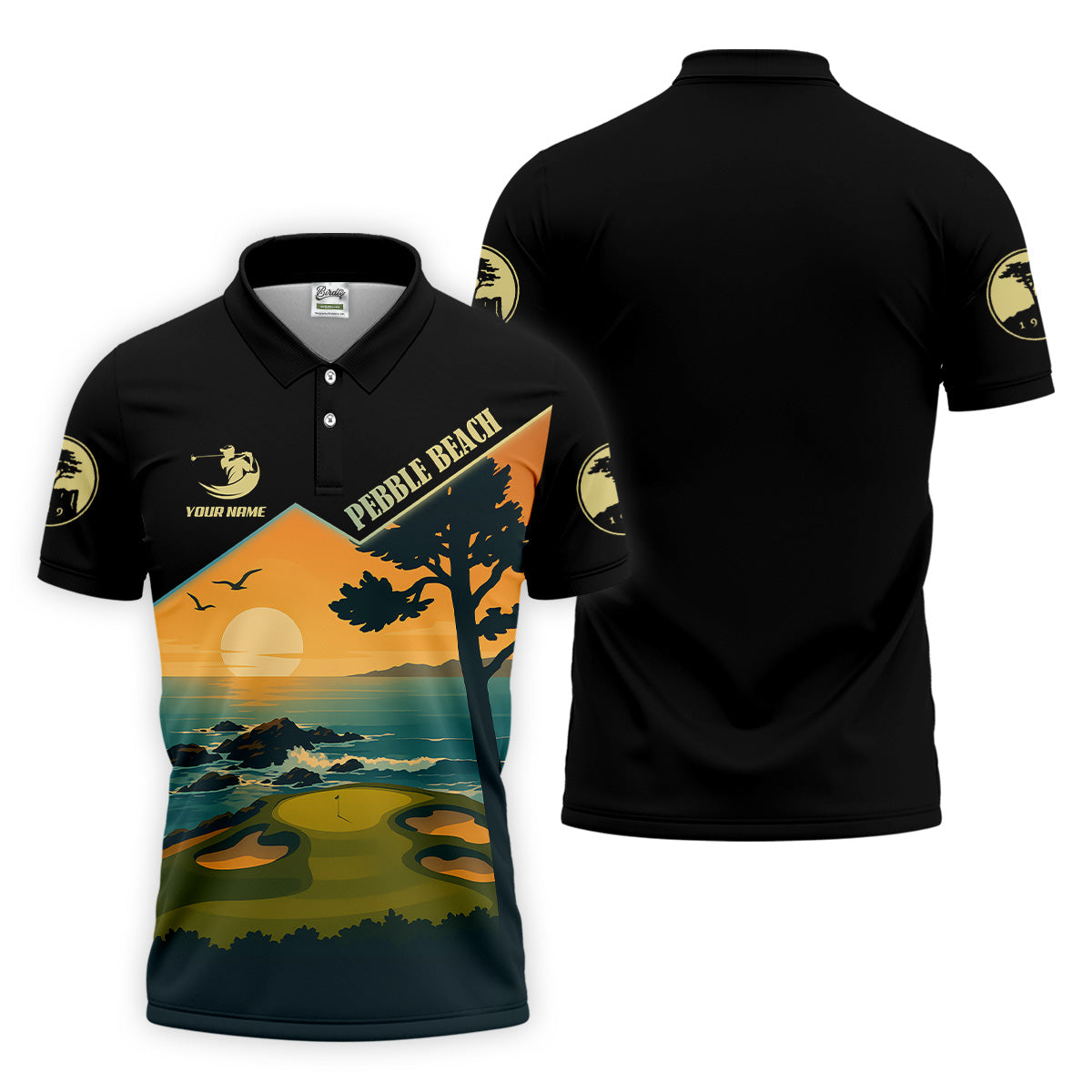 Pebble Beach Sunset Golf Tops For Men, Custom Golf Polos, Golf Polo Shirt, Golf Gift For Men