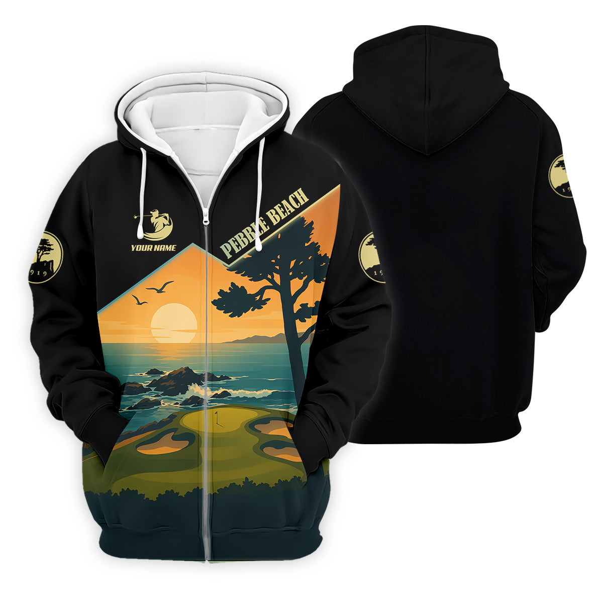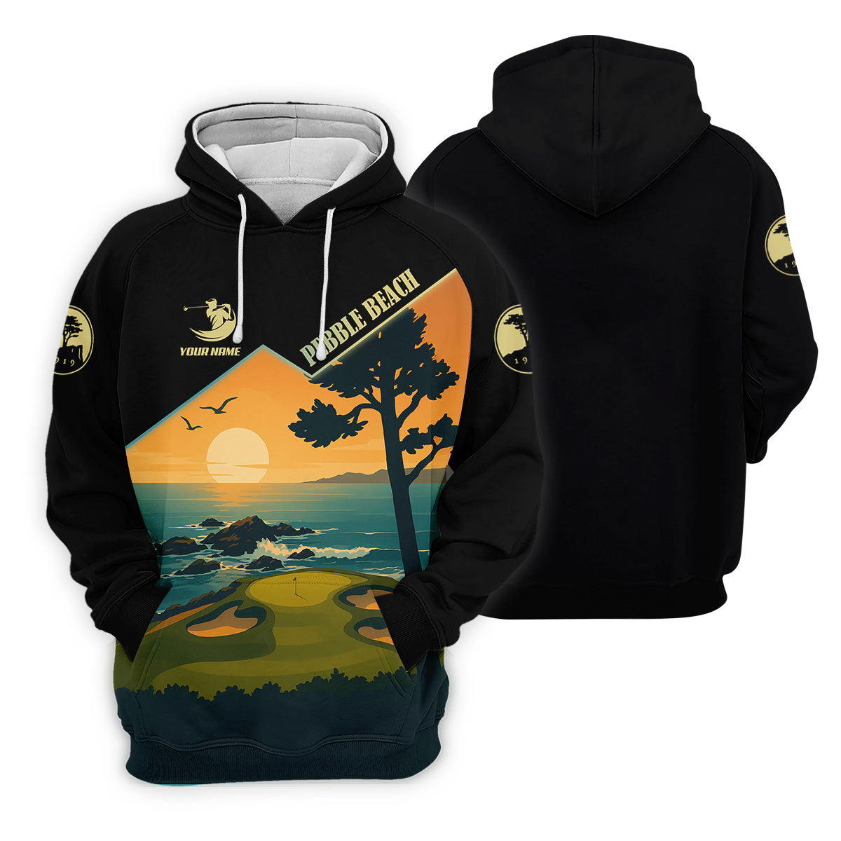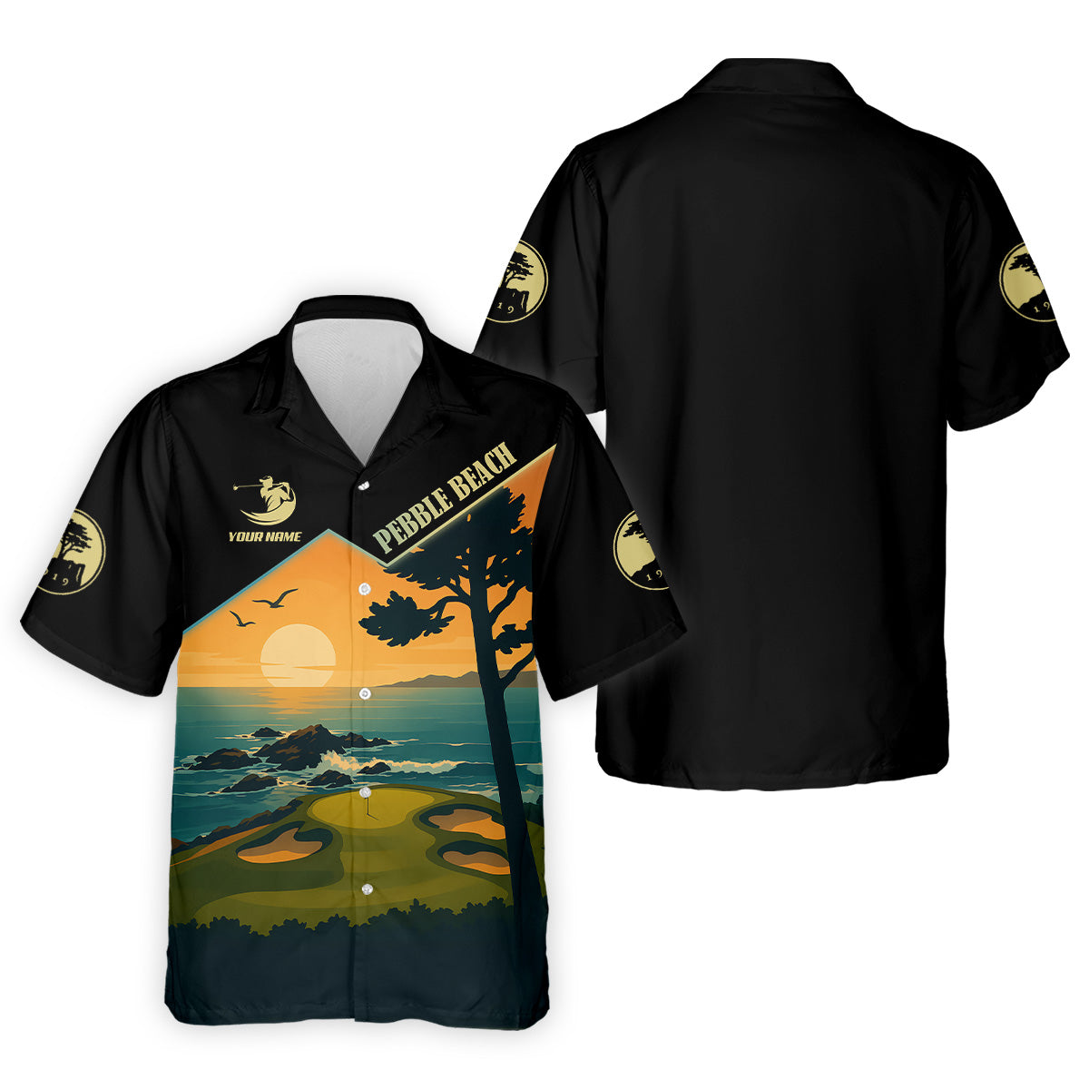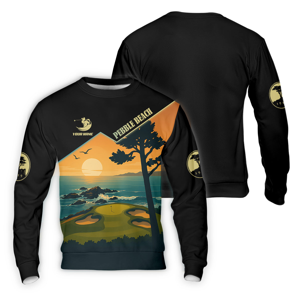 Pebble Beach Sunset Golf Tops For Men, Custom Golf Polos, Golf Polo Shirt, Golf Gift For Men
