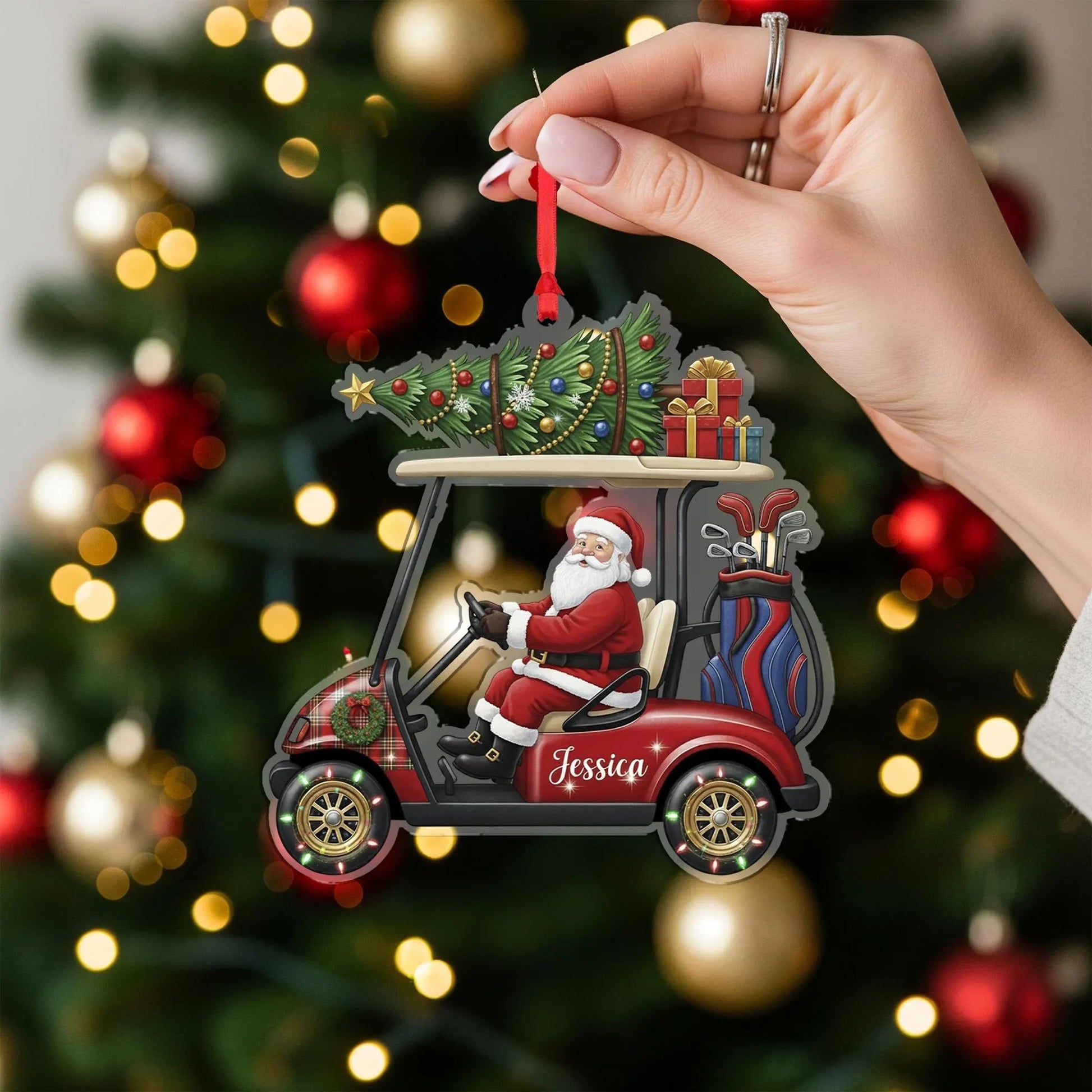Personalized Santa In Golf Cart Ornament, Acrylic Ornament, Christmas Tree Ornaments, Gift For Golfer