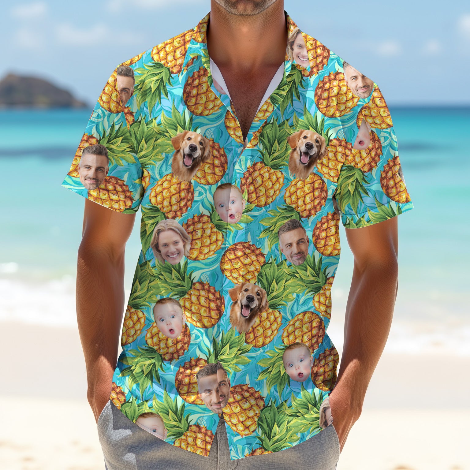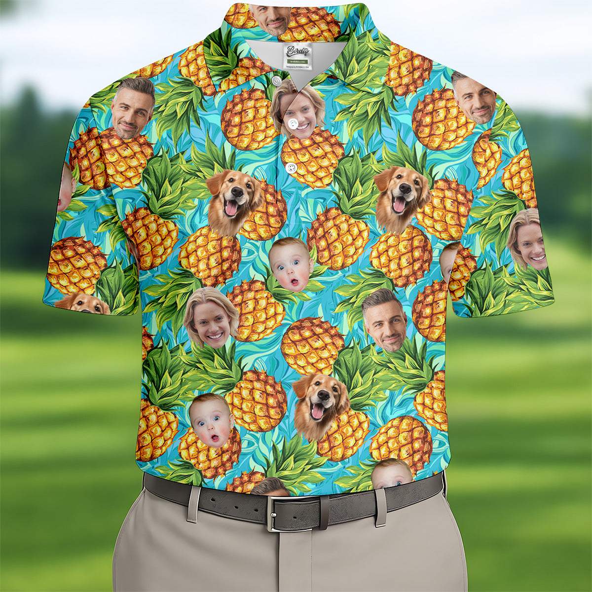Pineapple Button Up Shirt, Hawaiian Shirts With Faces, Fun Golf Shirts For Men, Best Gifts For Men Golfers